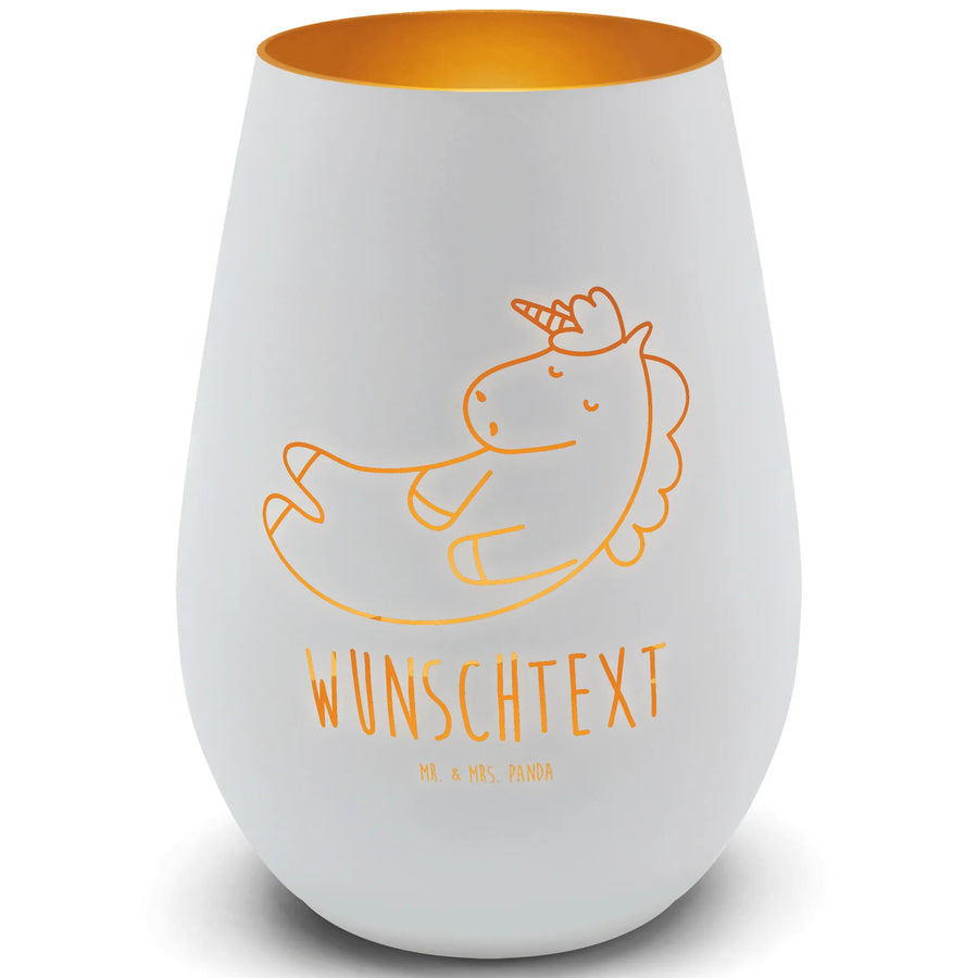 Das personalisierte Gold Windlicht mit dem zauberhaften Motiv 'Einhorn Wolke 7' von Mr. & Mrs. Panda ist das perfekte Geschenk für alle Einhornliebhaber! Es bringt nicht nur Licht in jeden Raum, sondern auch ein Lächeln auf die Gesichter der Beschenkten.