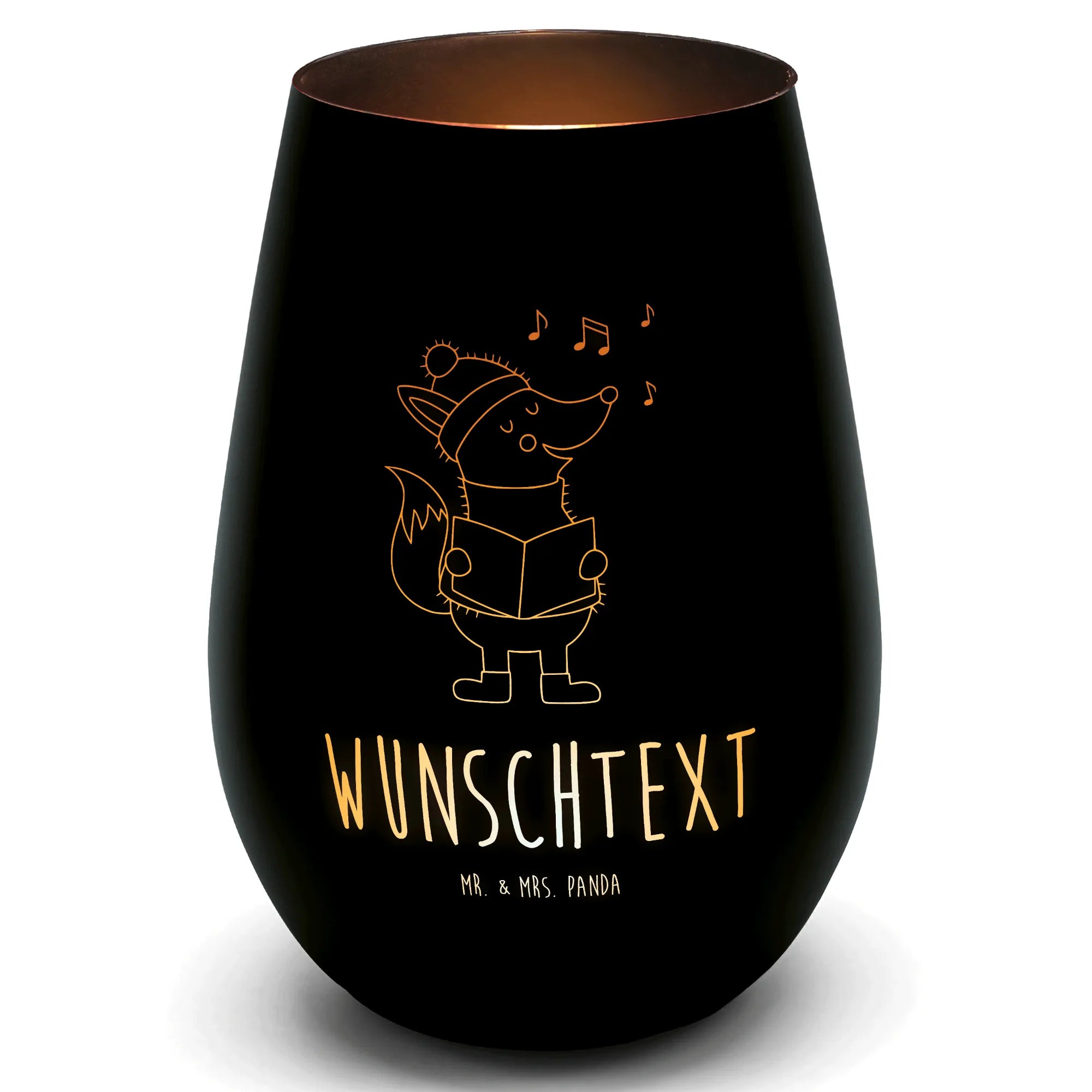 Złoty świecznik spersonalizowany lis Śpiewak - biały