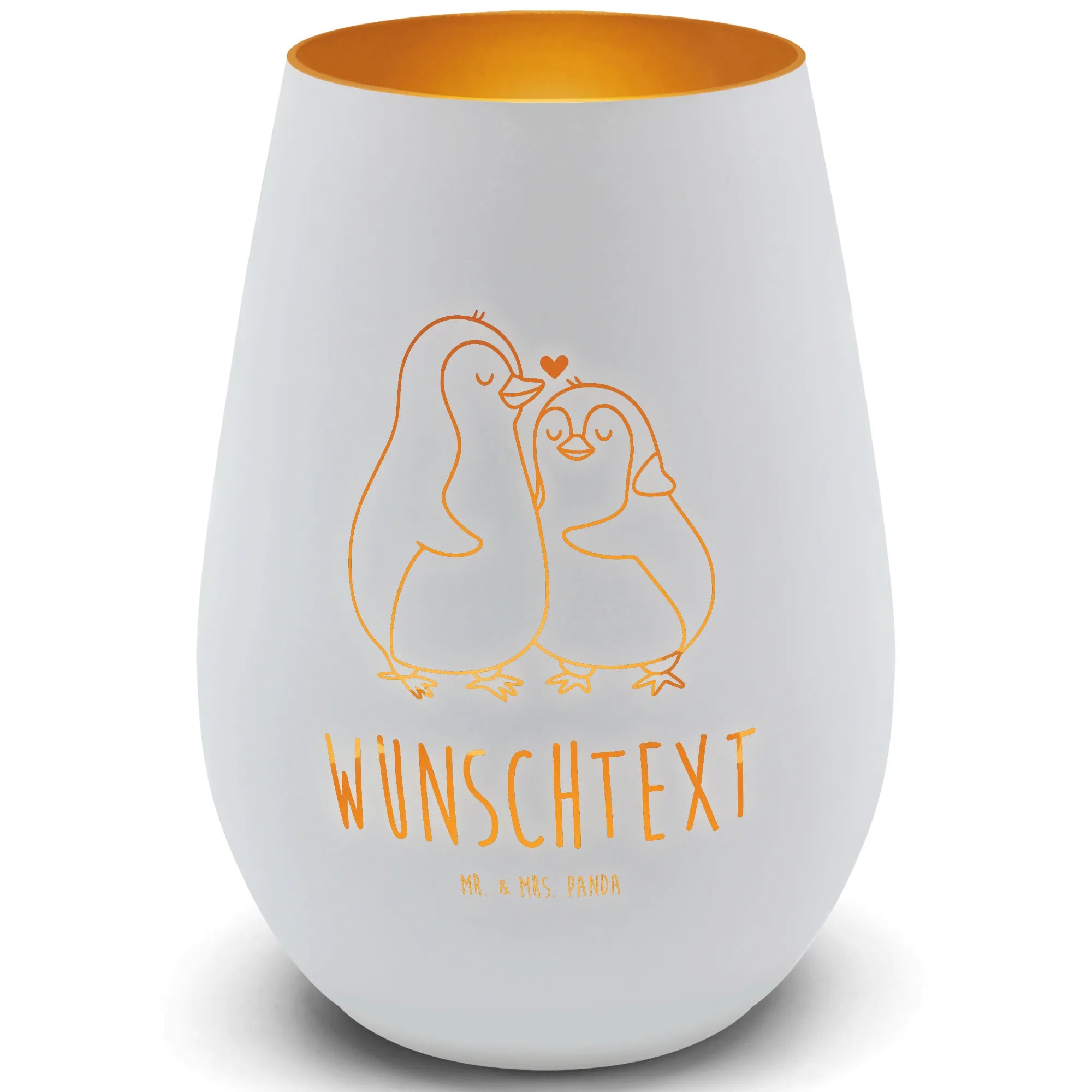 Złoty świecznik spersonalizowany pingwiny zasypianie