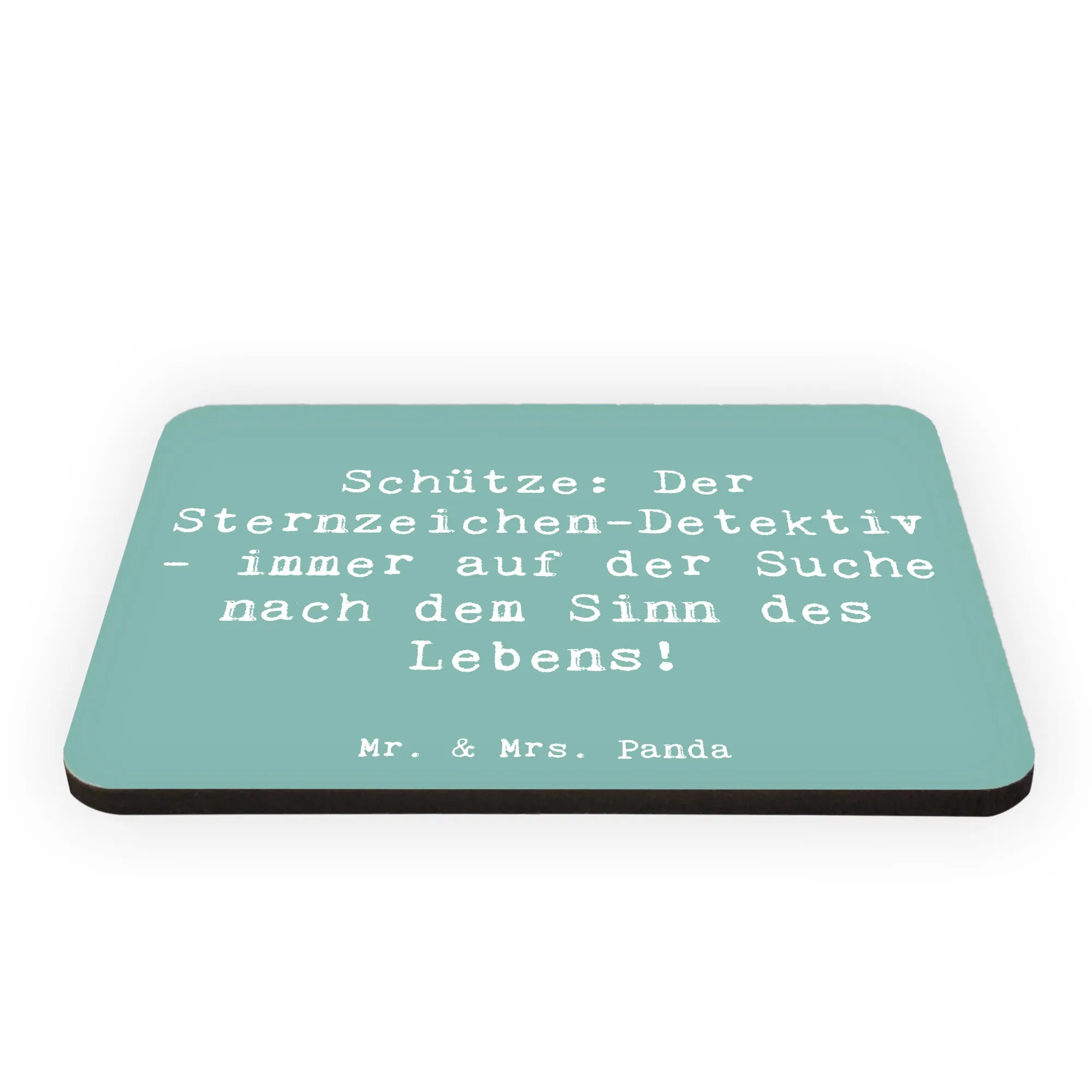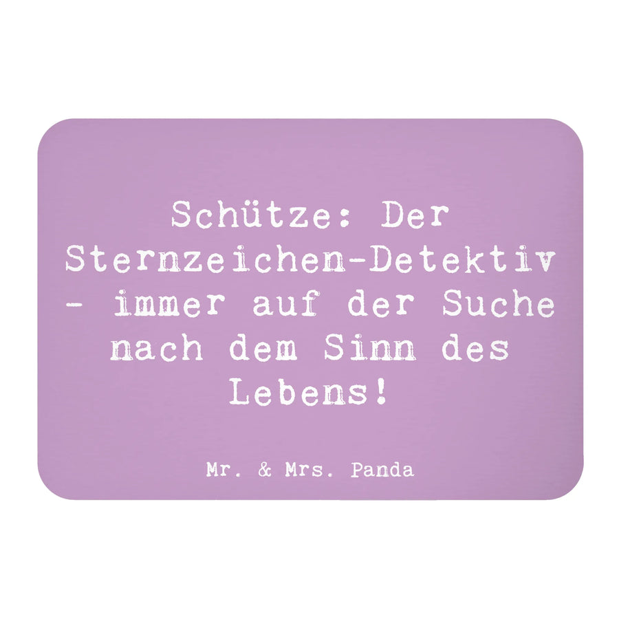Der Kühlschrankmagnet "Schütze: Der Sternzeichen-Detektiv - immer auf der Suche nach dem Sinn des Lebens!" von Mr. & Mrs. Panda ist der perfekte Begleiter für alle Astrologie-Enthusiasten! Mit einer Größe von 52 mm x 74 mm und einem Gewicht von nur 20 g, vereint dieser Magnet süßes Design und praktische Anwendung. Gefertigt aus hochwertigem MDF und liebevoll bedruckt mit einer bunten, witzigen Illustration, bringt er Farbe an deinen Kühlschrank oder dein Whiteboard.