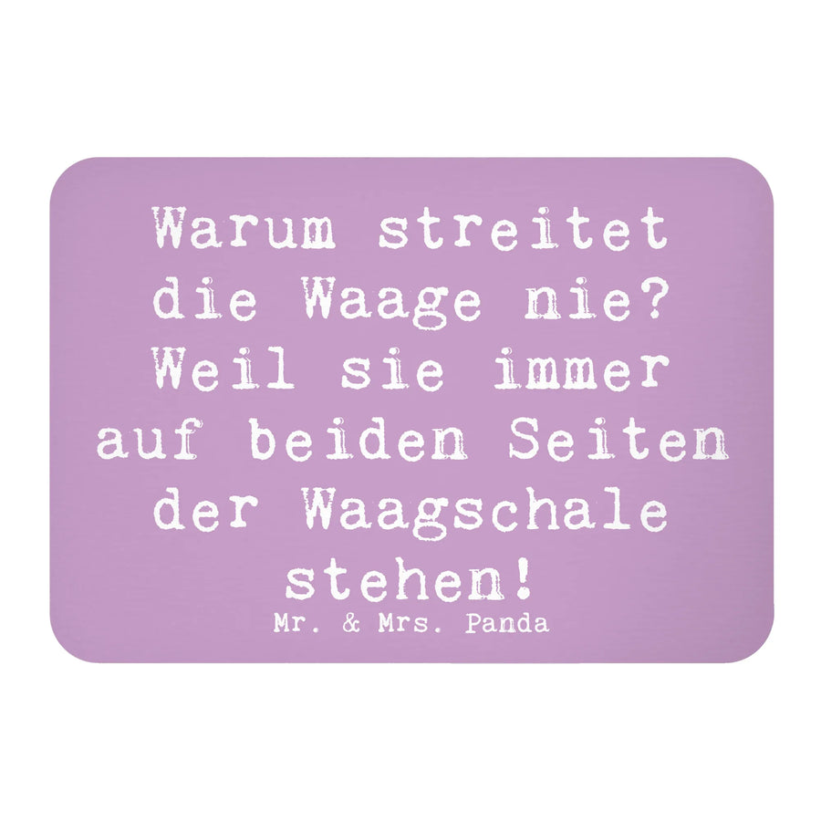 Mit der liebevoll handgezeichneten Illustration einer Waage, die mit dem Spruch "Warum streitet die Waage nie? Weil sie immer auf beiden Seiten der Waagschale stehen!" verziert ist, bringt er ein Lächeln auf jede Küchentür oder Pinnwand.