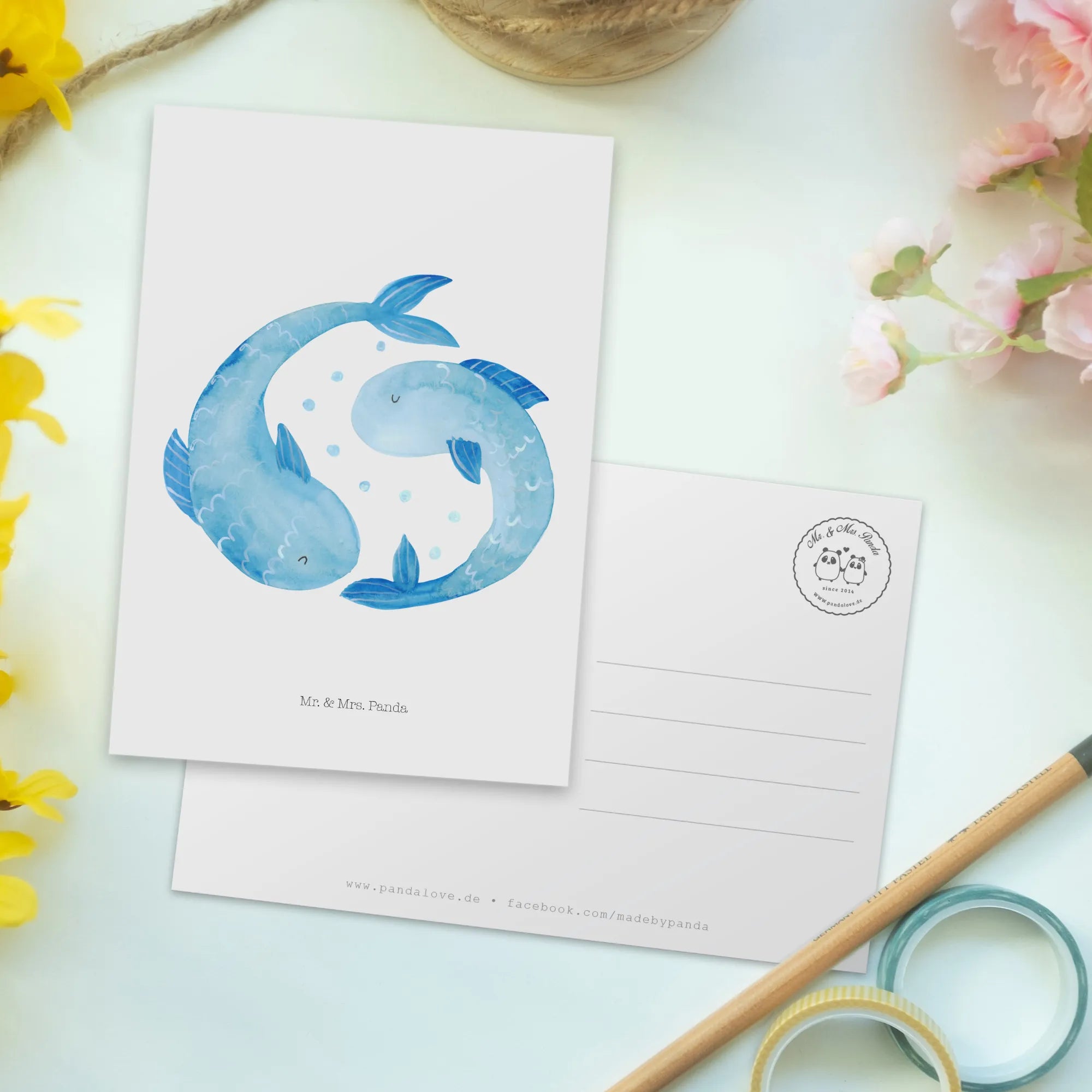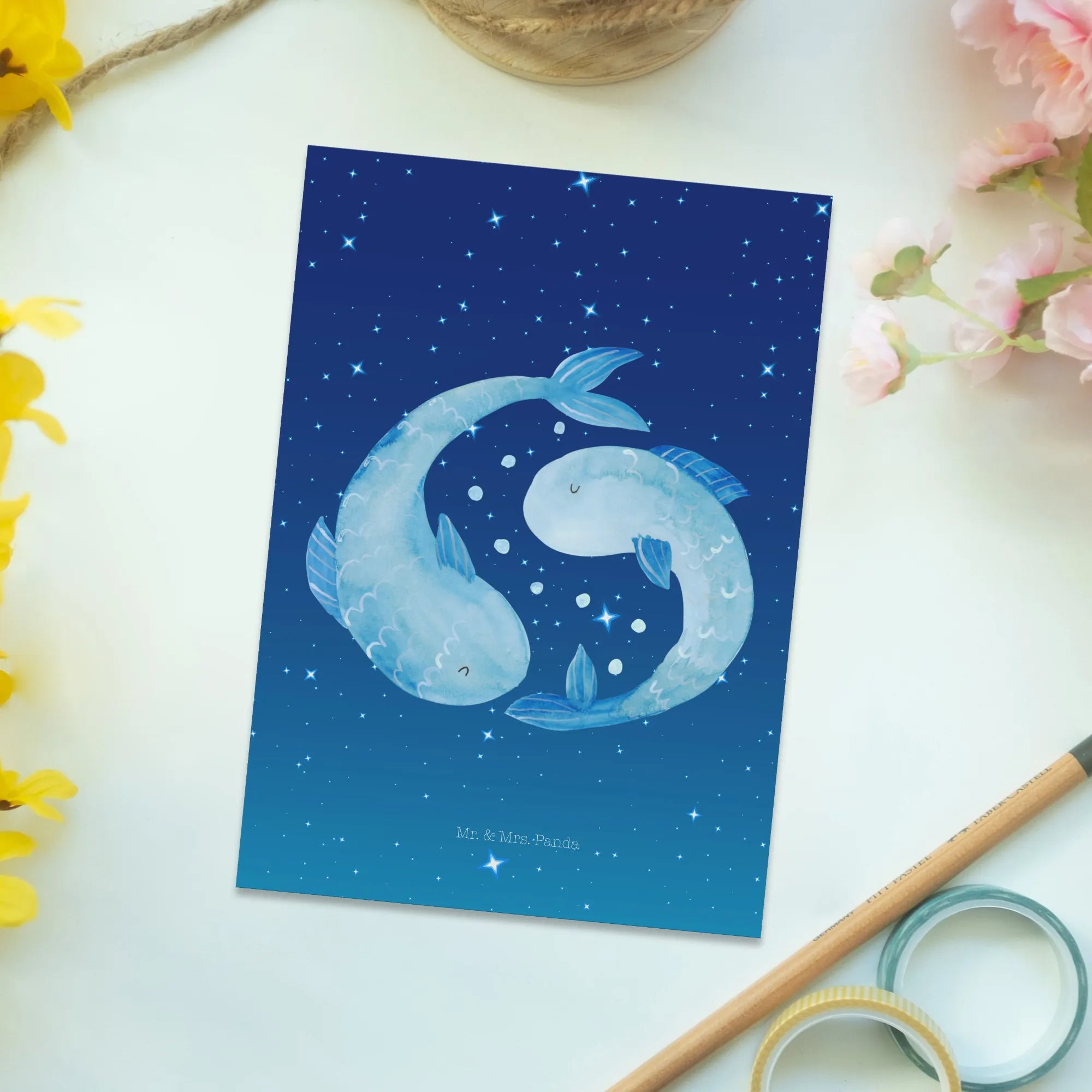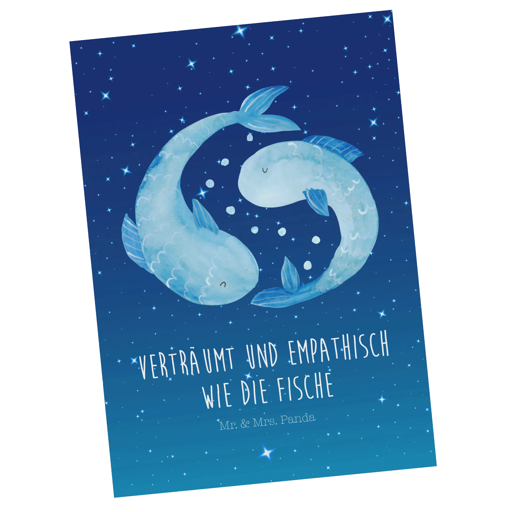 Pocztówka znak zodiaku Ryby - z napisem - Sternenhimmel Blau
