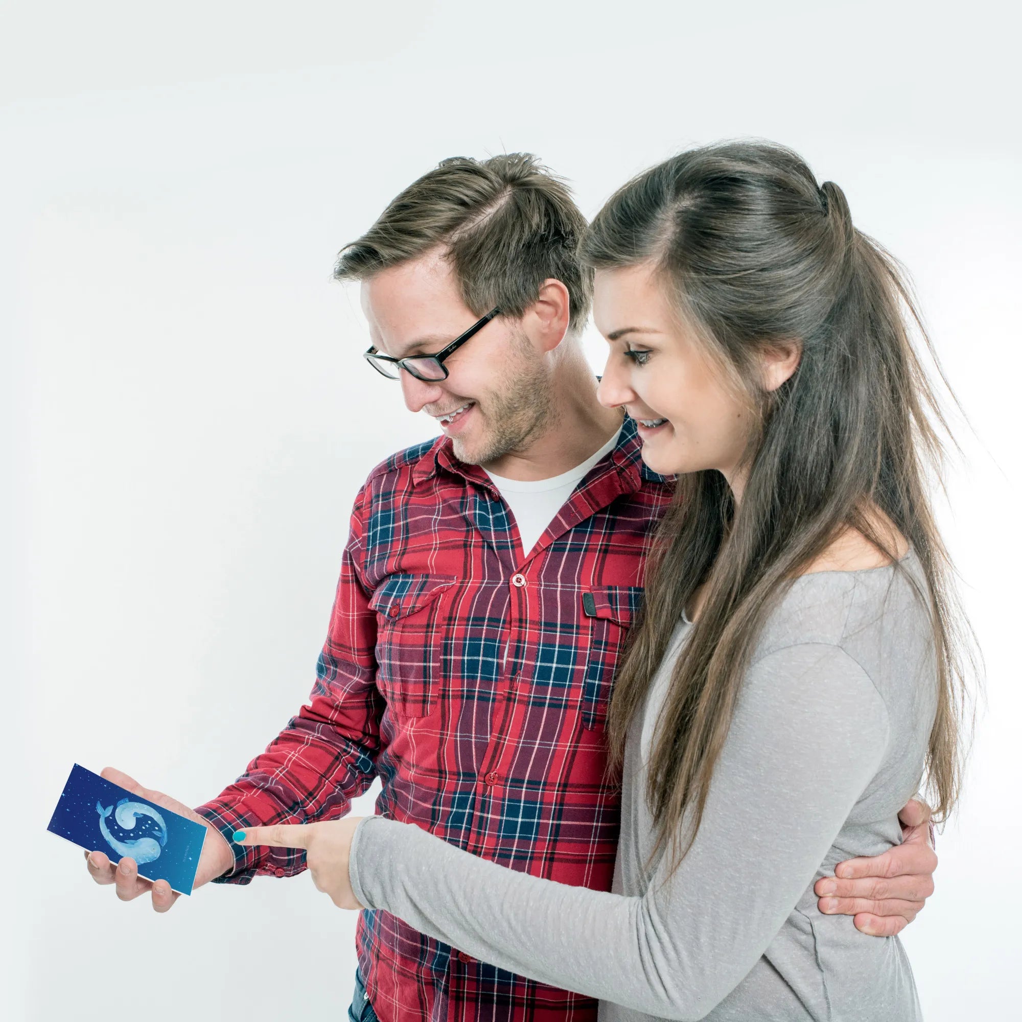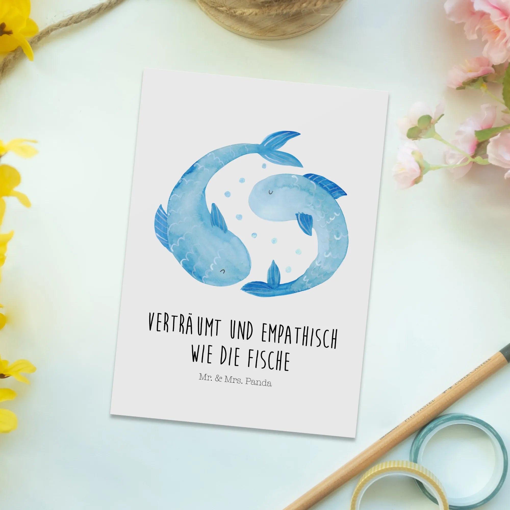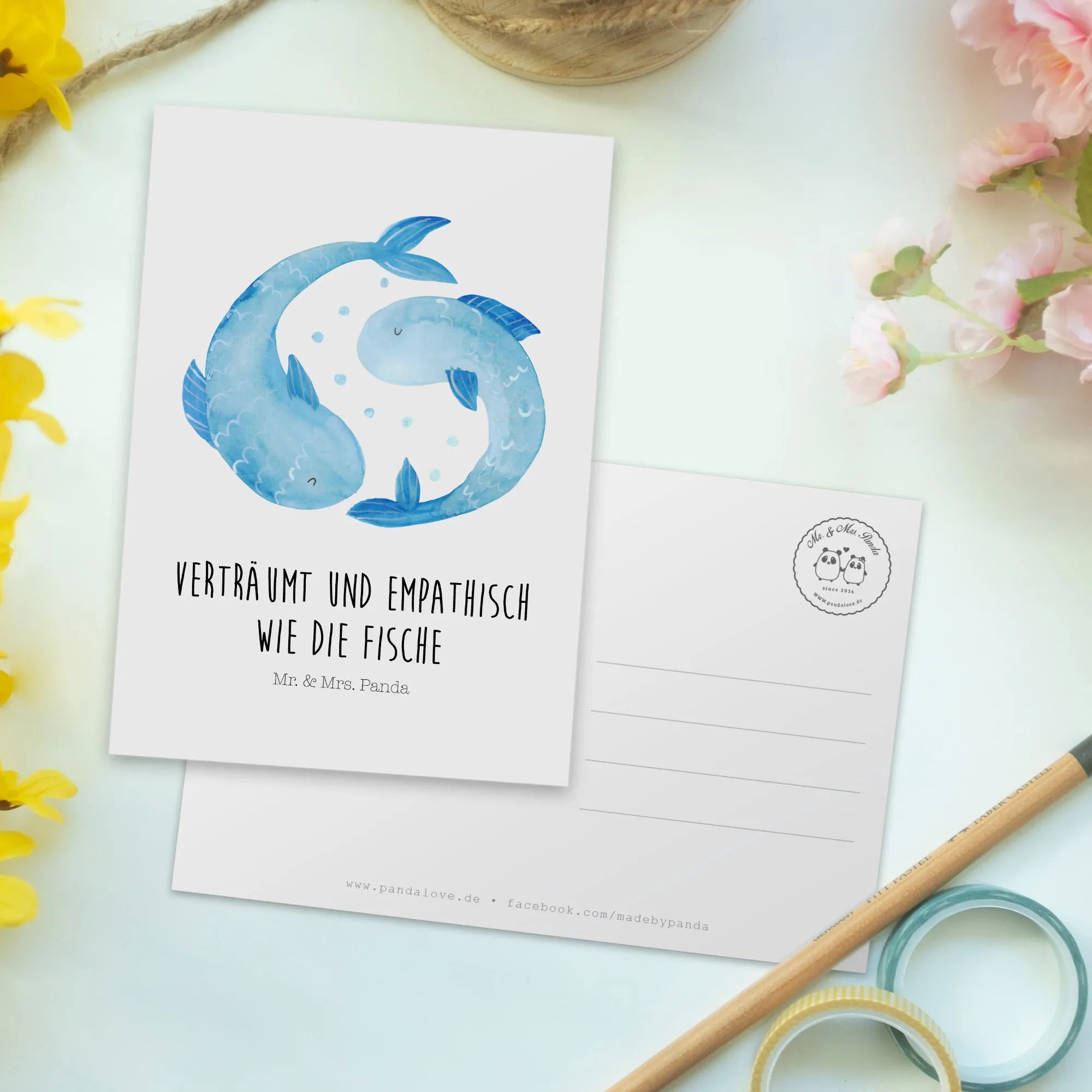 Pocztówka znak zodiaku Ryby - z napisem - Sternenhimmel Blau