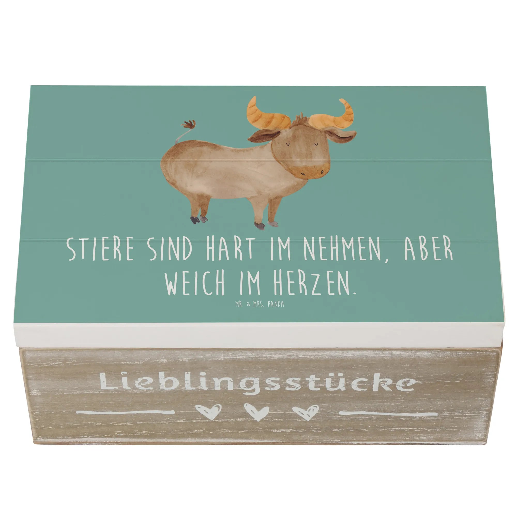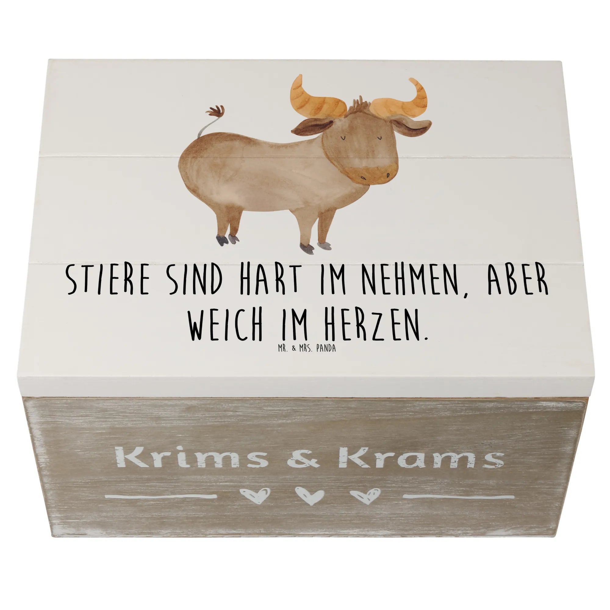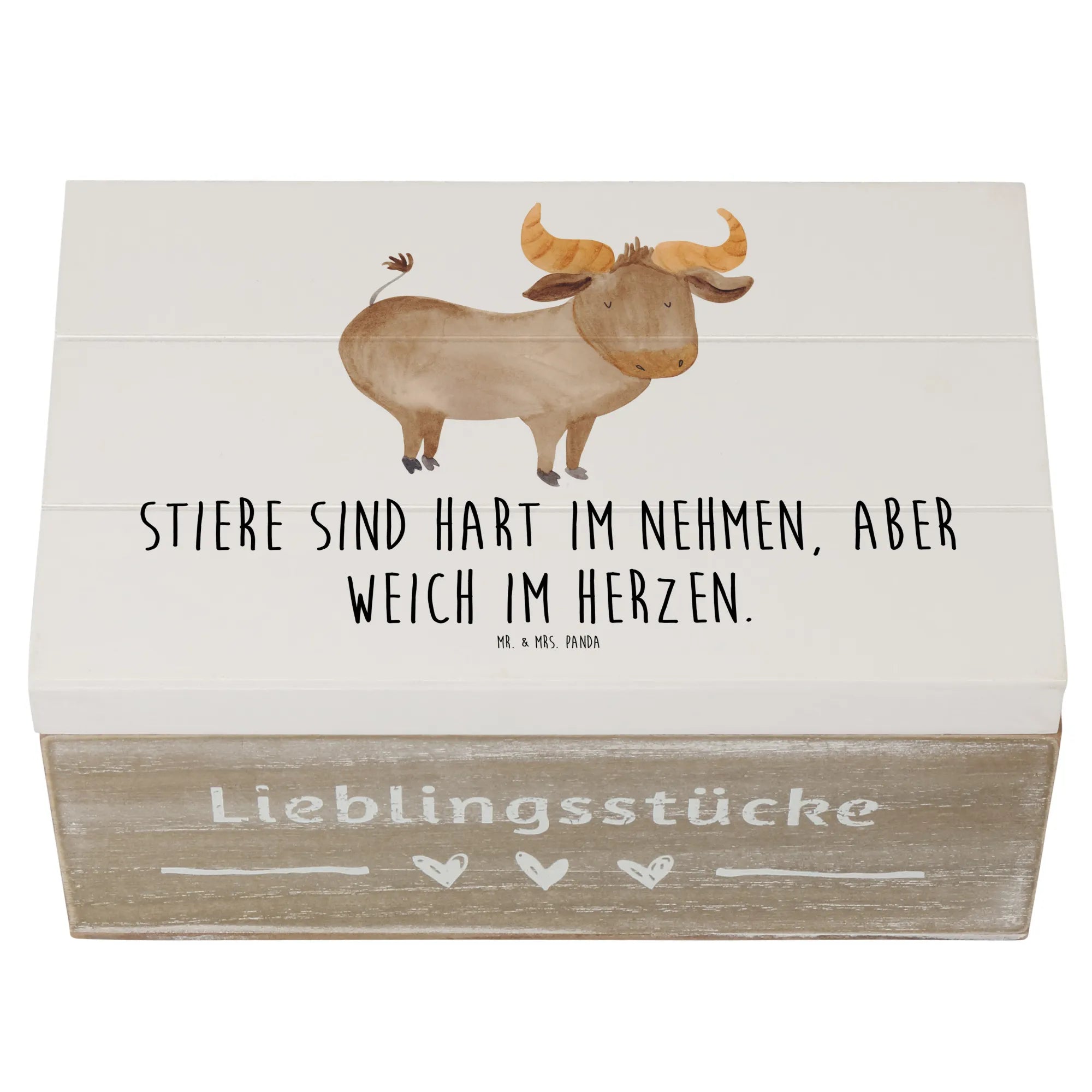 Skrzynia drewniana Stiere sind hart im Nehmen, aber weich im Herzen. - 19 x 12 cm - biały