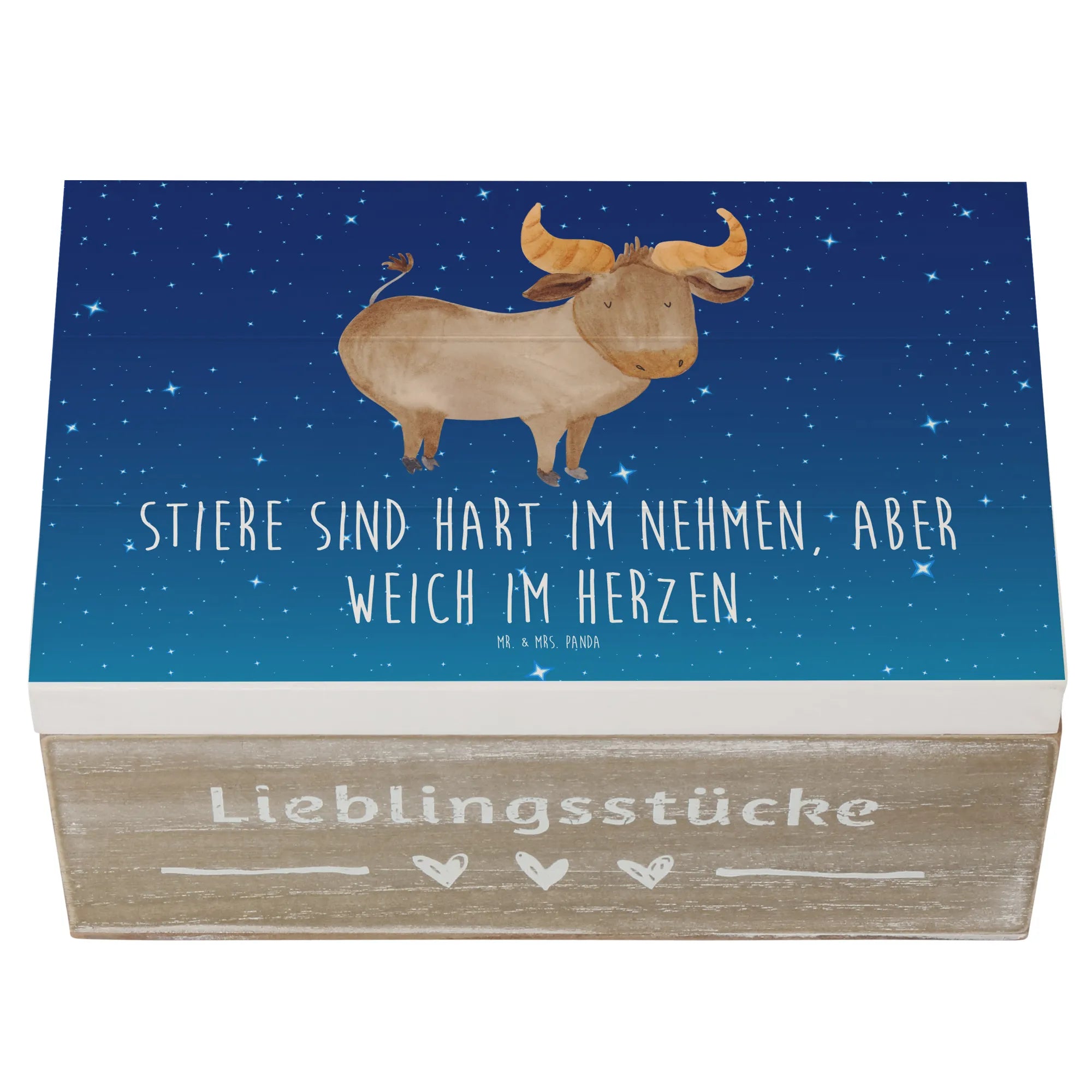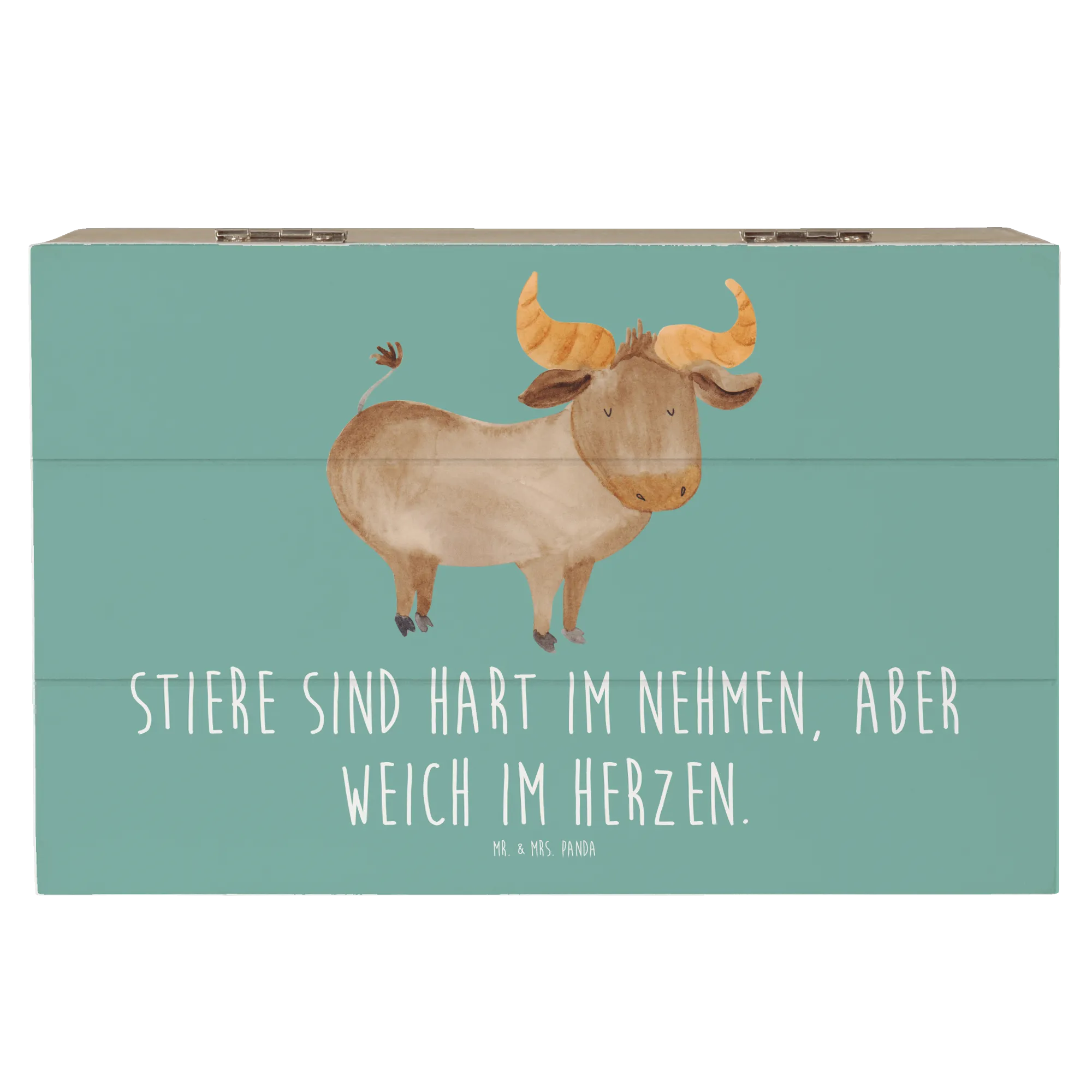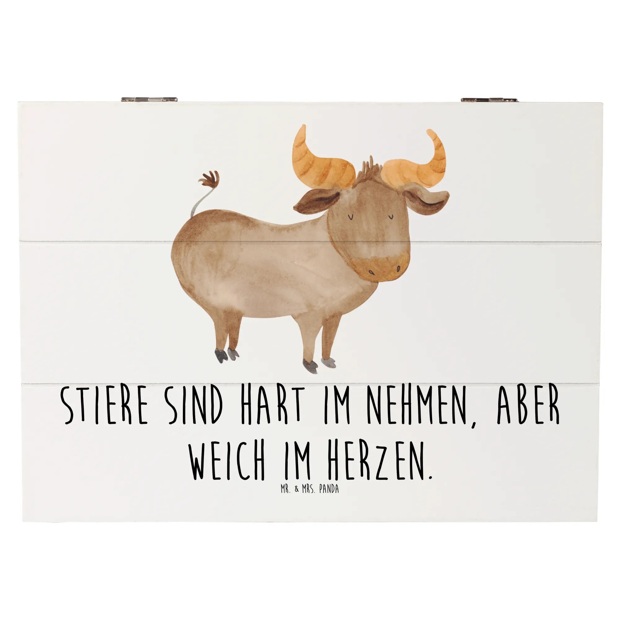 Skrzynia drewniana Stiere sind hart im Nehmen, aber weich im Herzen. - 19 x 12 cm - biały