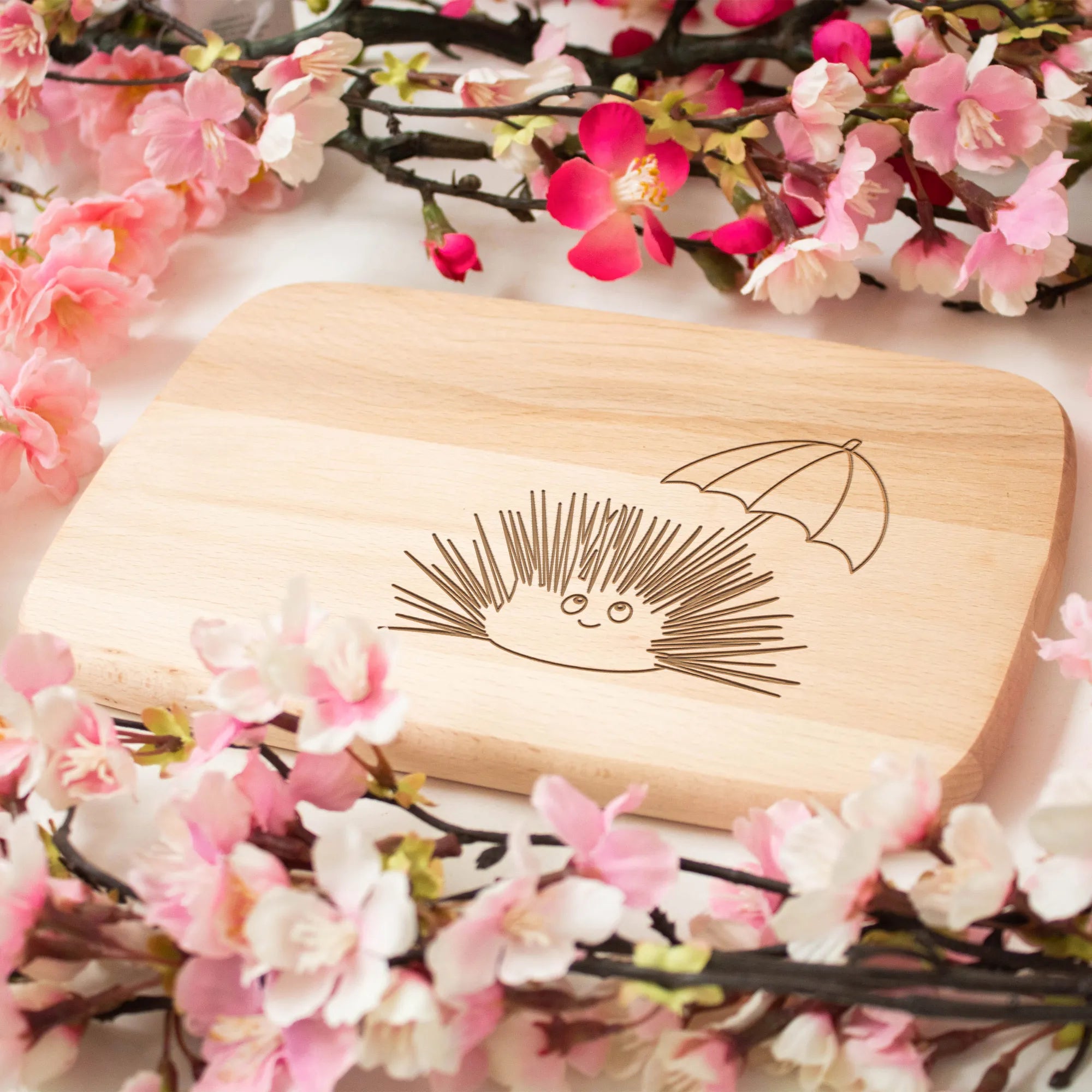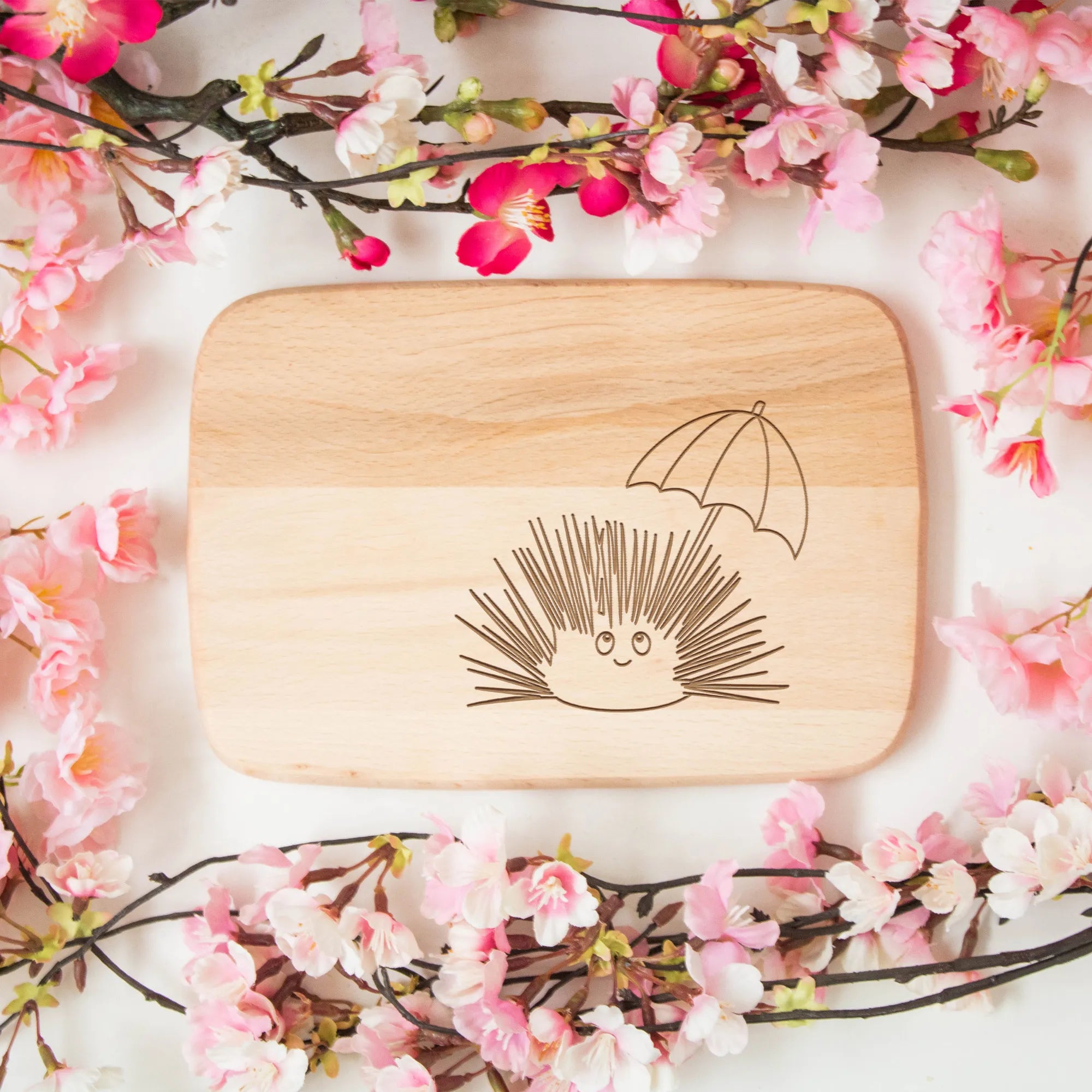 Śniadaniowa deska Jeżowiec - z napisem - Buchenholz