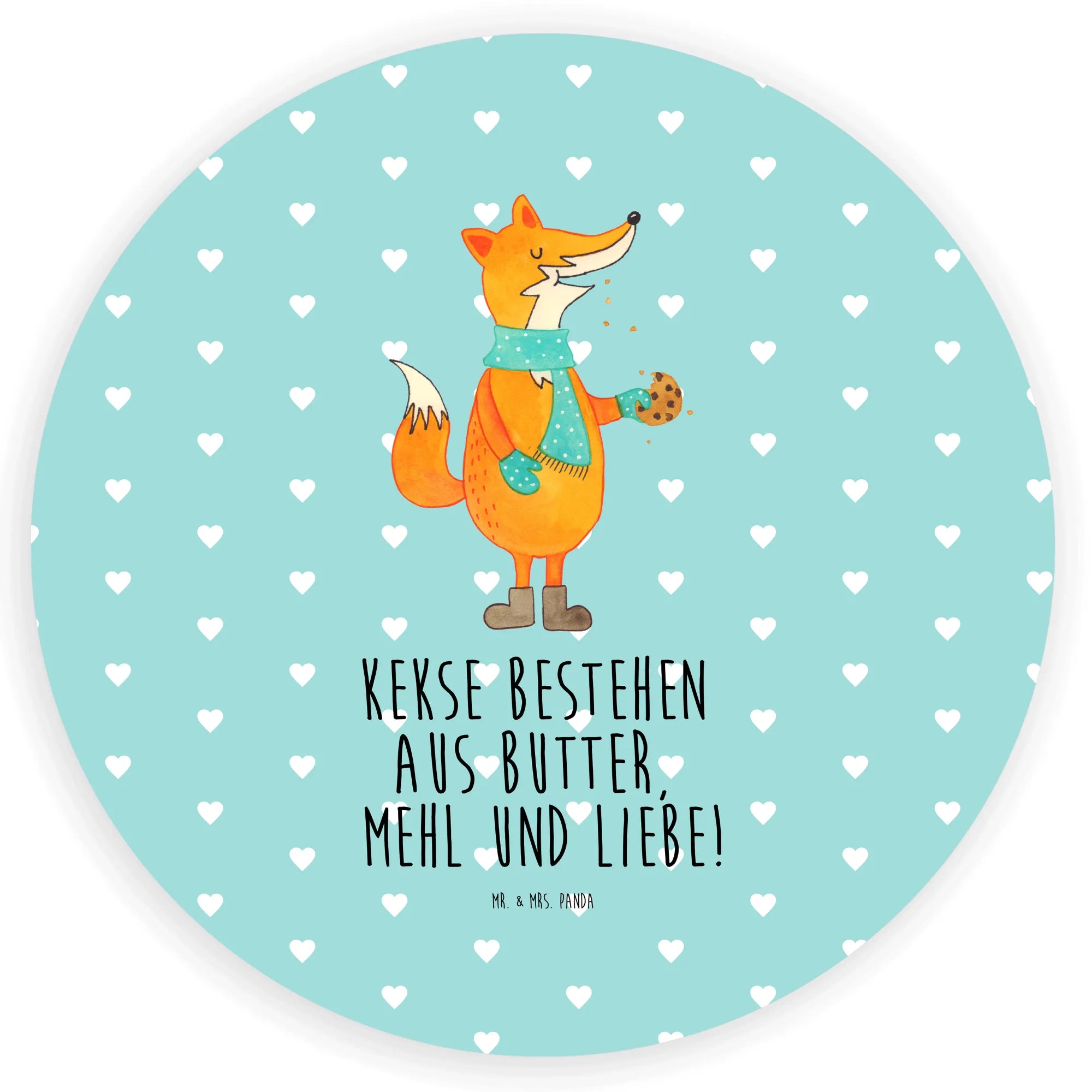 120mm okrągła naklejka lis ciasteczko - 80mm okrągła naklejka - z napisem - biały