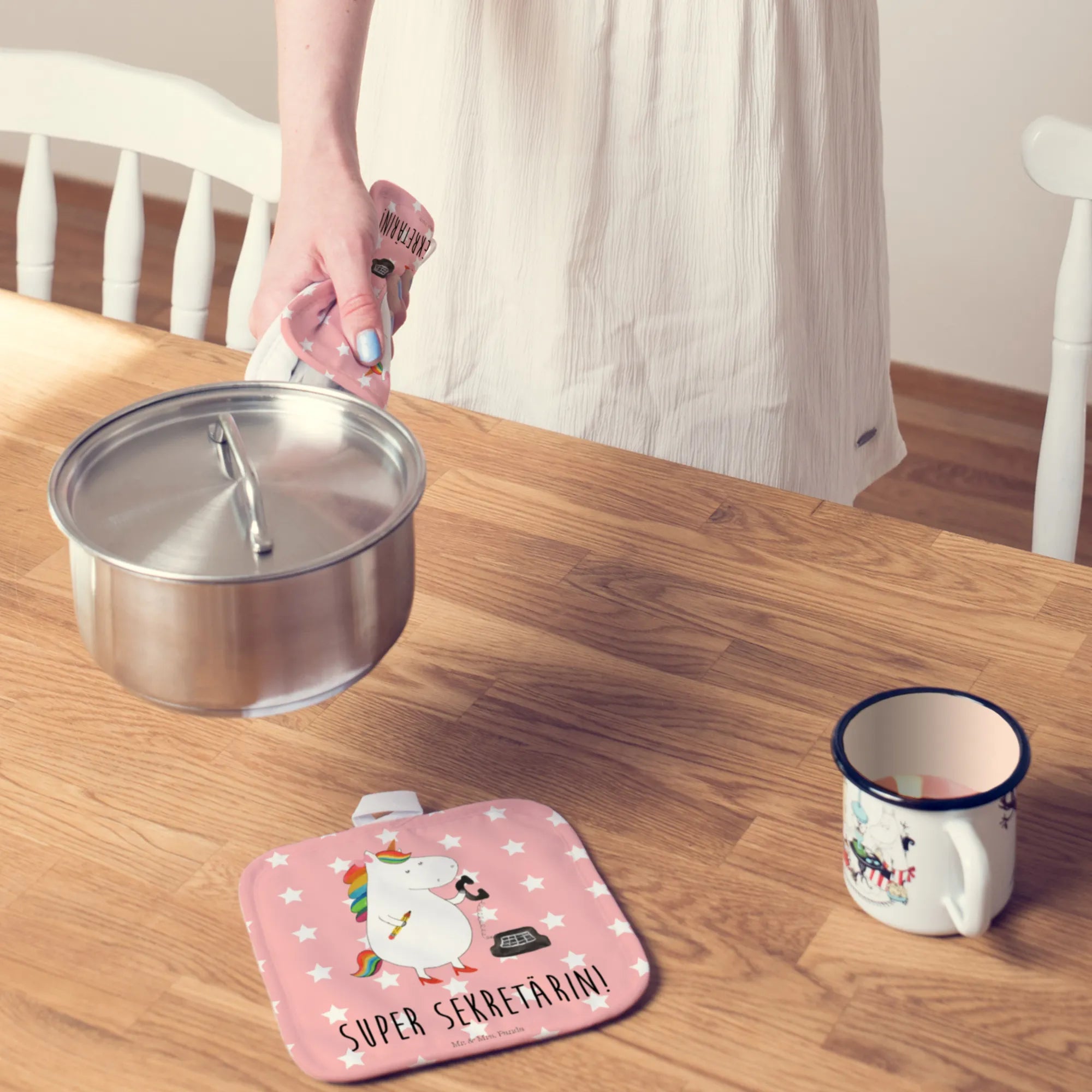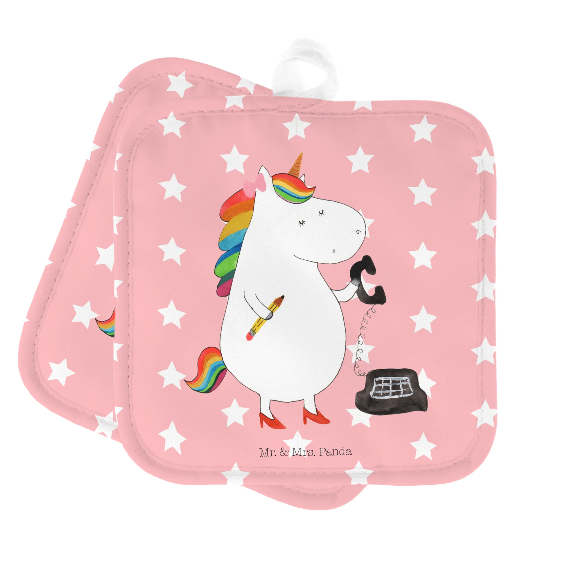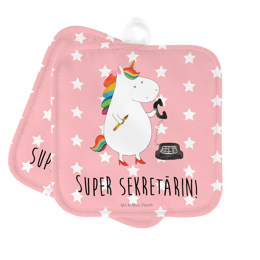 2-elementowy zestaw podkładek pod garnki Jednorożec sekretarka - z napisem - Różowy Czerwony
