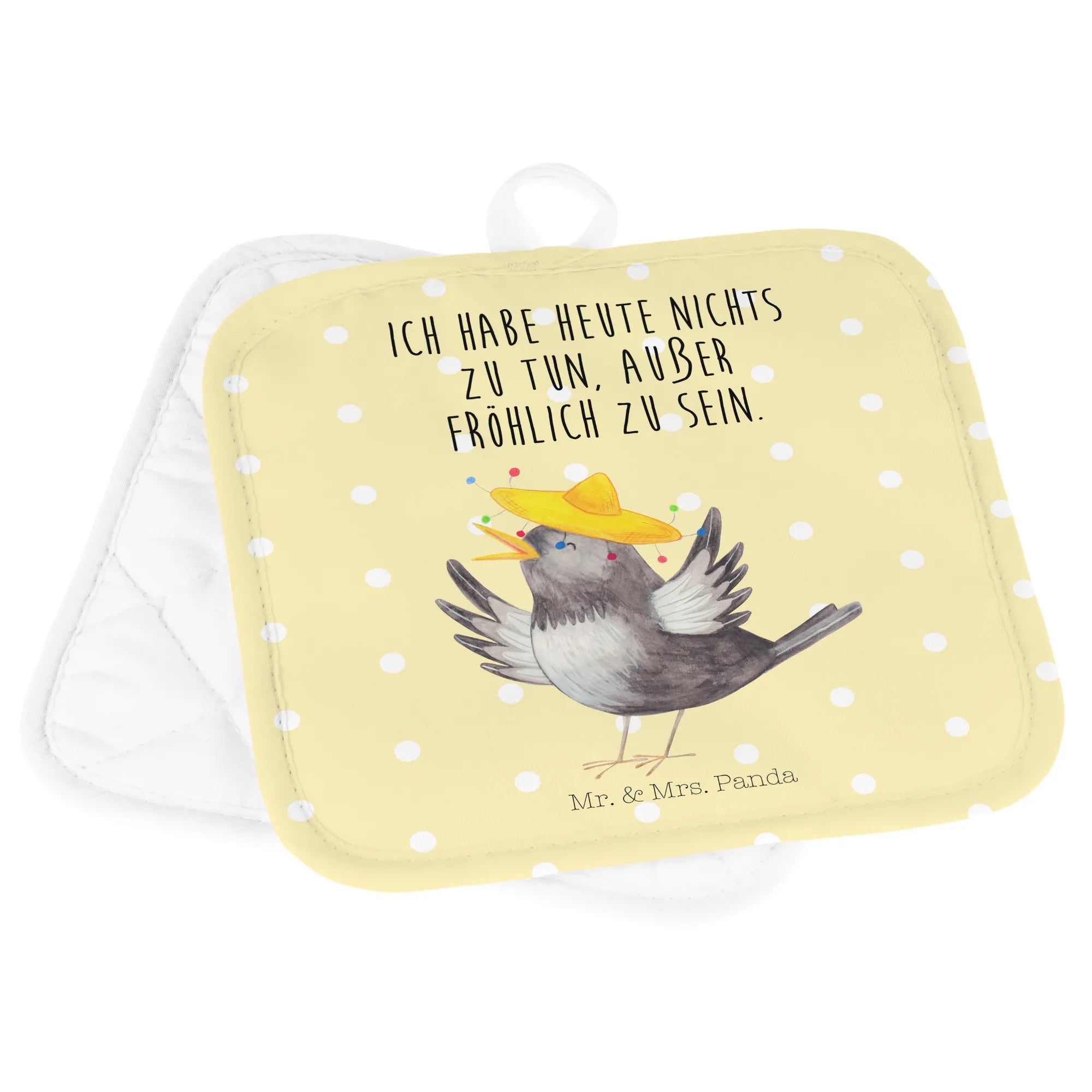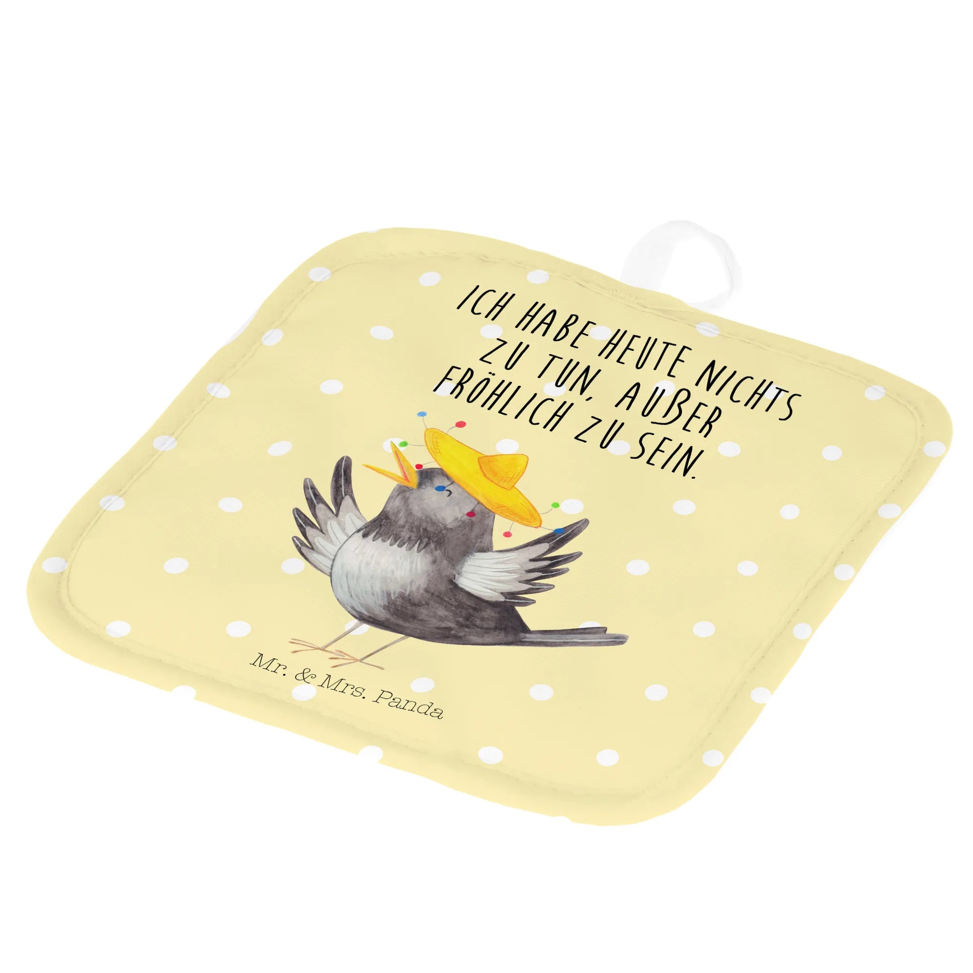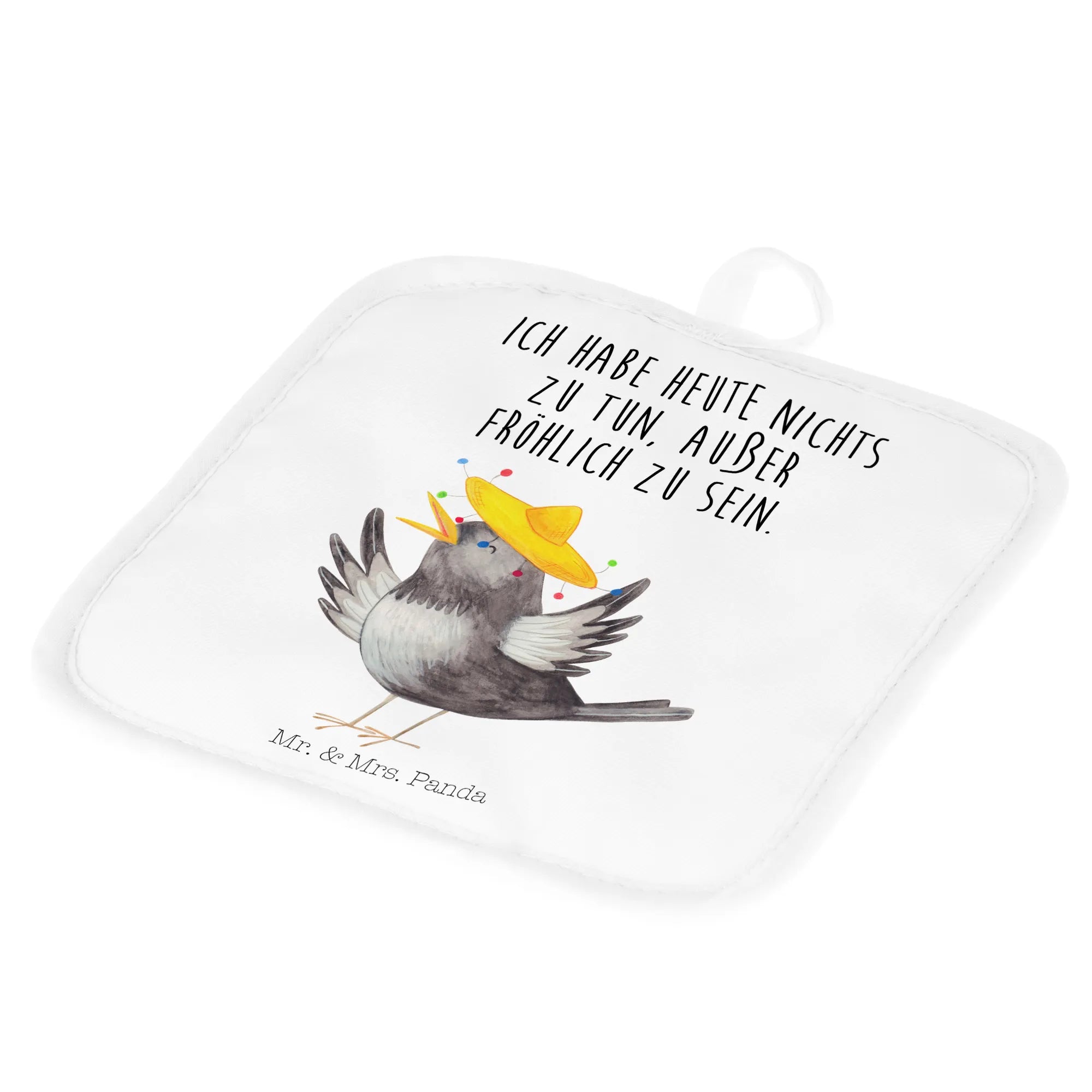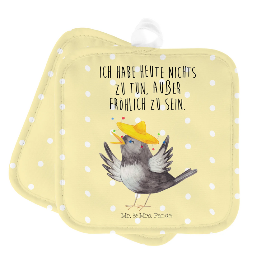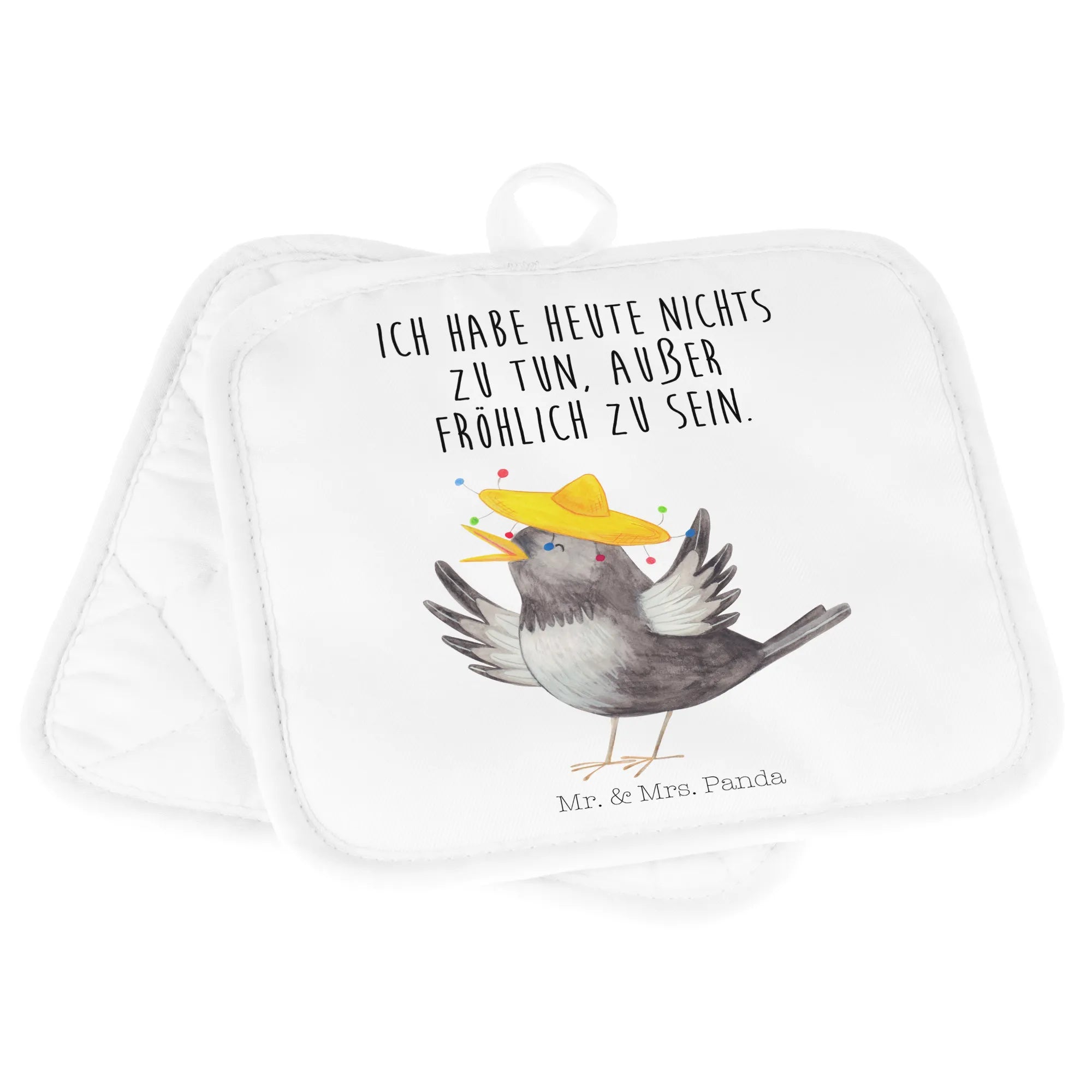 2-elementowy zestaw podkładek pod garnki kruk Sombrero Topflappen 2er Set, Topflappen, Topflappen Set, topfhalter, Topfuntersetzer, Topflappenset, 2er Set Topflappen, Topfhandschuhe, Tiermotive, Gute Laune, Lustige Sprüche, Tiere, Elster, Vogel, Froh, Vögel, Fröhlich sein, Glück Spruch, Motivation, Spruch Positiv, glücklich sein, Rabe