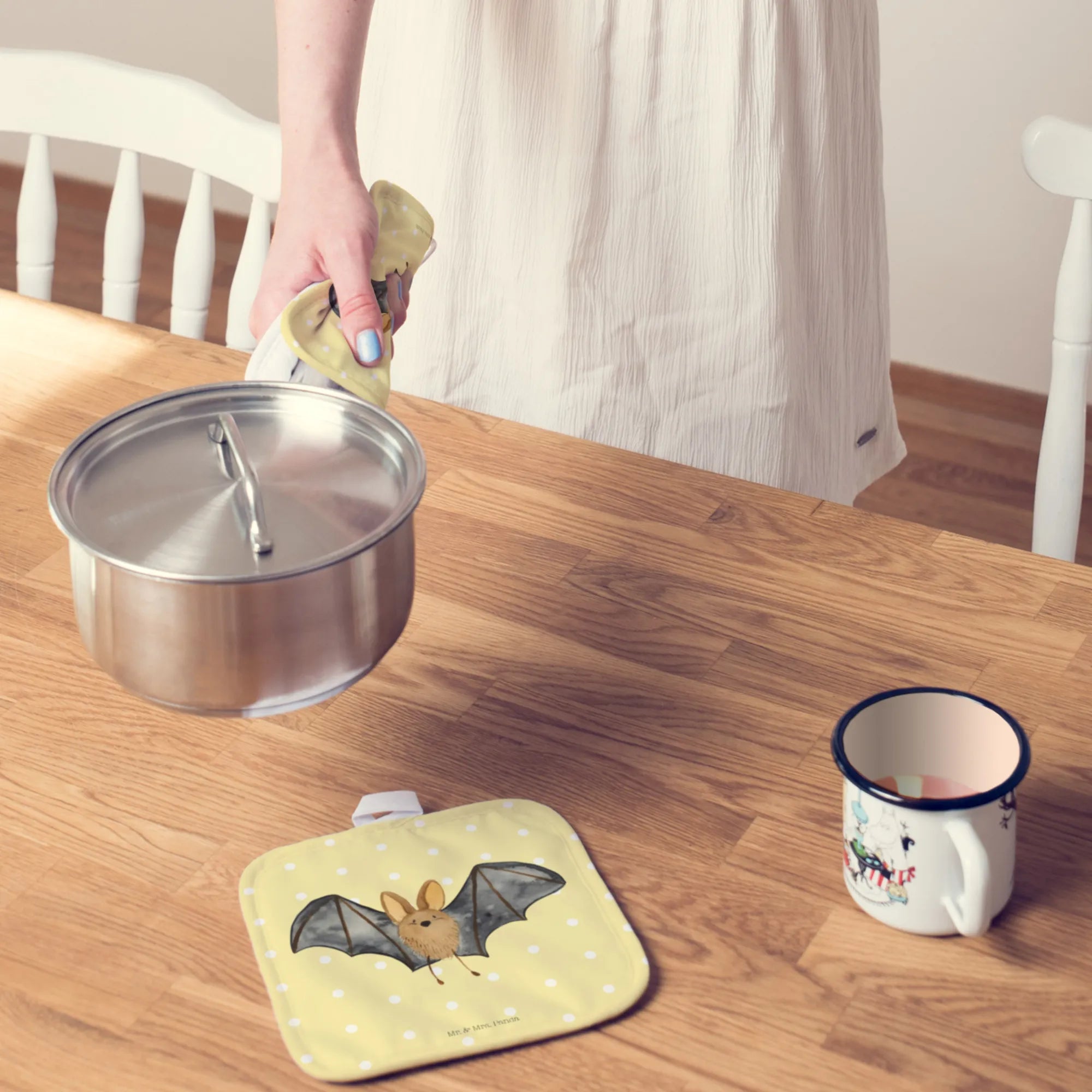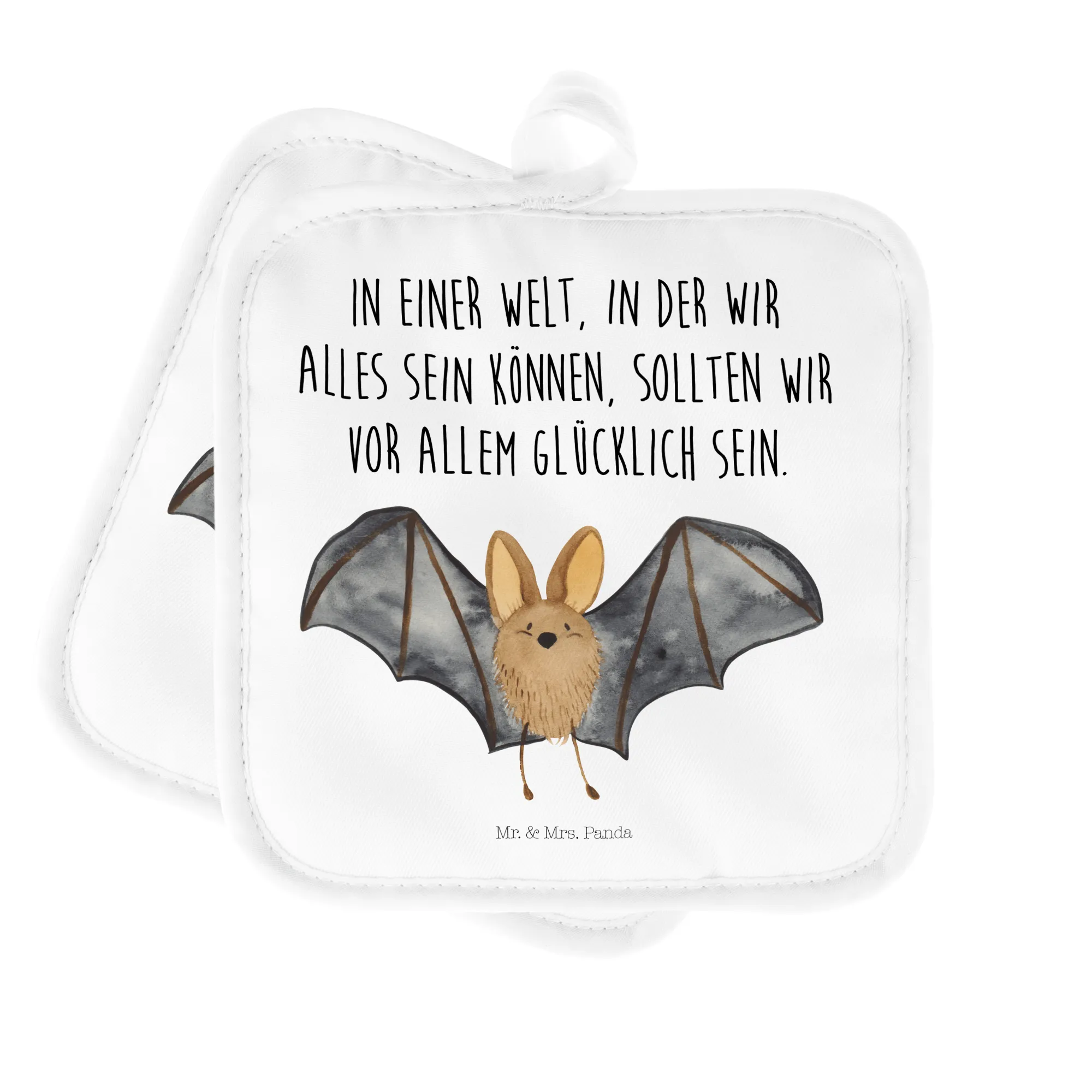 2-elementowy zestaw podkładek pod garnki nietoperz skrzydło - z napisem - biały