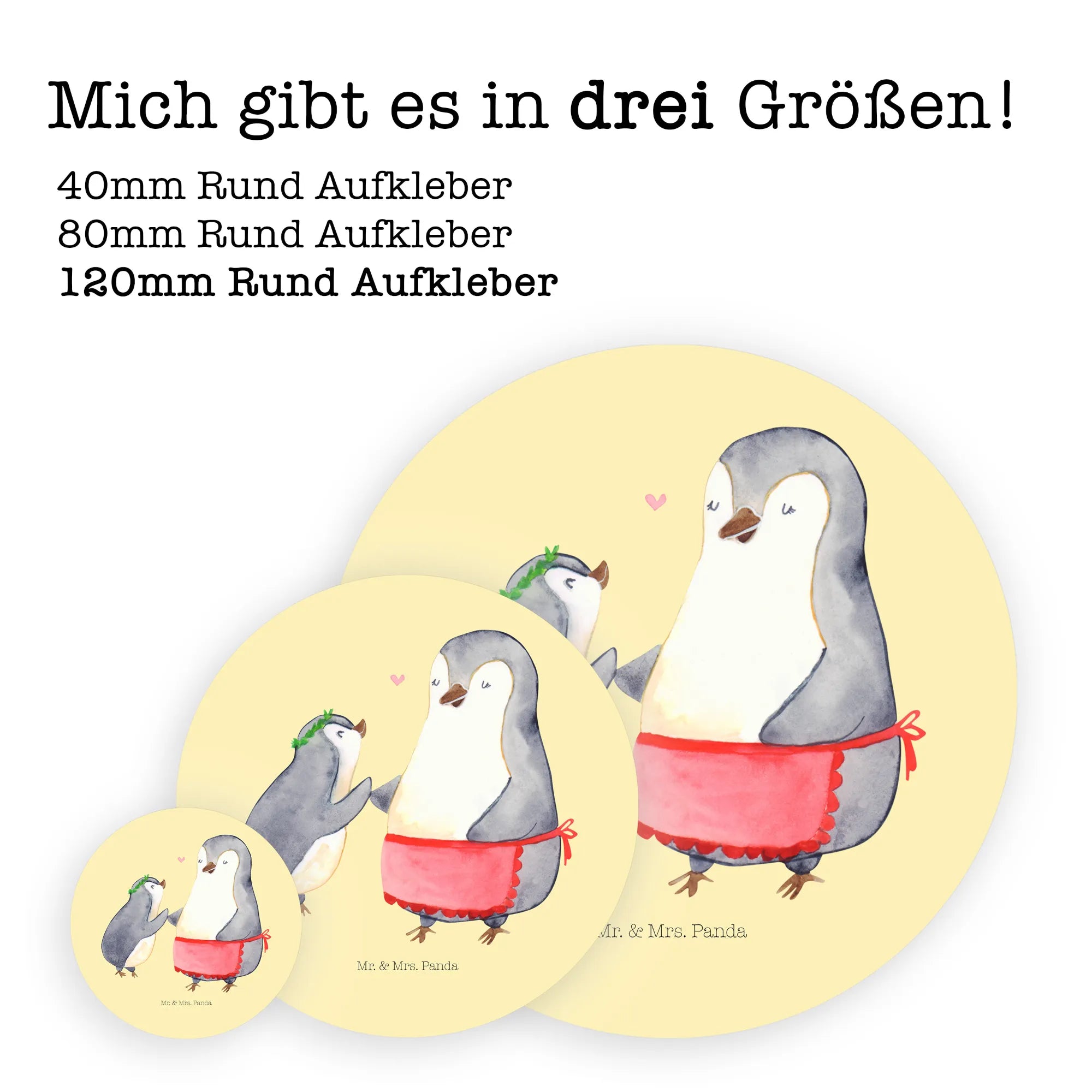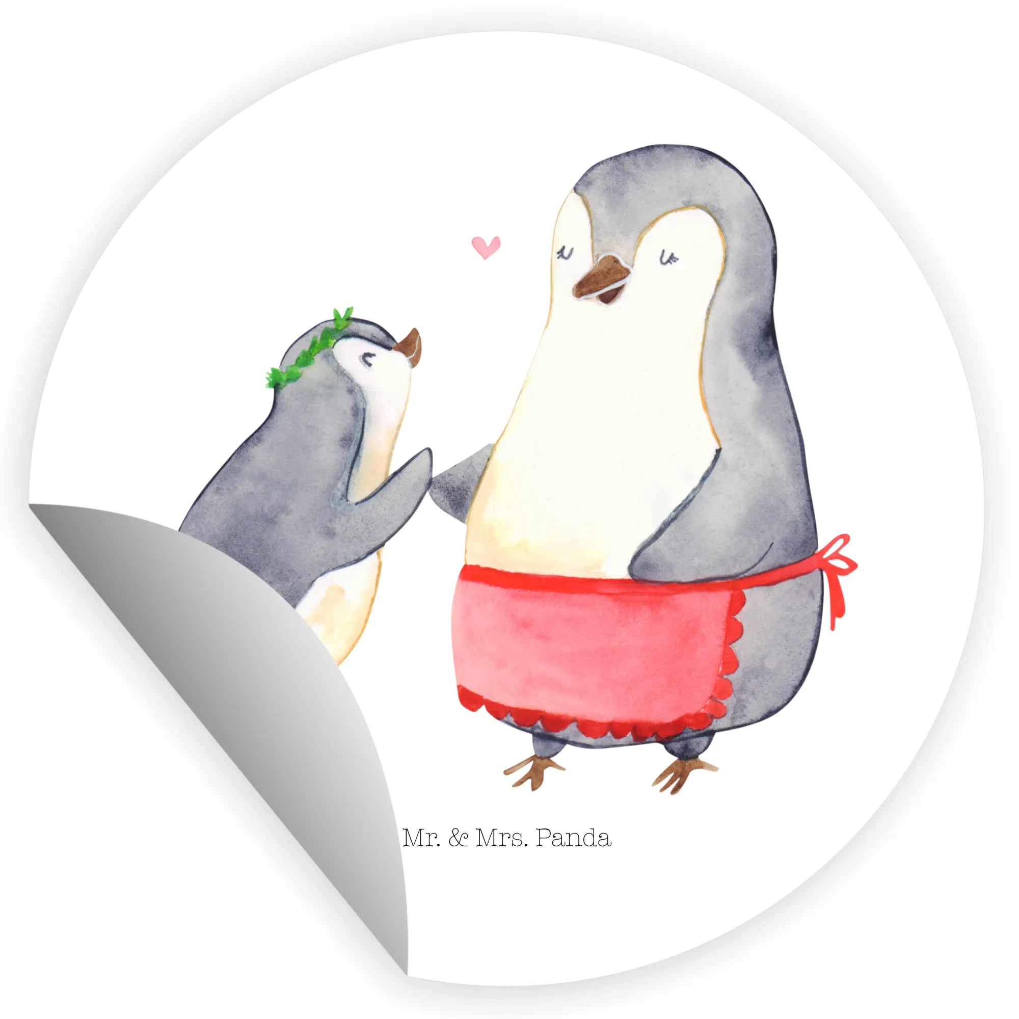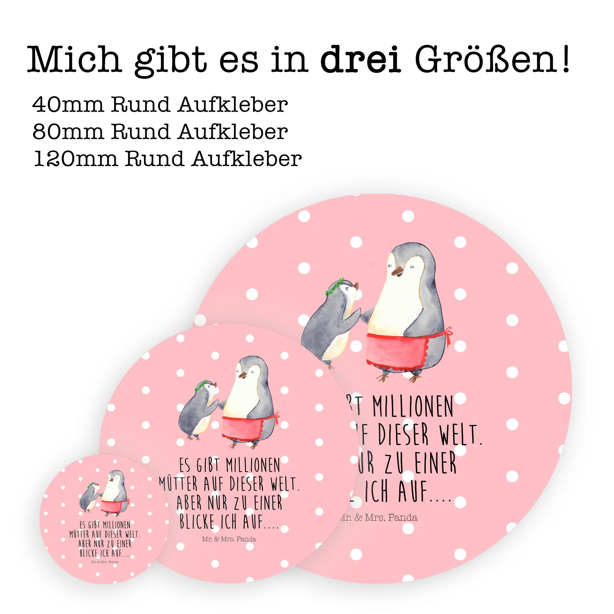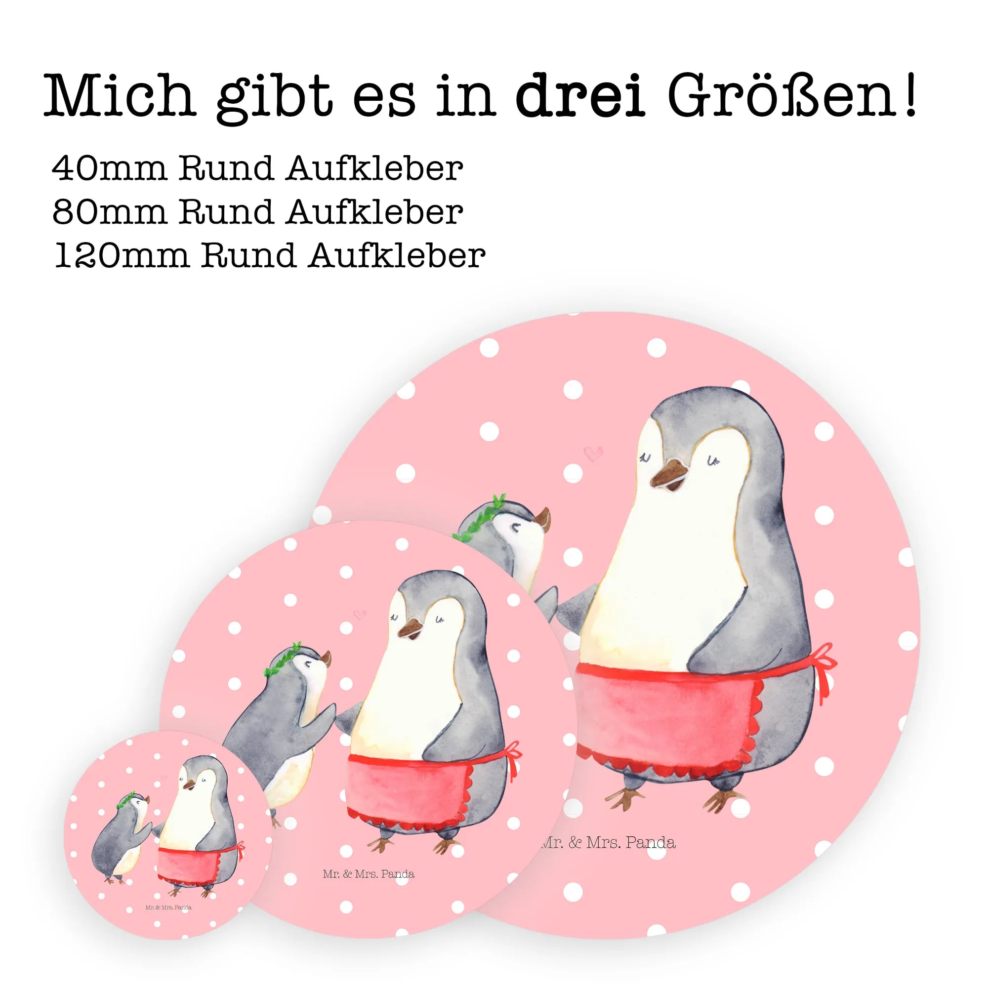 40mm okrągła naklejka Pingwin z dzieckiem - 80mm Rund Aufkleber - z napisem - biały