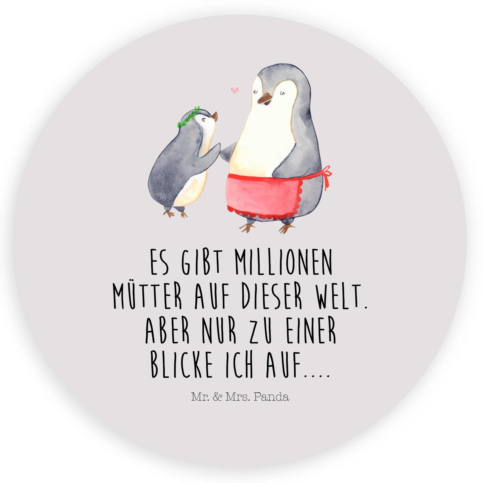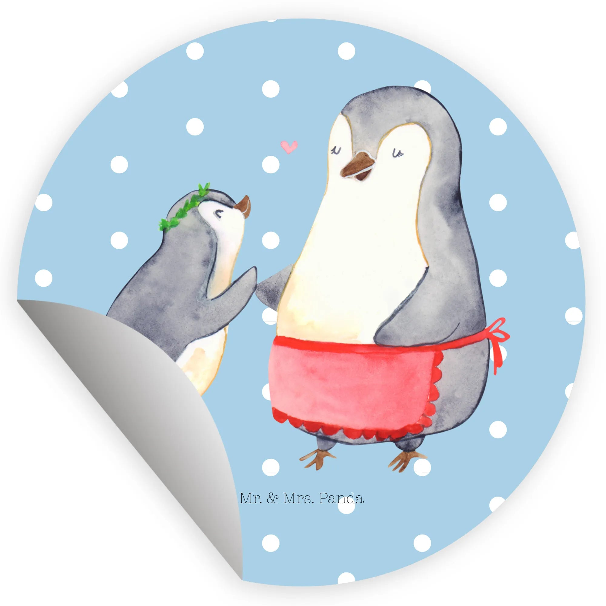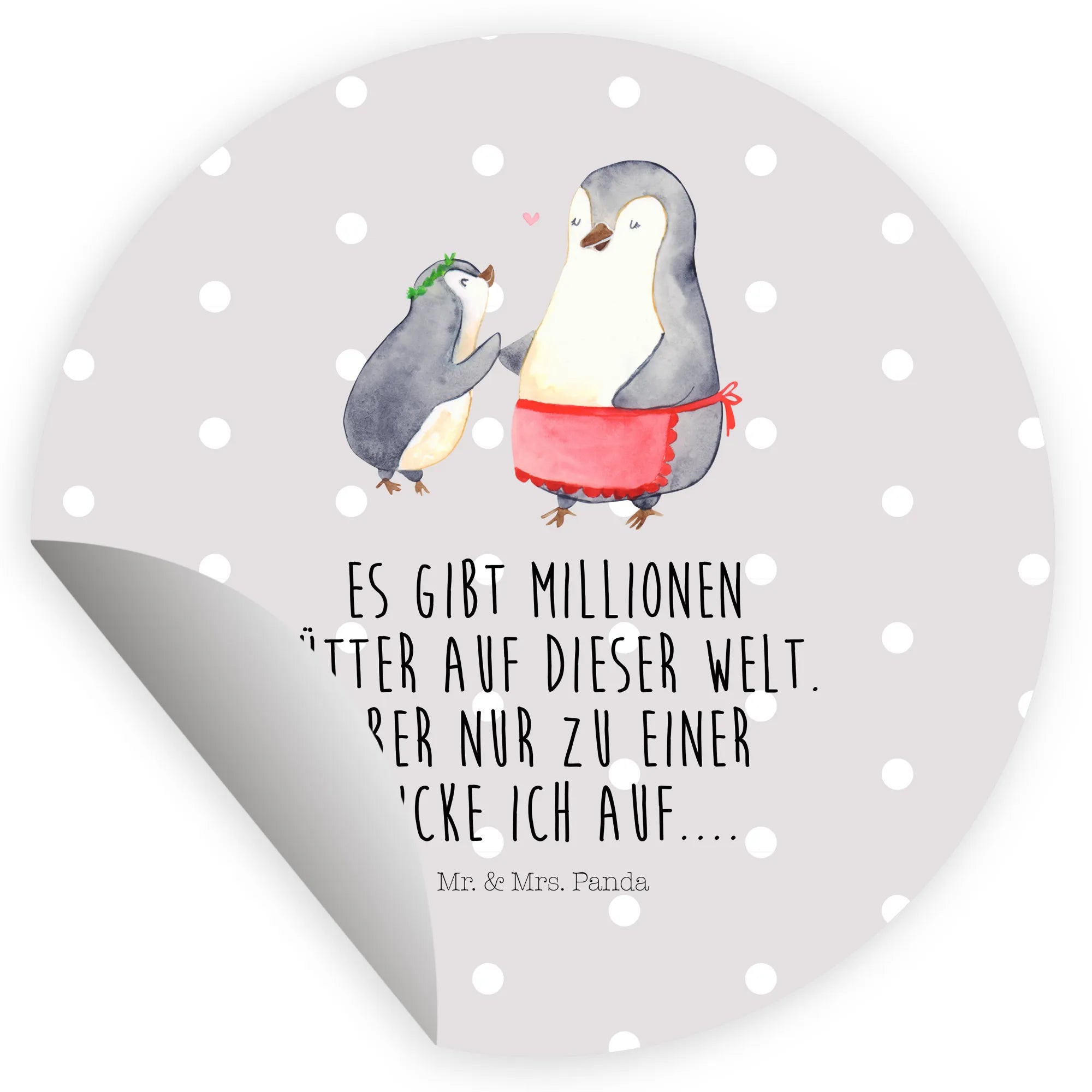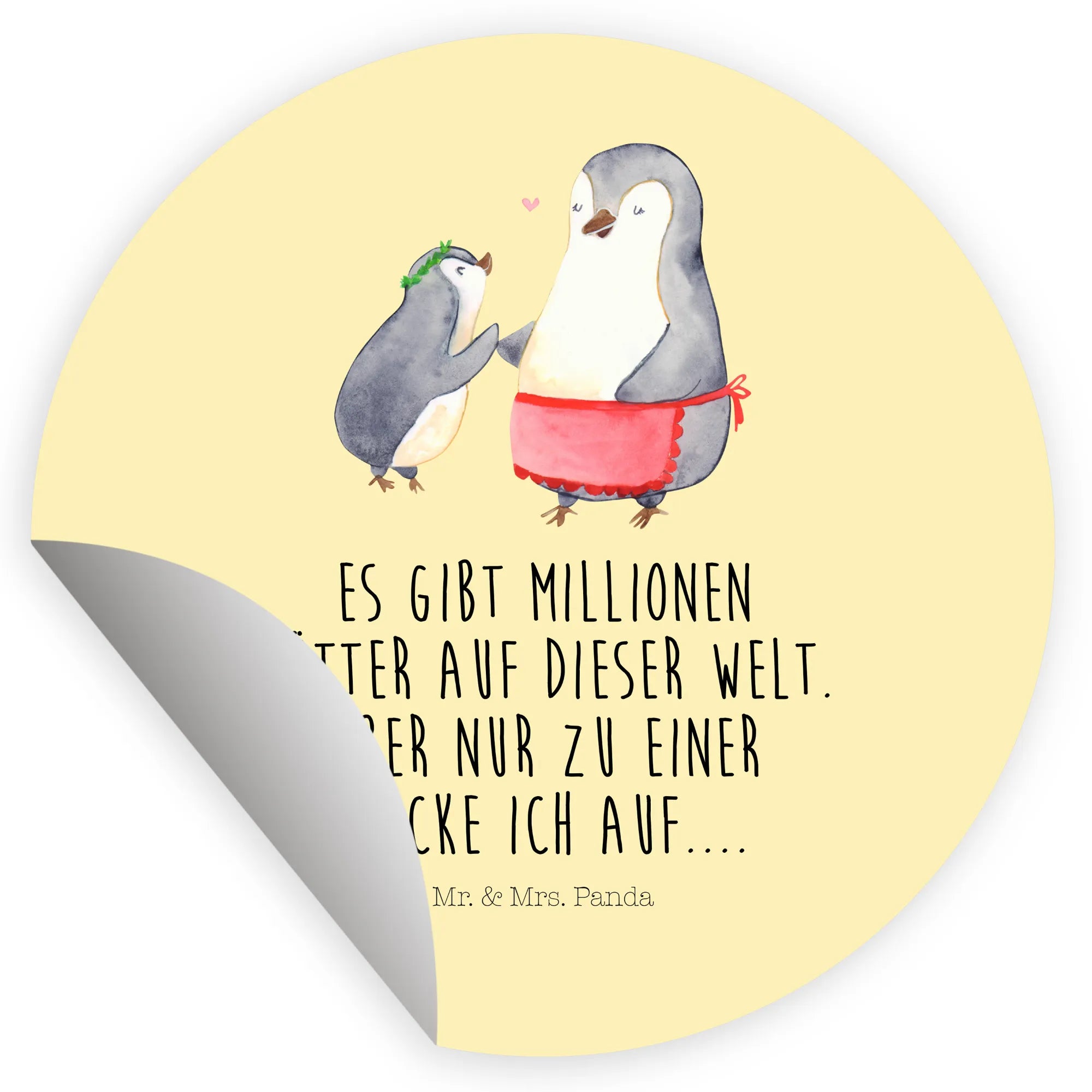 40mm okrągła naklejka Pingwin z dzieckiem - 80mm Rund Aufkleber - z napisem - biały
