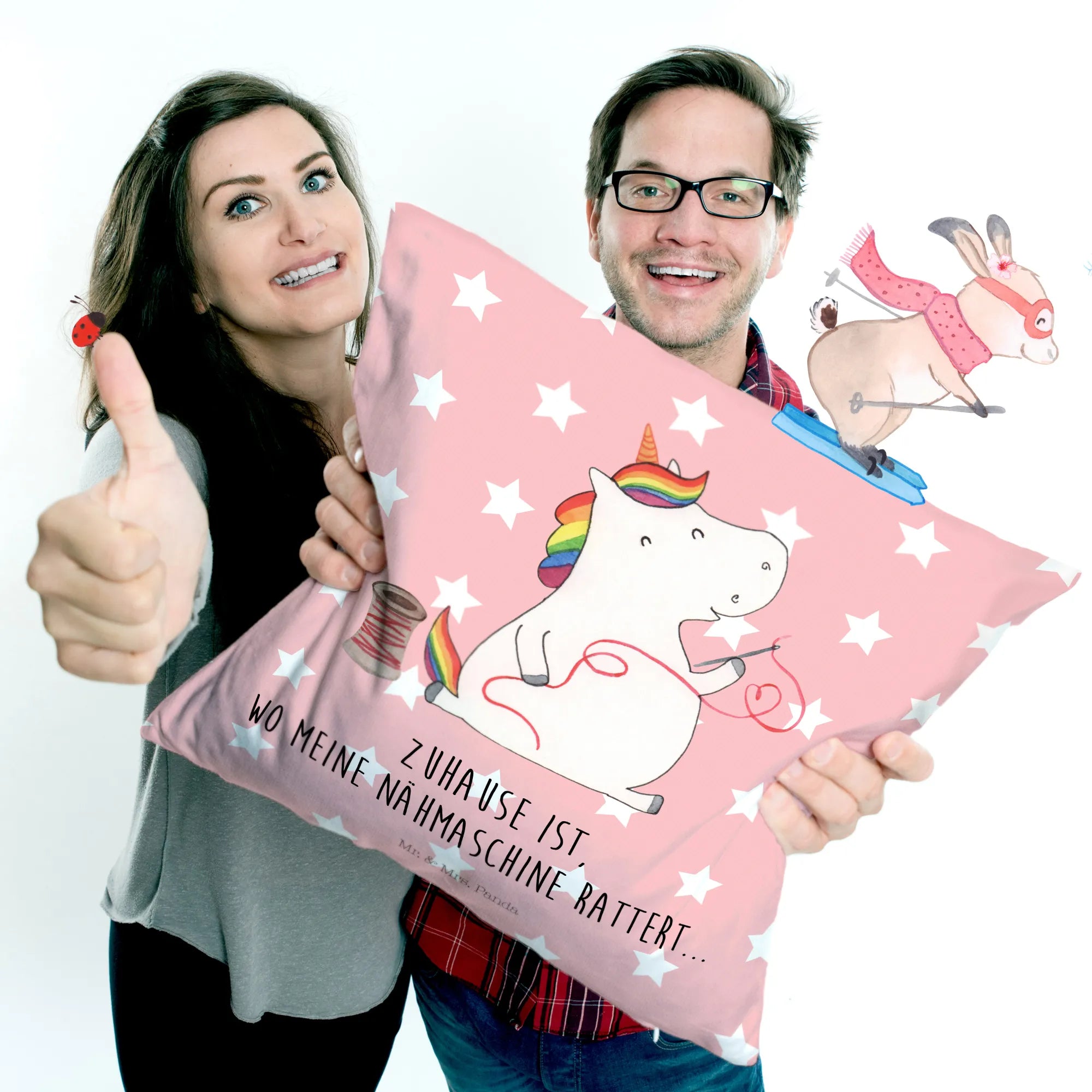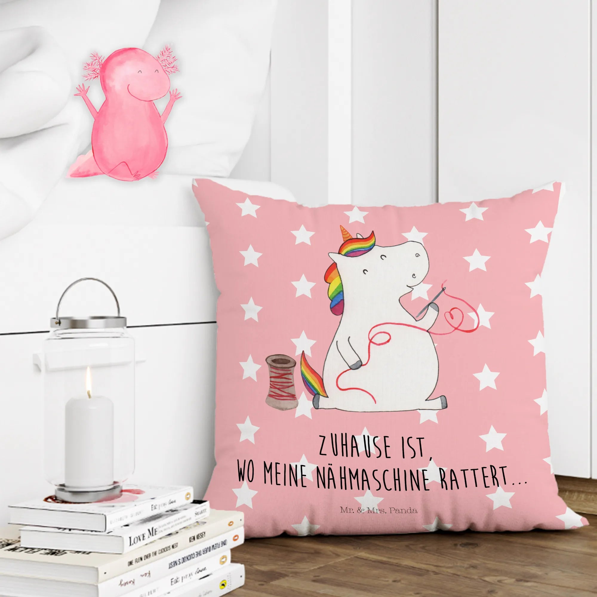 40x40 poduszka Jednorożec krawcowa - z napisem - Pastelowy czerwony