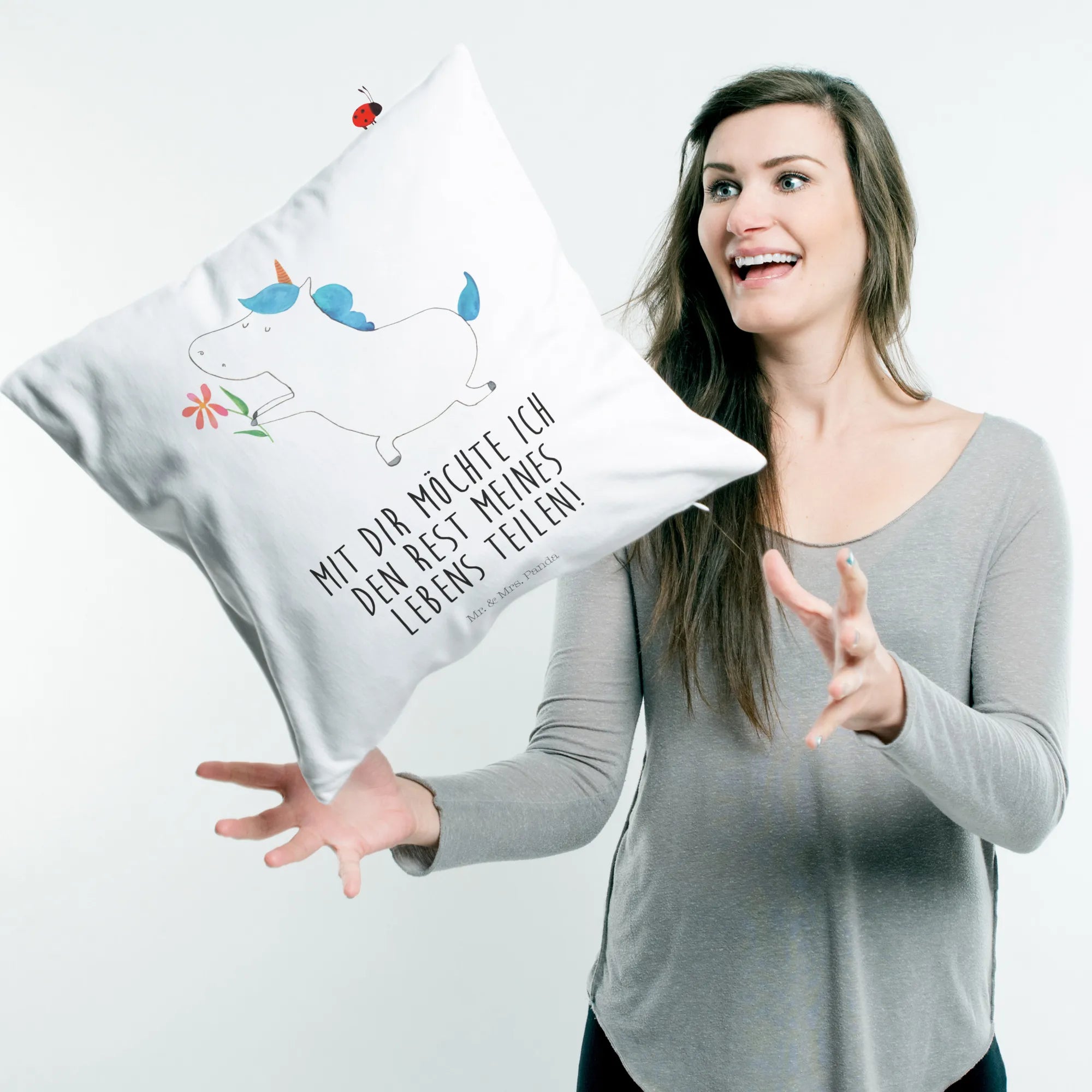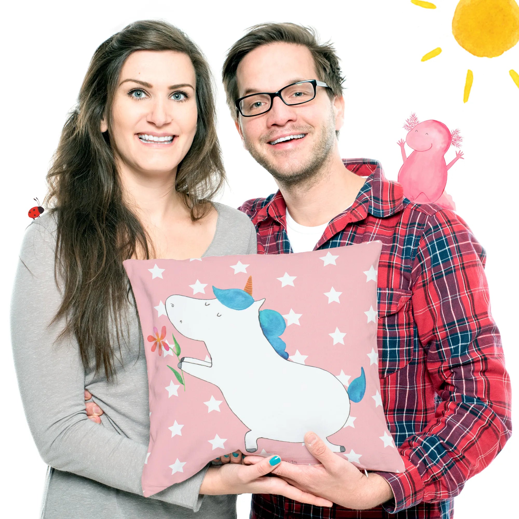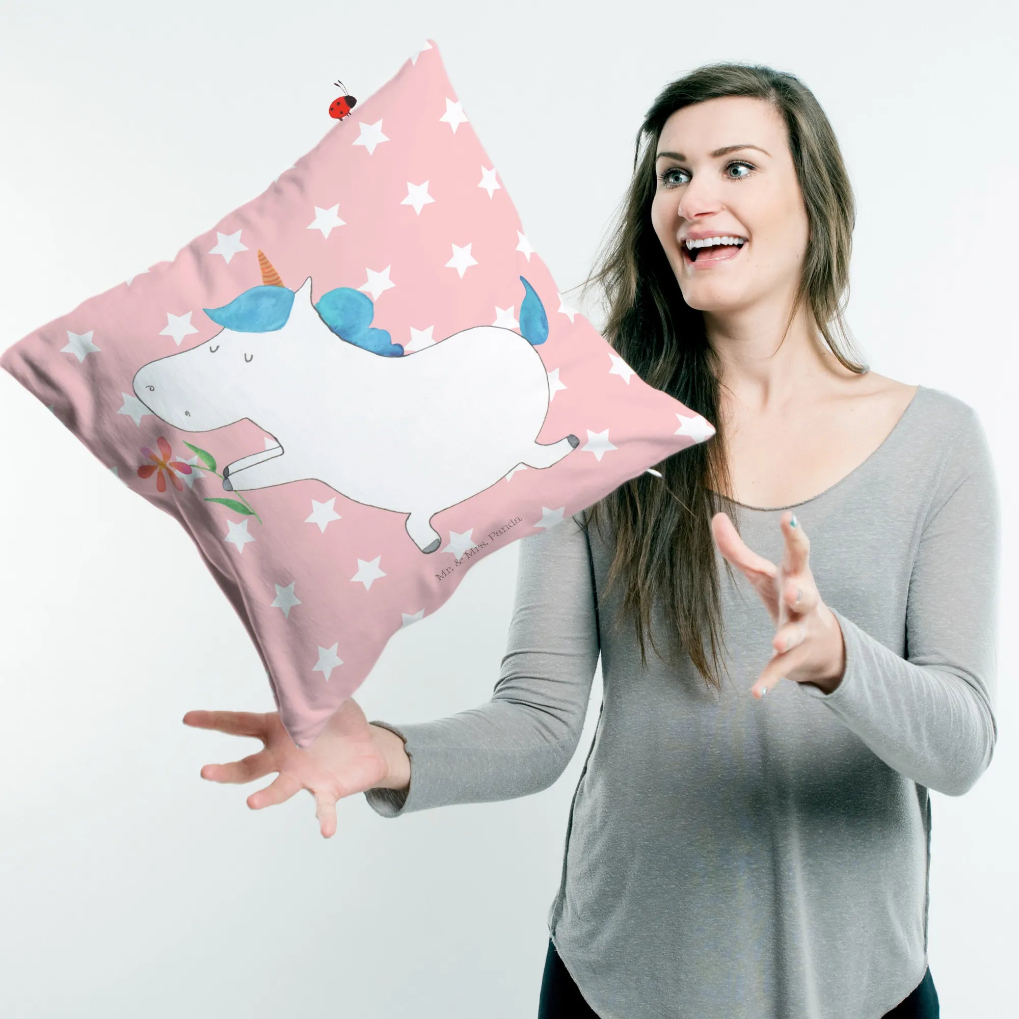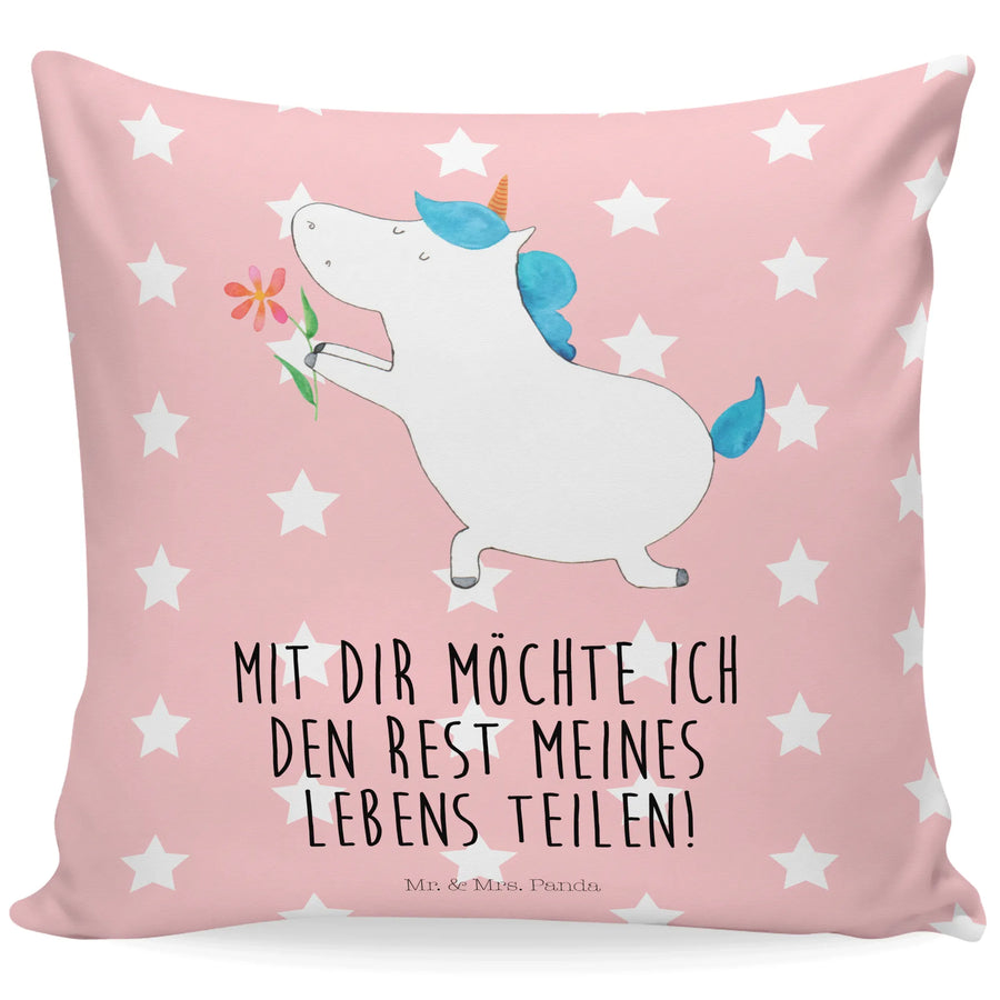 40x40 poduszka jednorożec kwiat - z napisem - Pastelowy czerwony