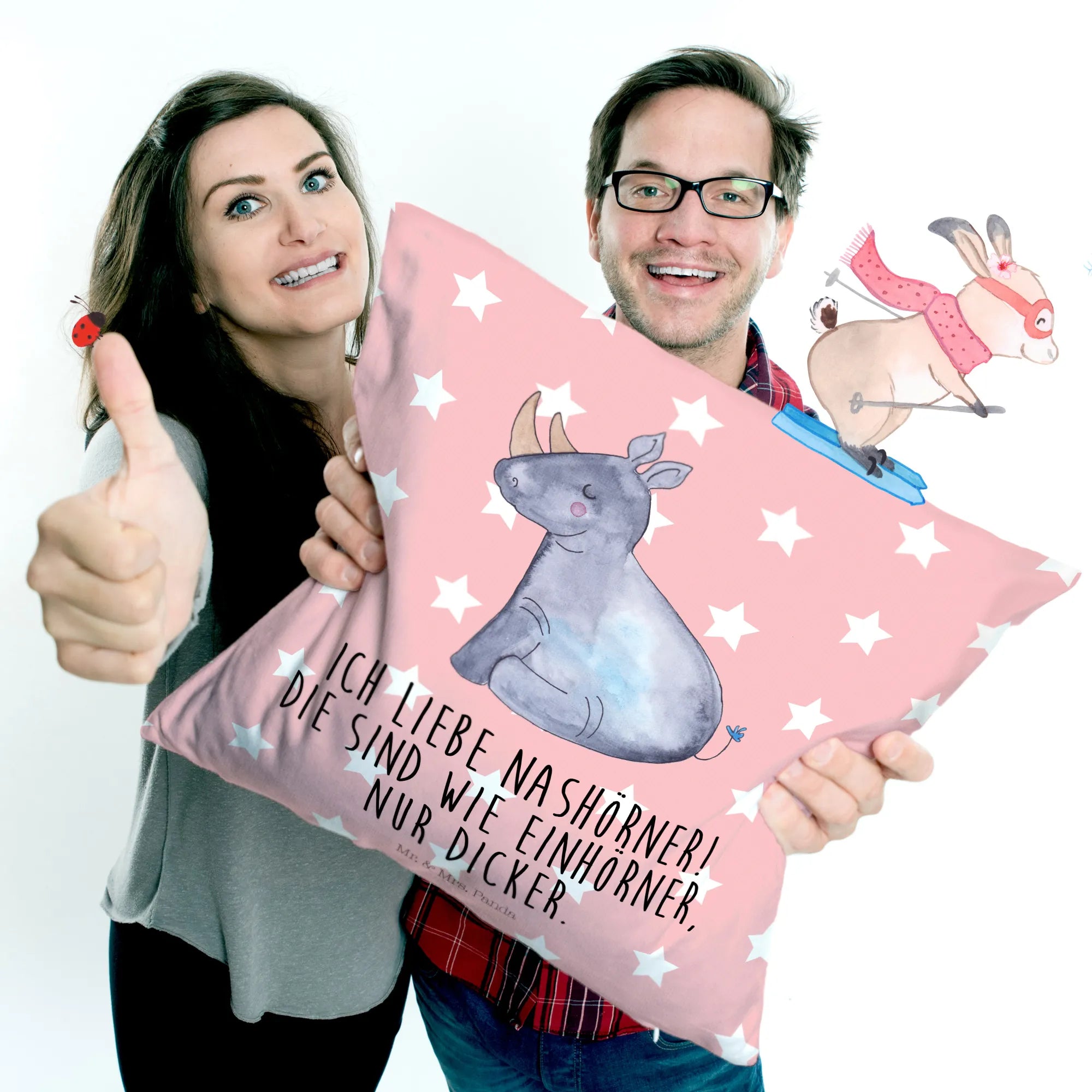 40x40 poduszka Jednorożec Nosorożec - z napisem - Pastelowy czerwony