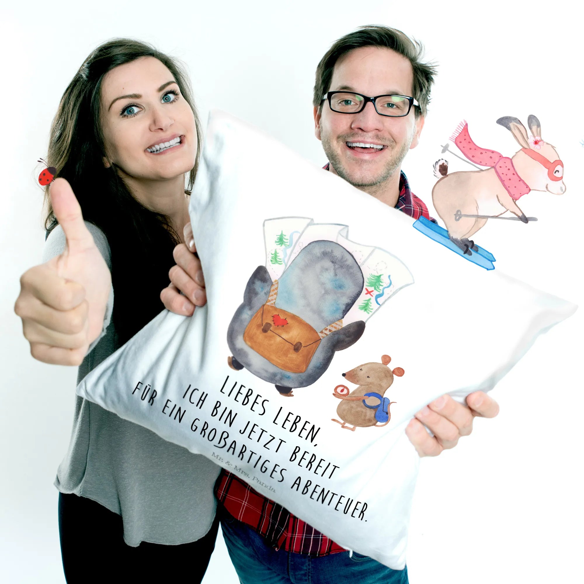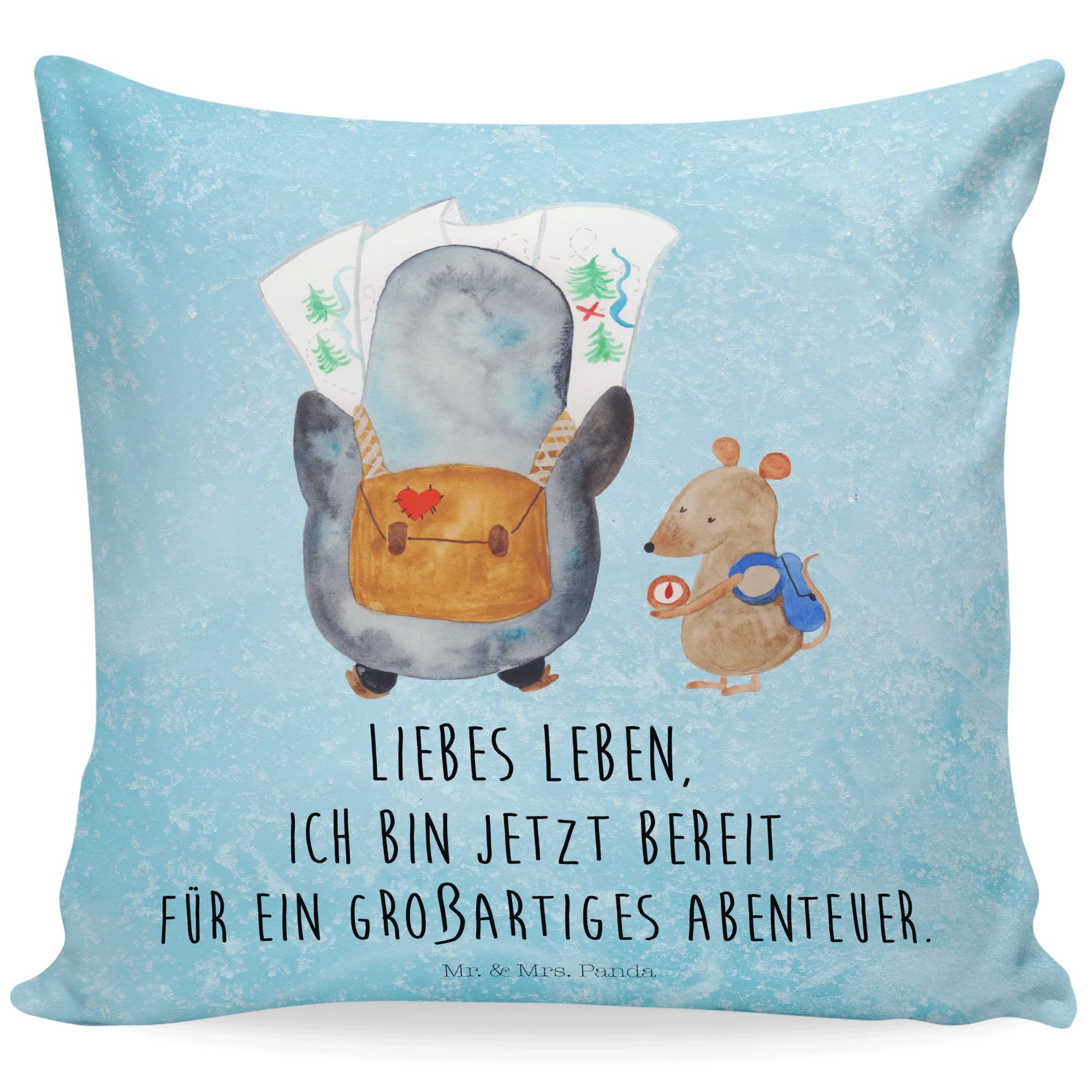 40x40 poduszka Pingwin i Mysz Wędrowcy - z napisem - Biały