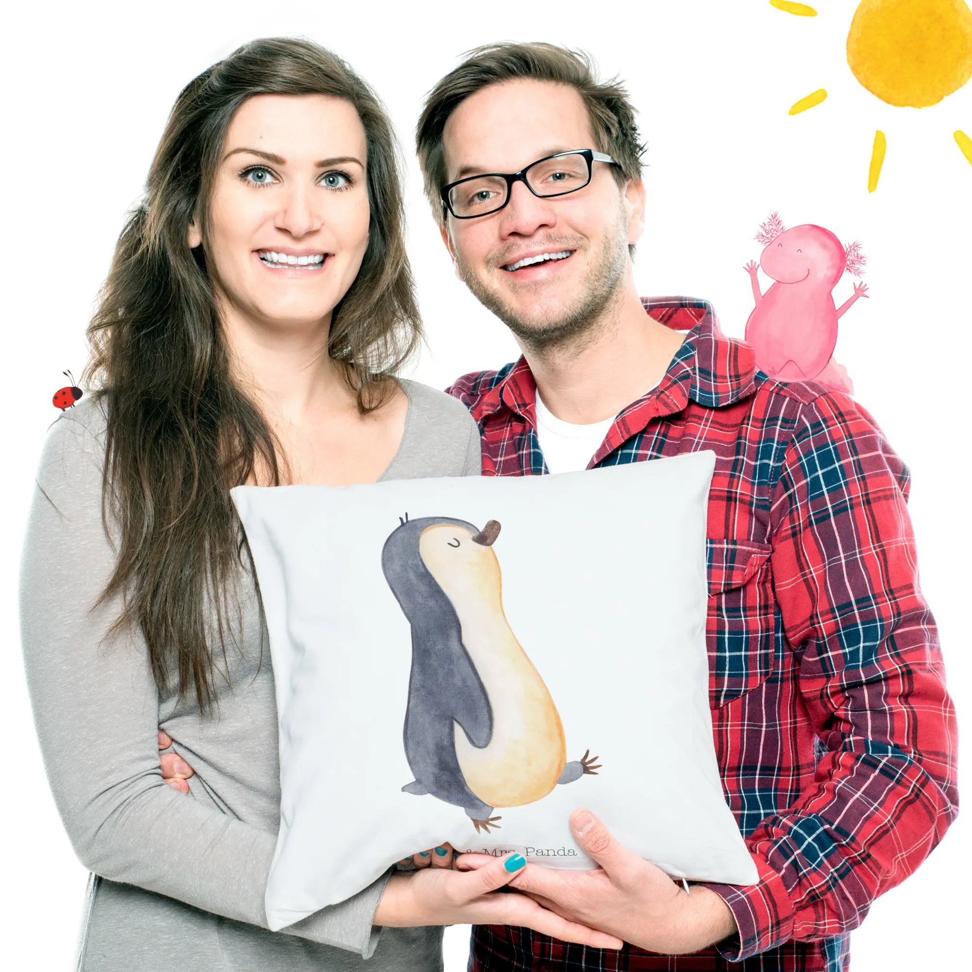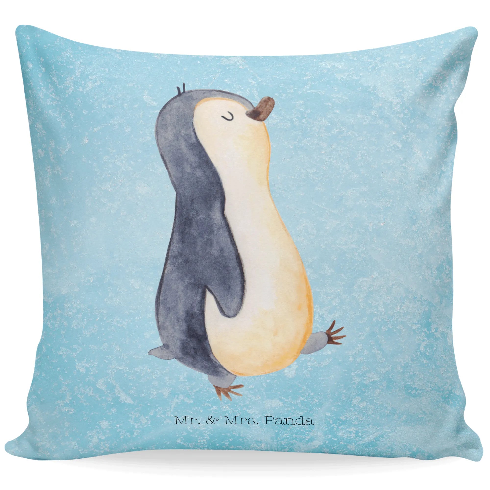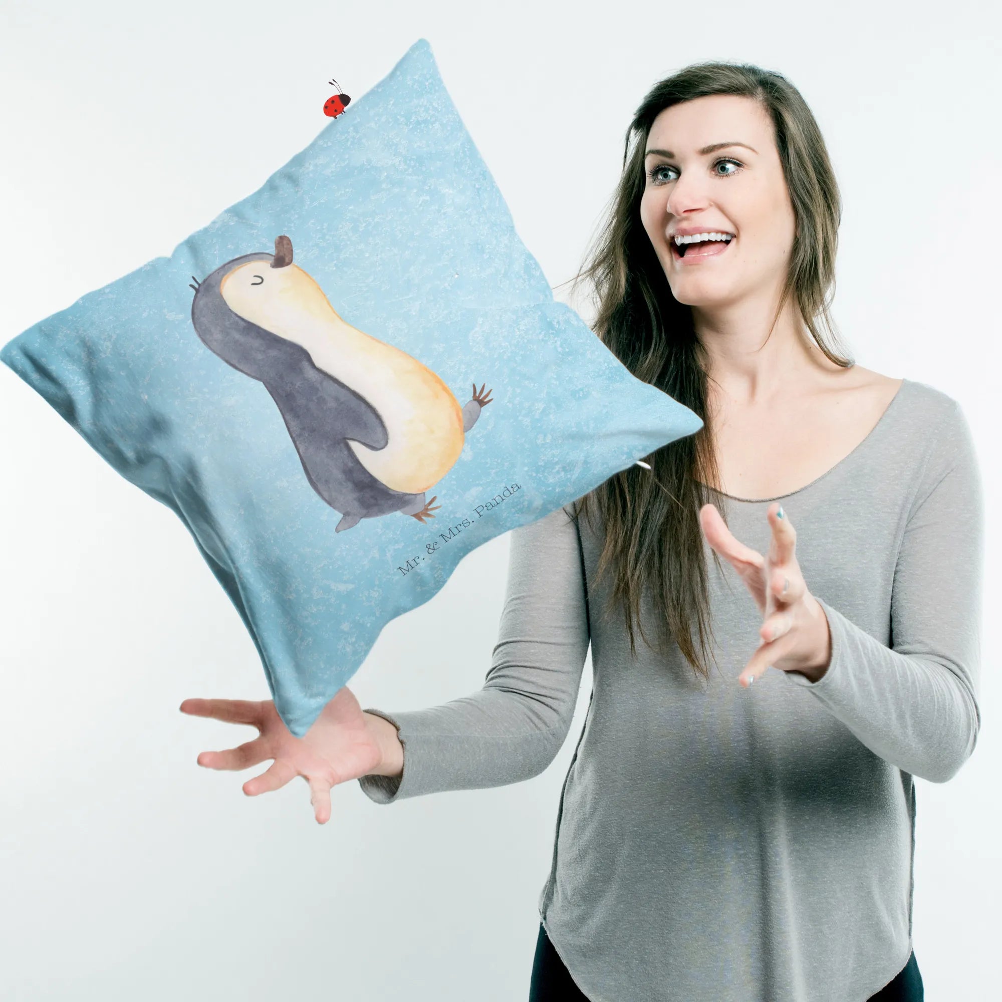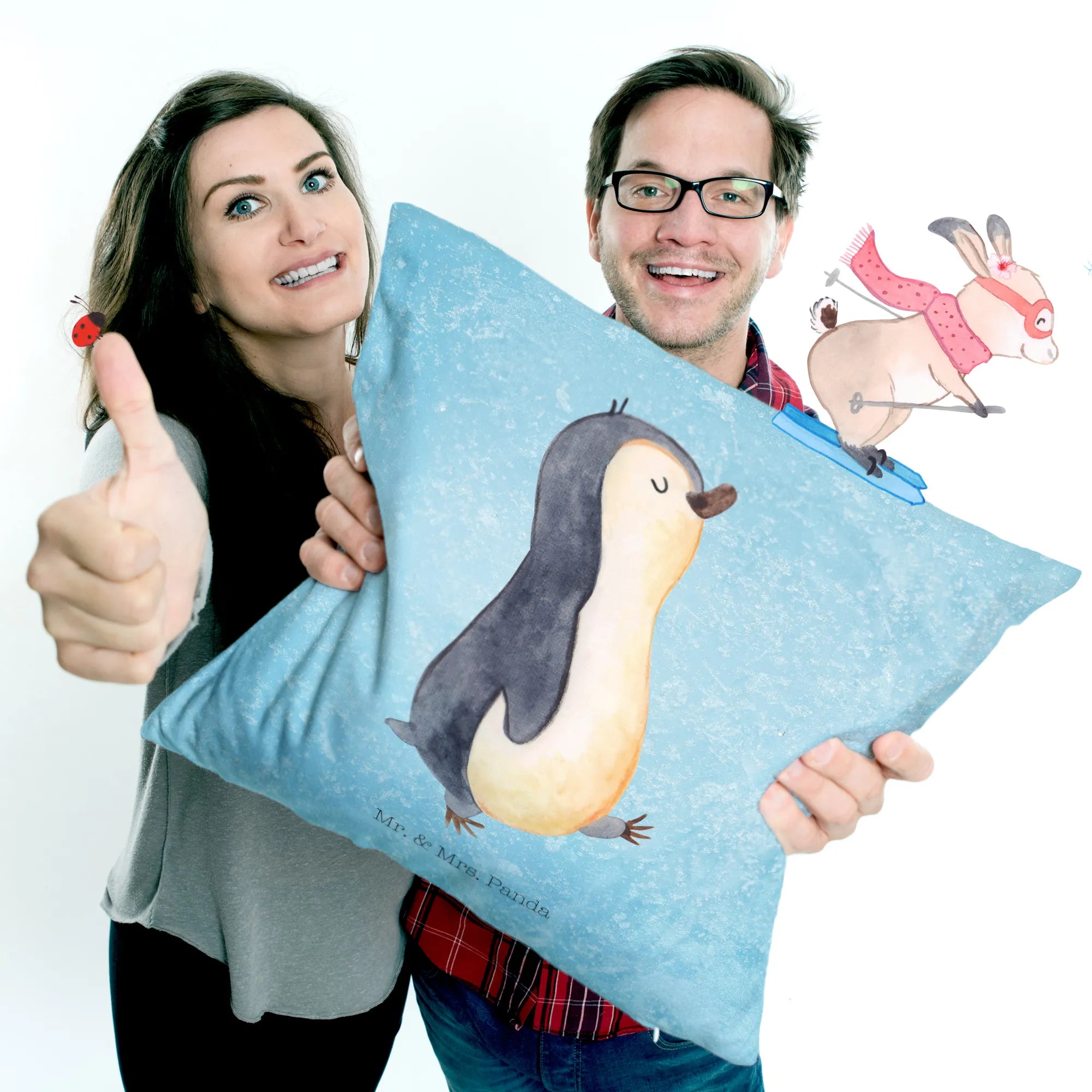 40x40 poduszka Pingwin maszerować - z napisem - Eisblau