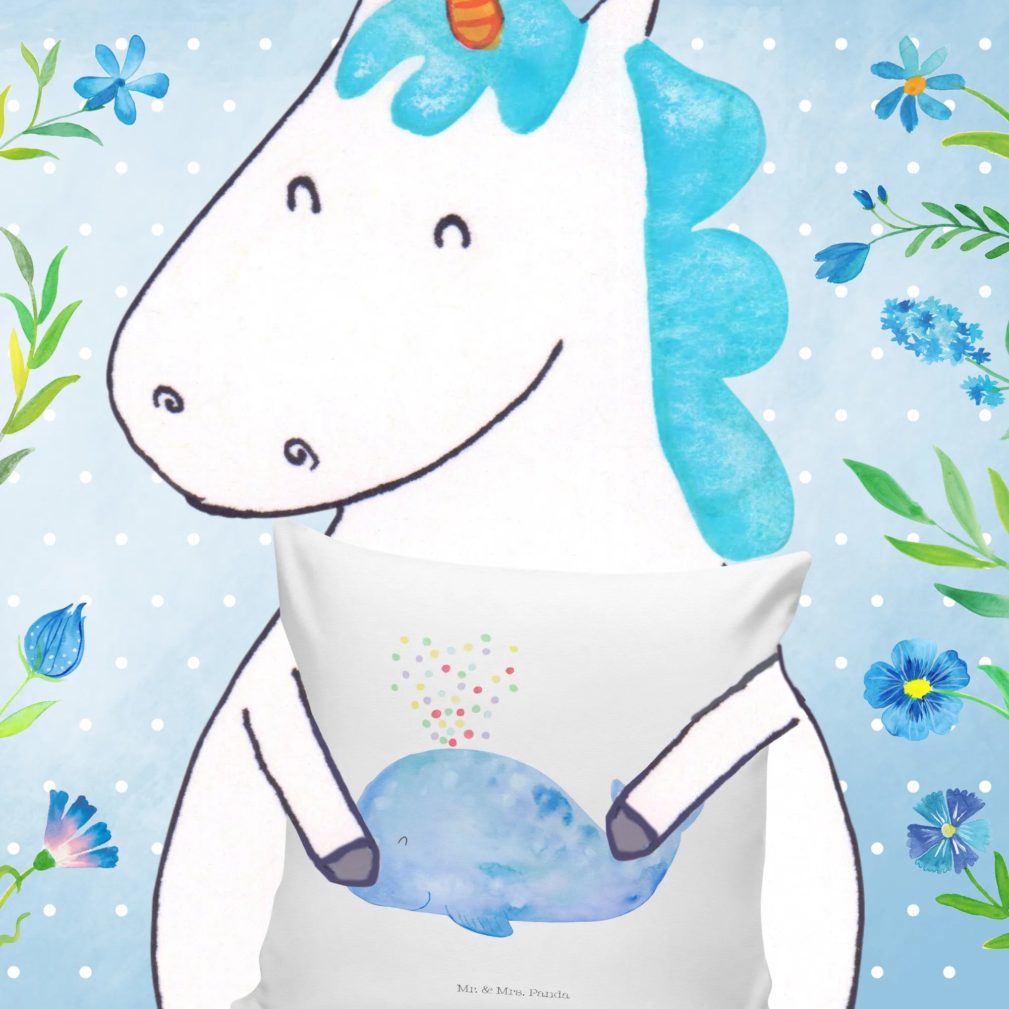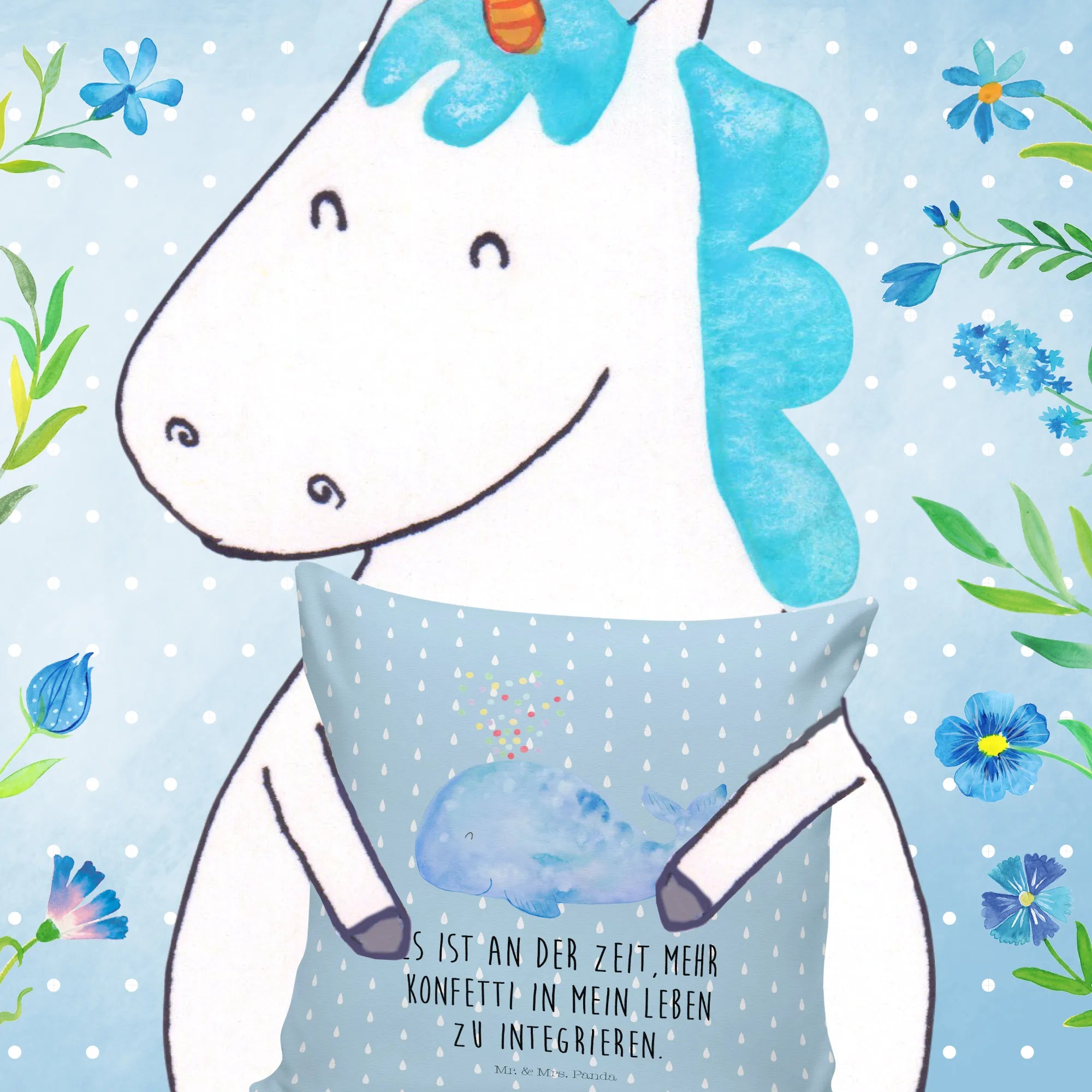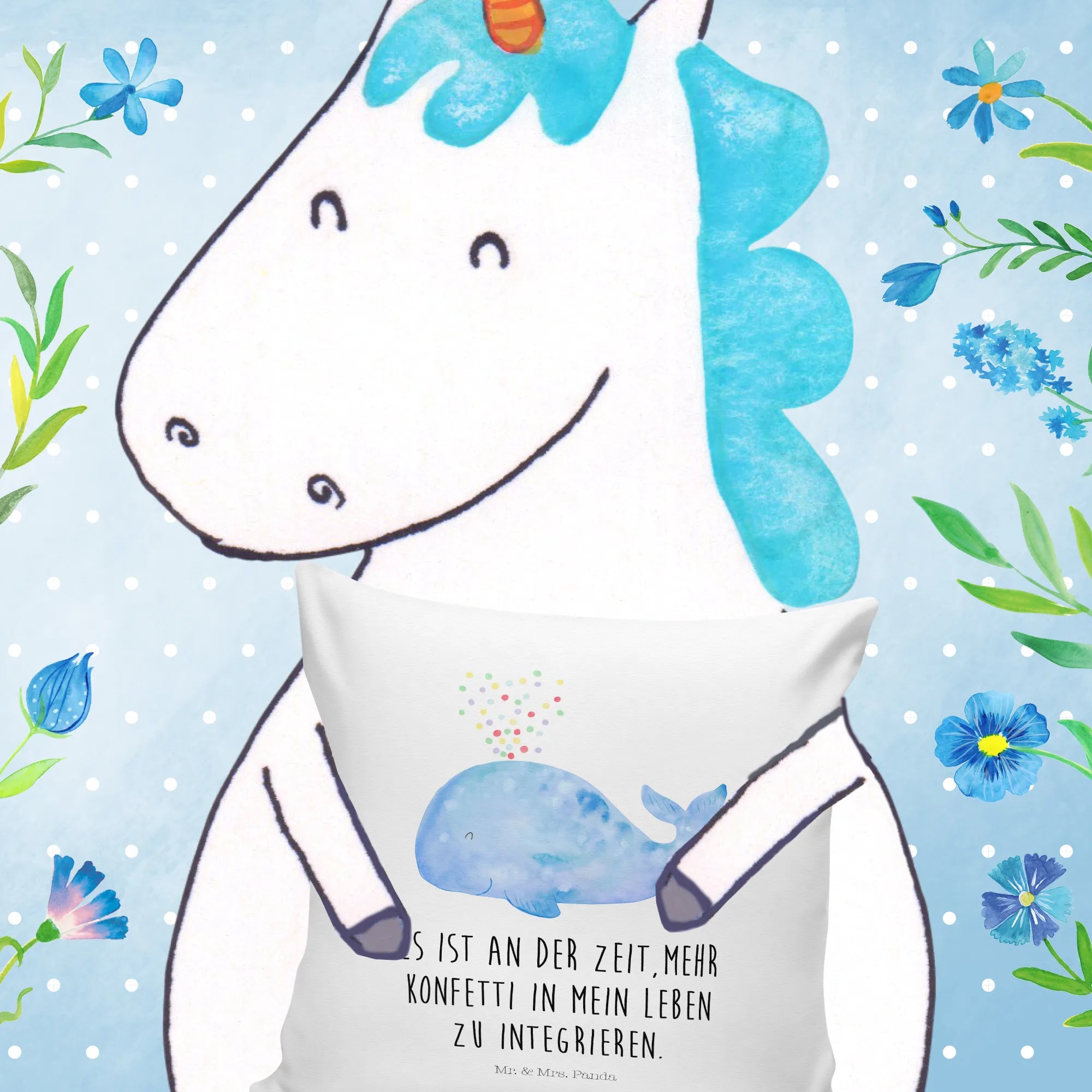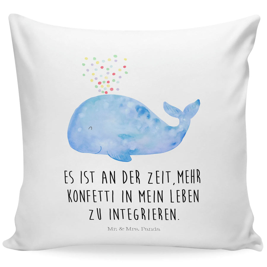 40x40 poduszka wieloryb konfetti - z napisem - biały