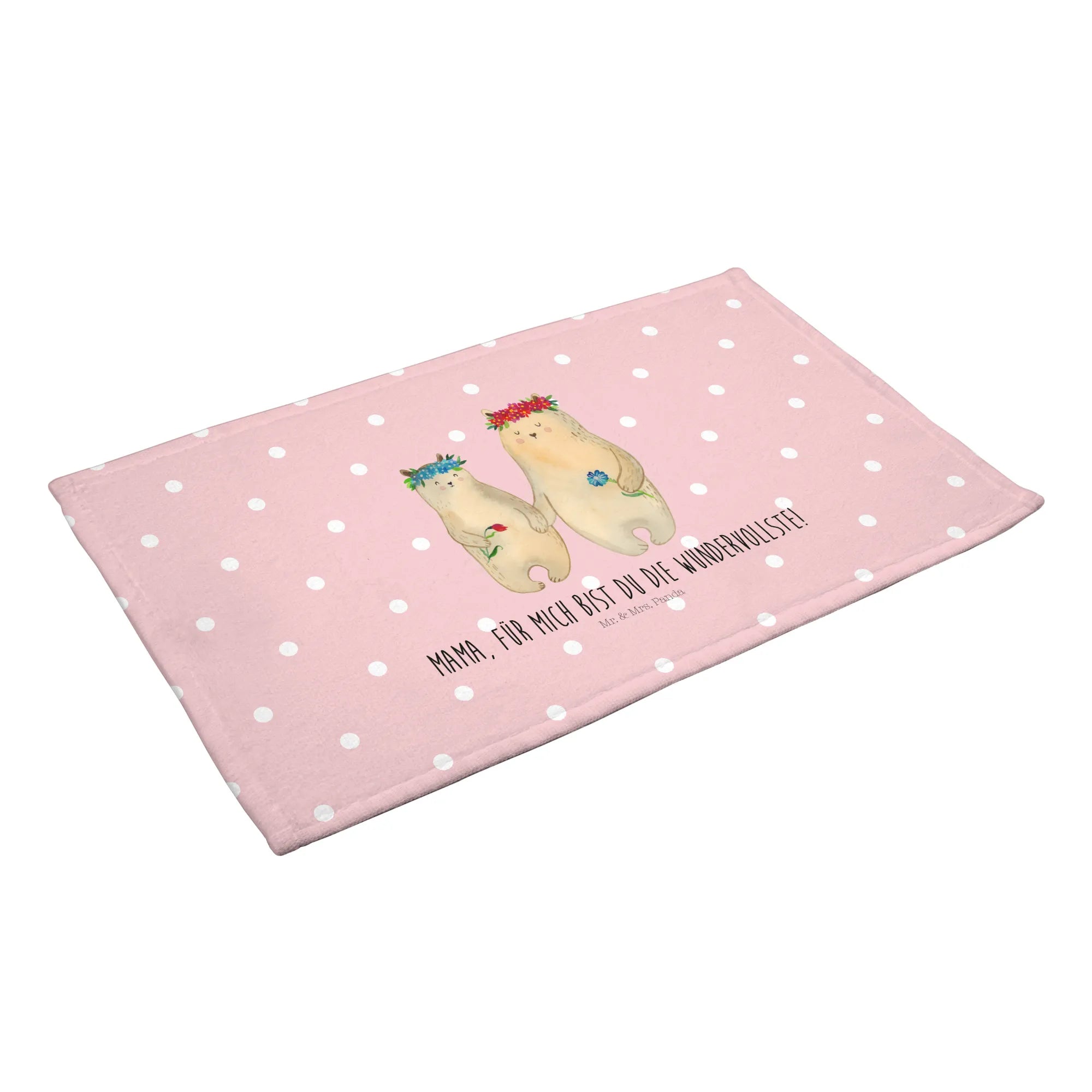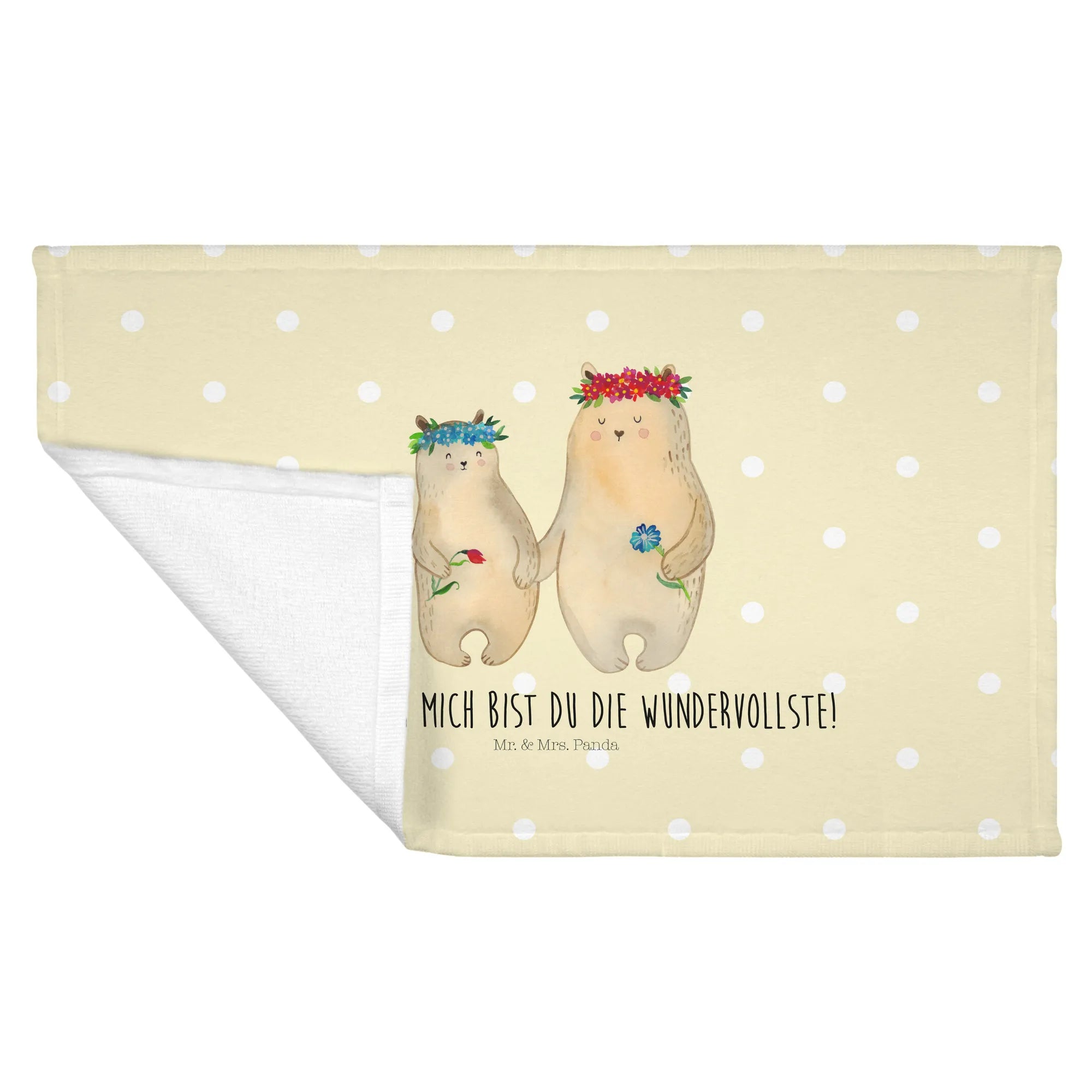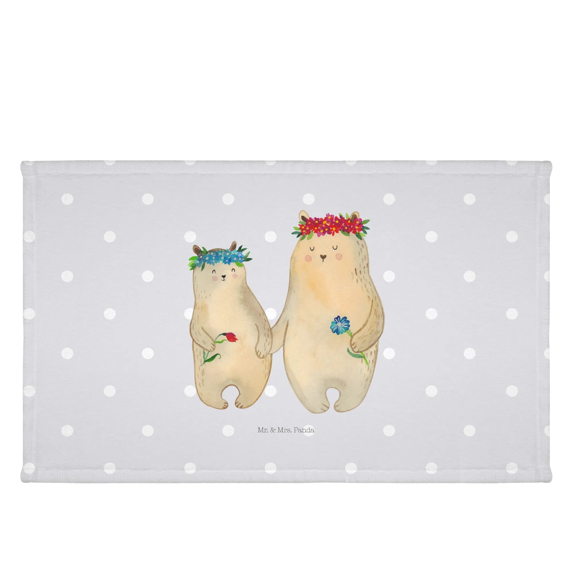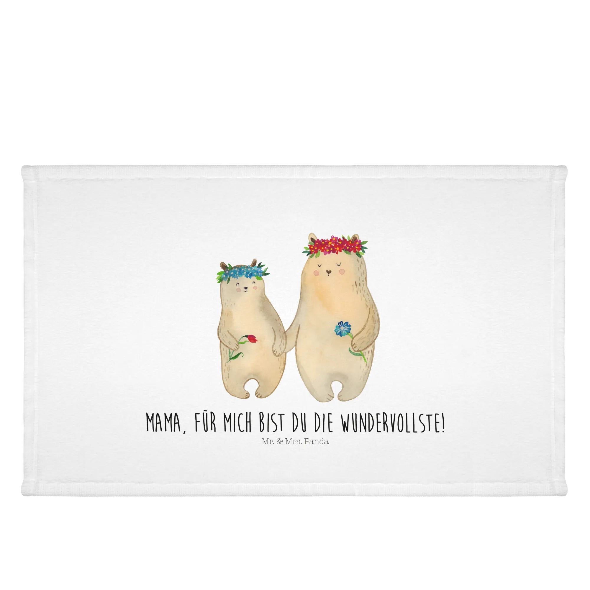 50 x 100 ręcznik Niedźwiedzie z wianuszkiem - z napisem - biały