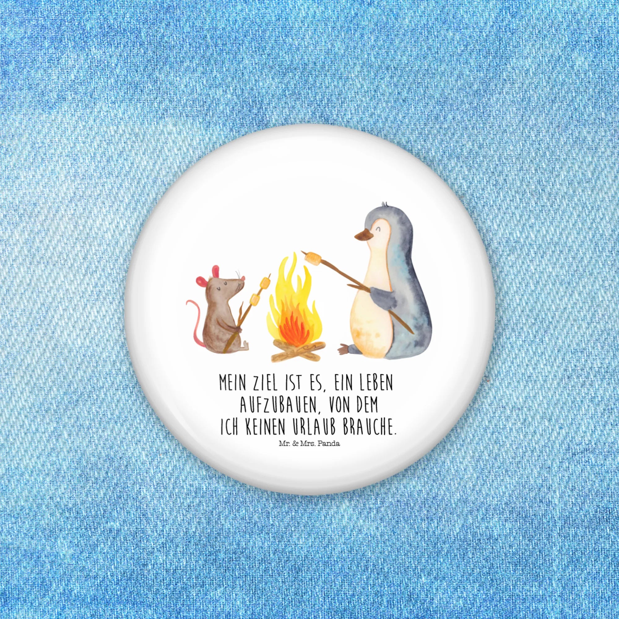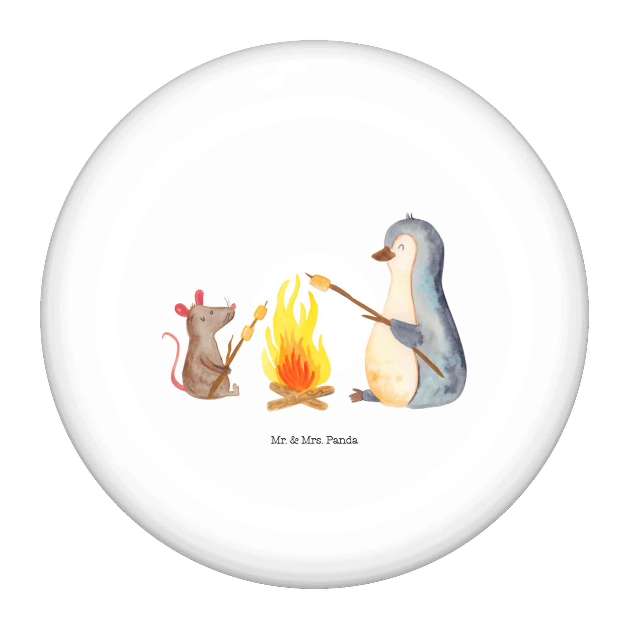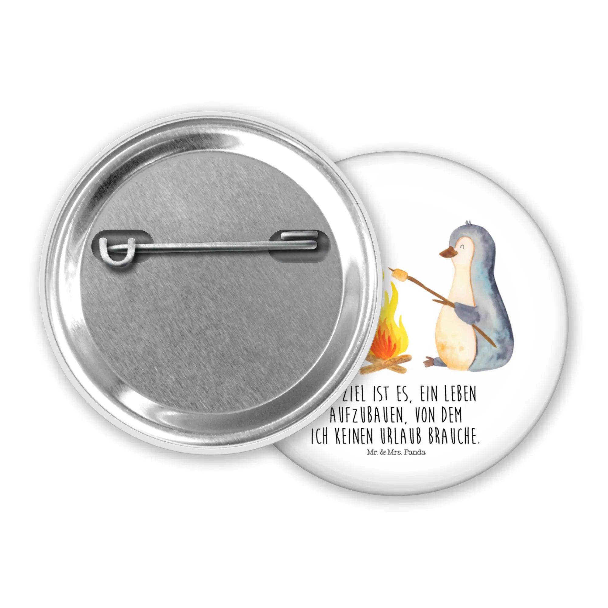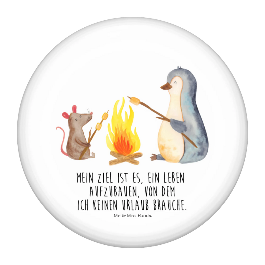 50mm Guzik pingwin ognisko - z napisem - Biały