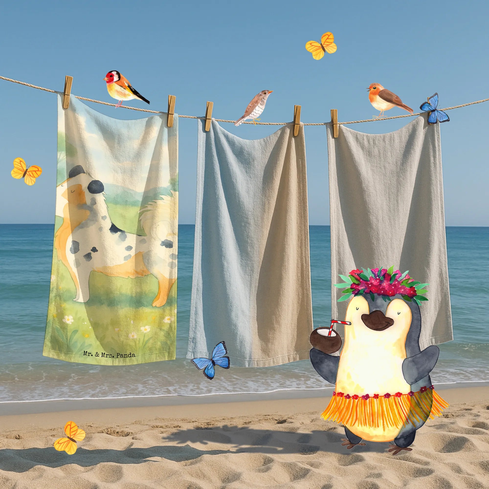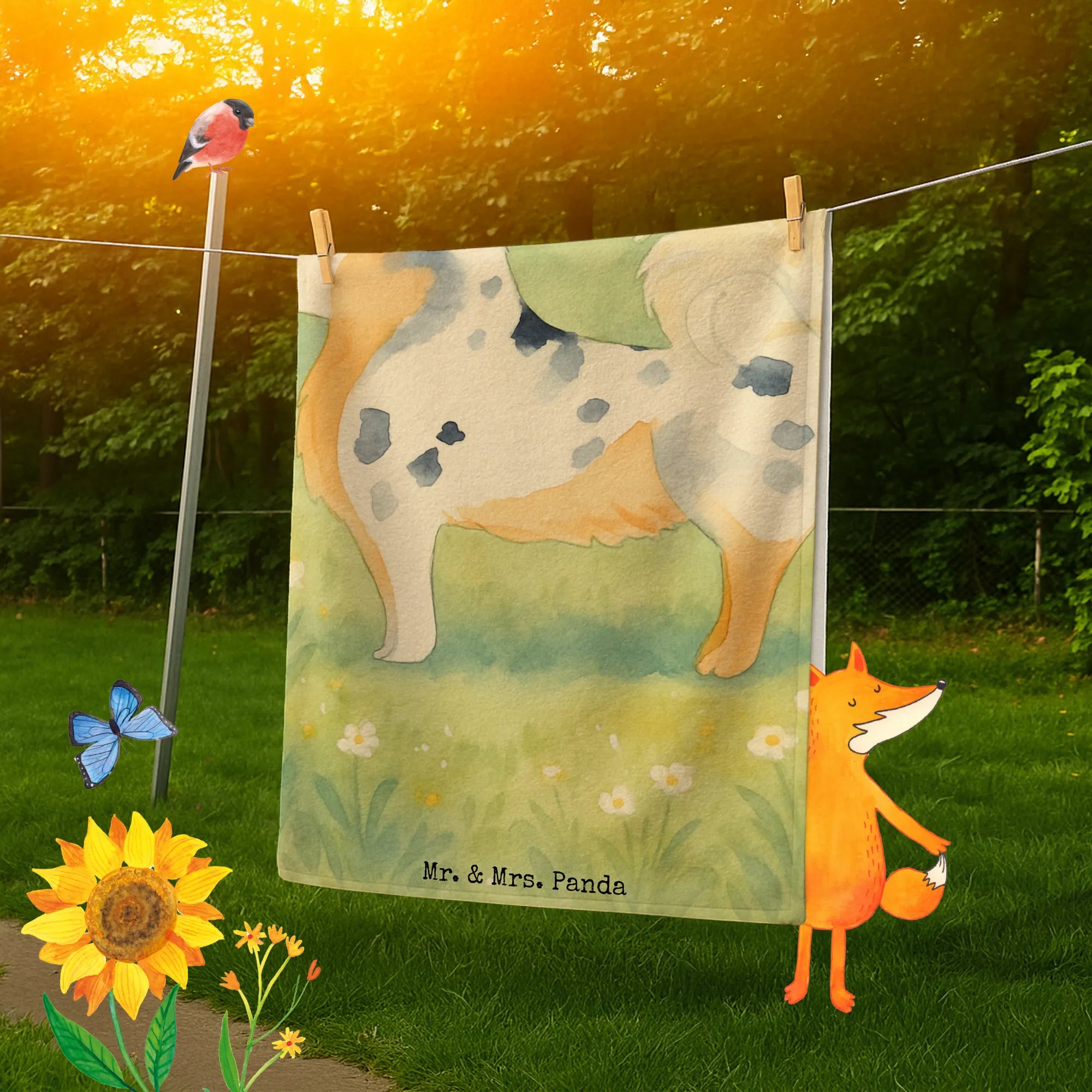 70 x 140 ręcznik Pies Owczarek australijski Design - biały