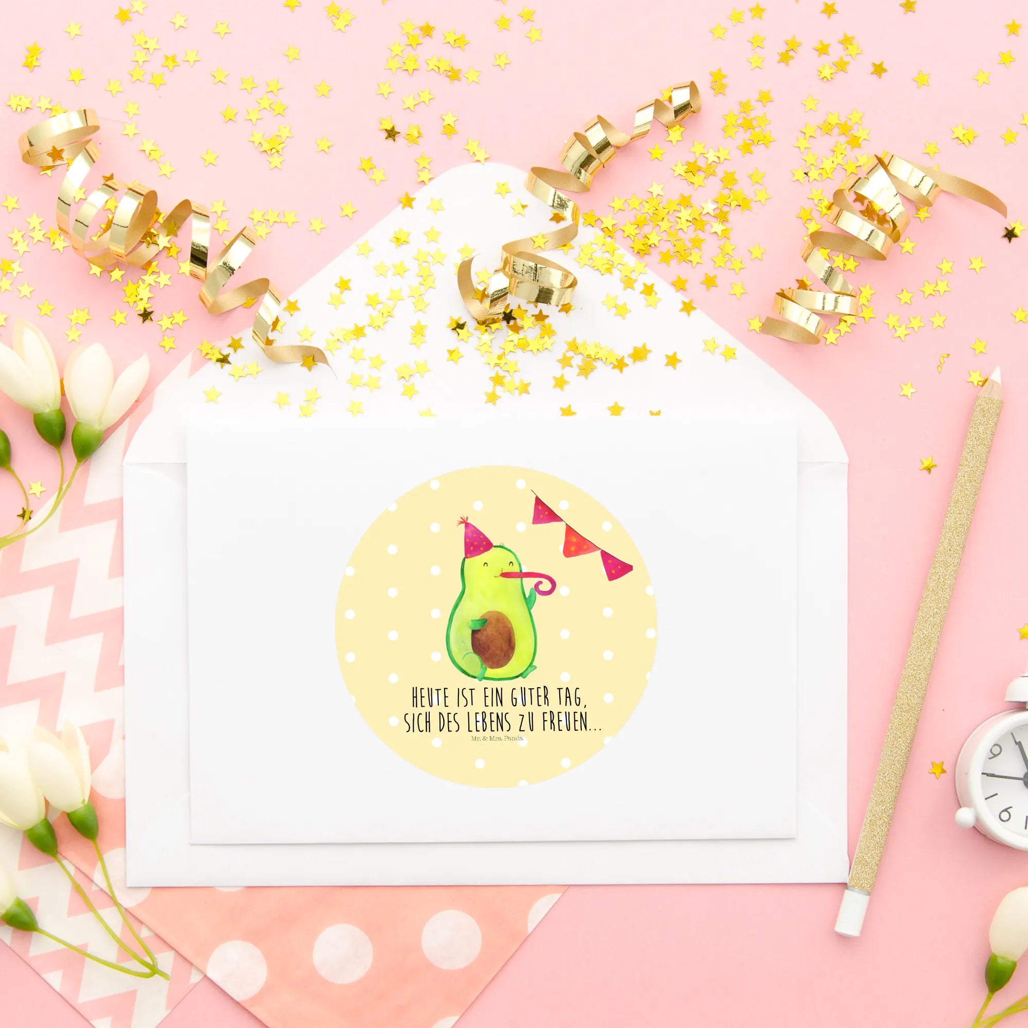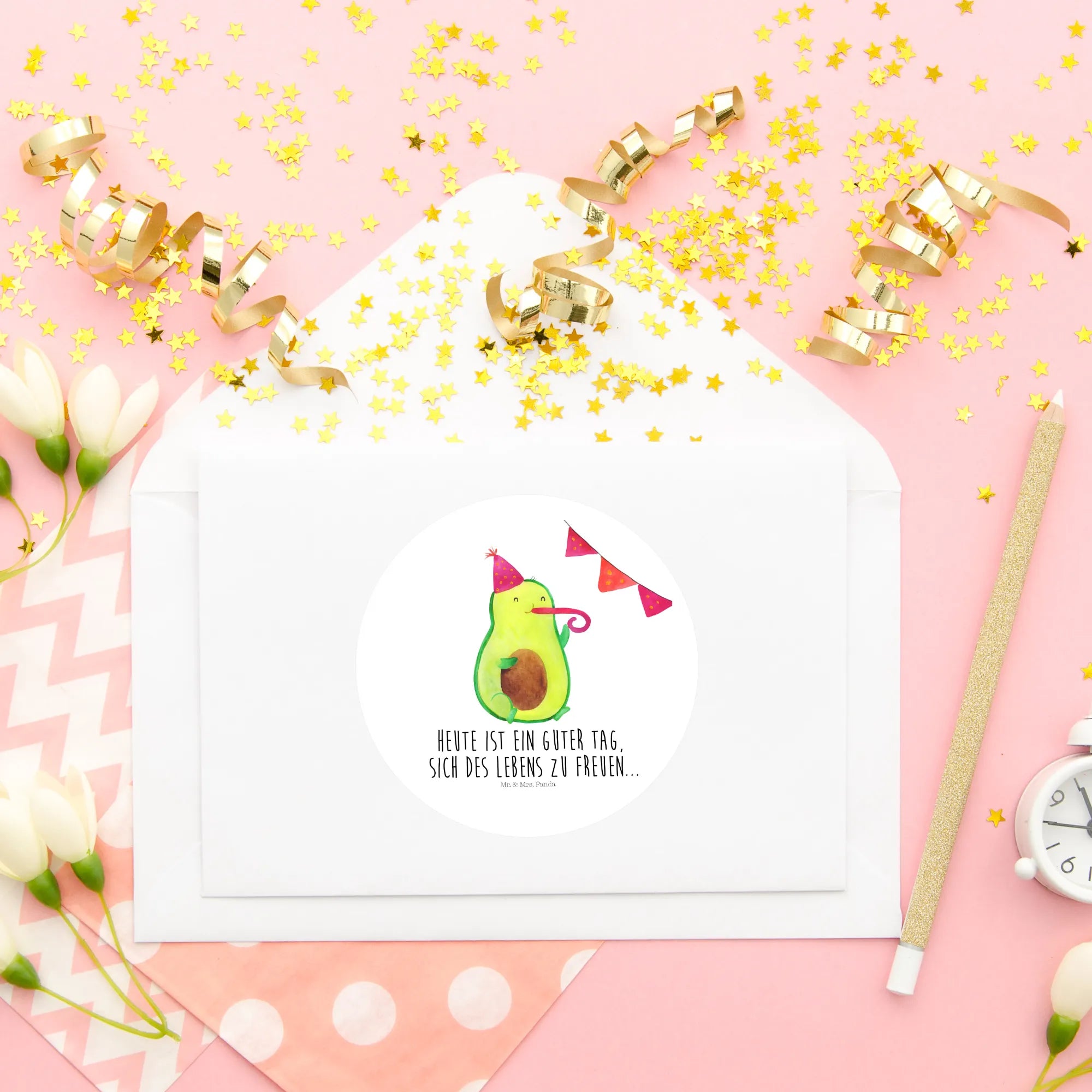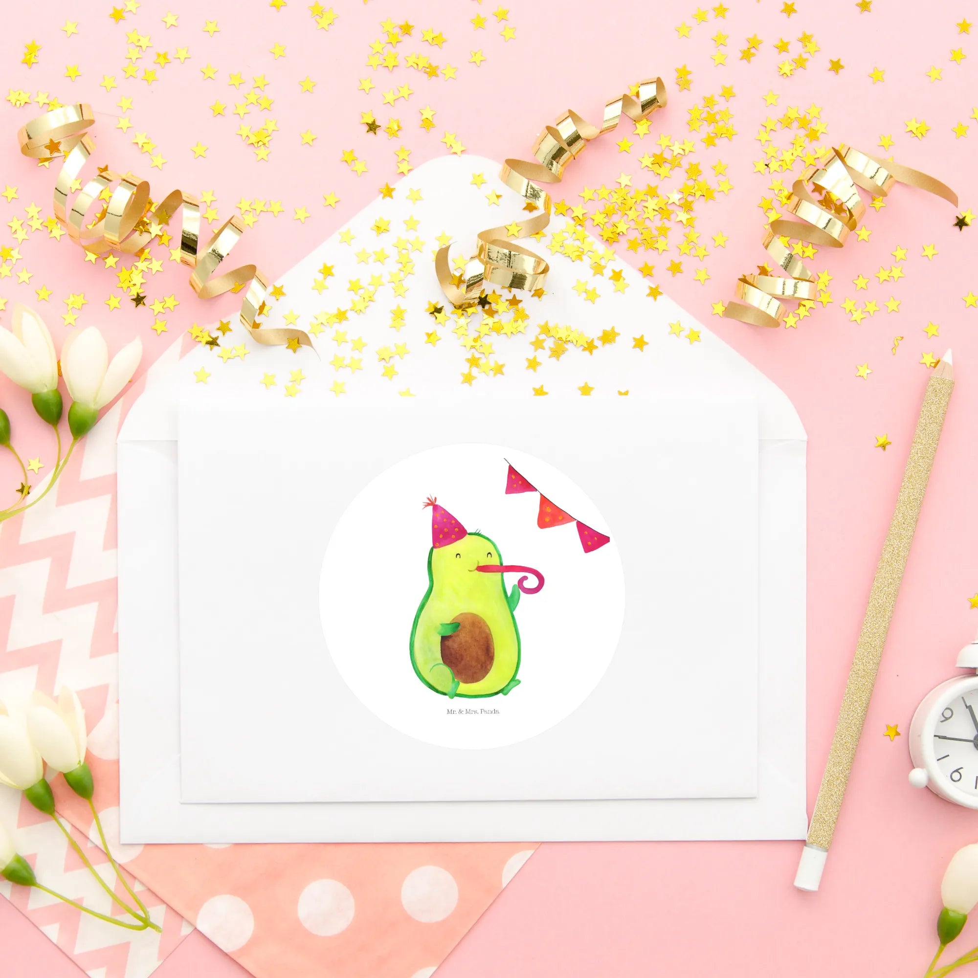 80mm okrągła naklejka Awokado Impreza - 80mm Rund Aufkleber - z napisem - biały