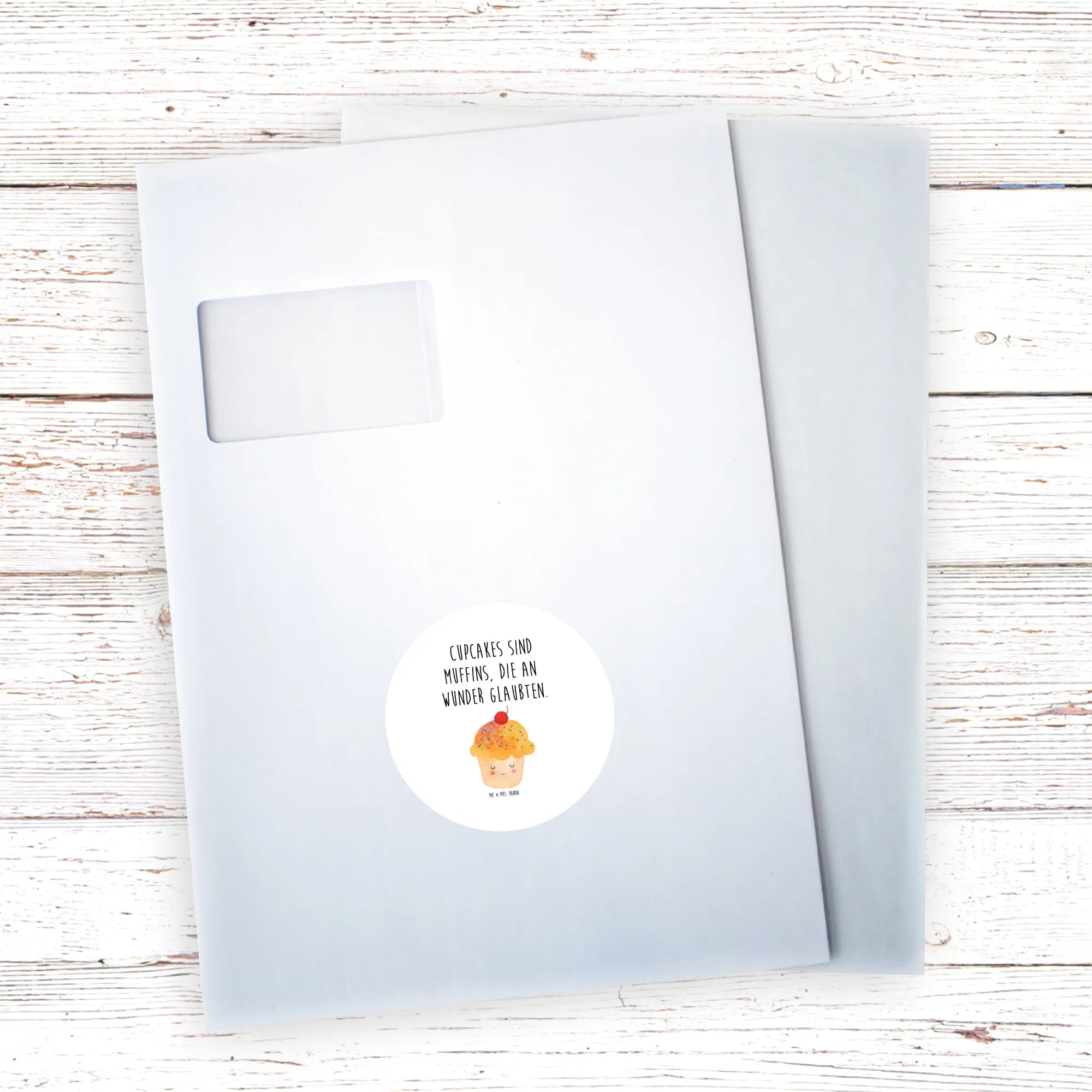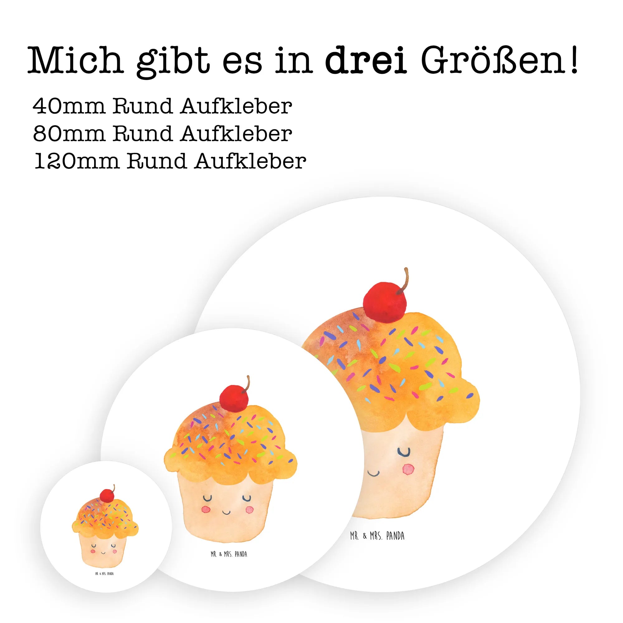 80mm okrągła naklejka Babeczka - 80mm Rund Aufkleber - z napisem - biały
