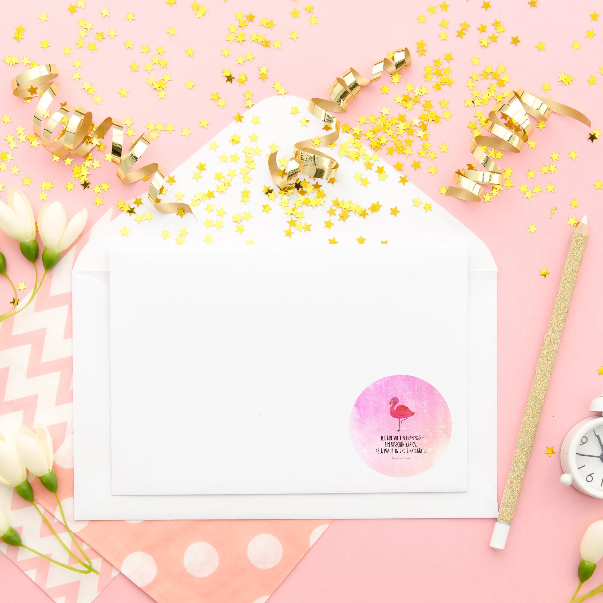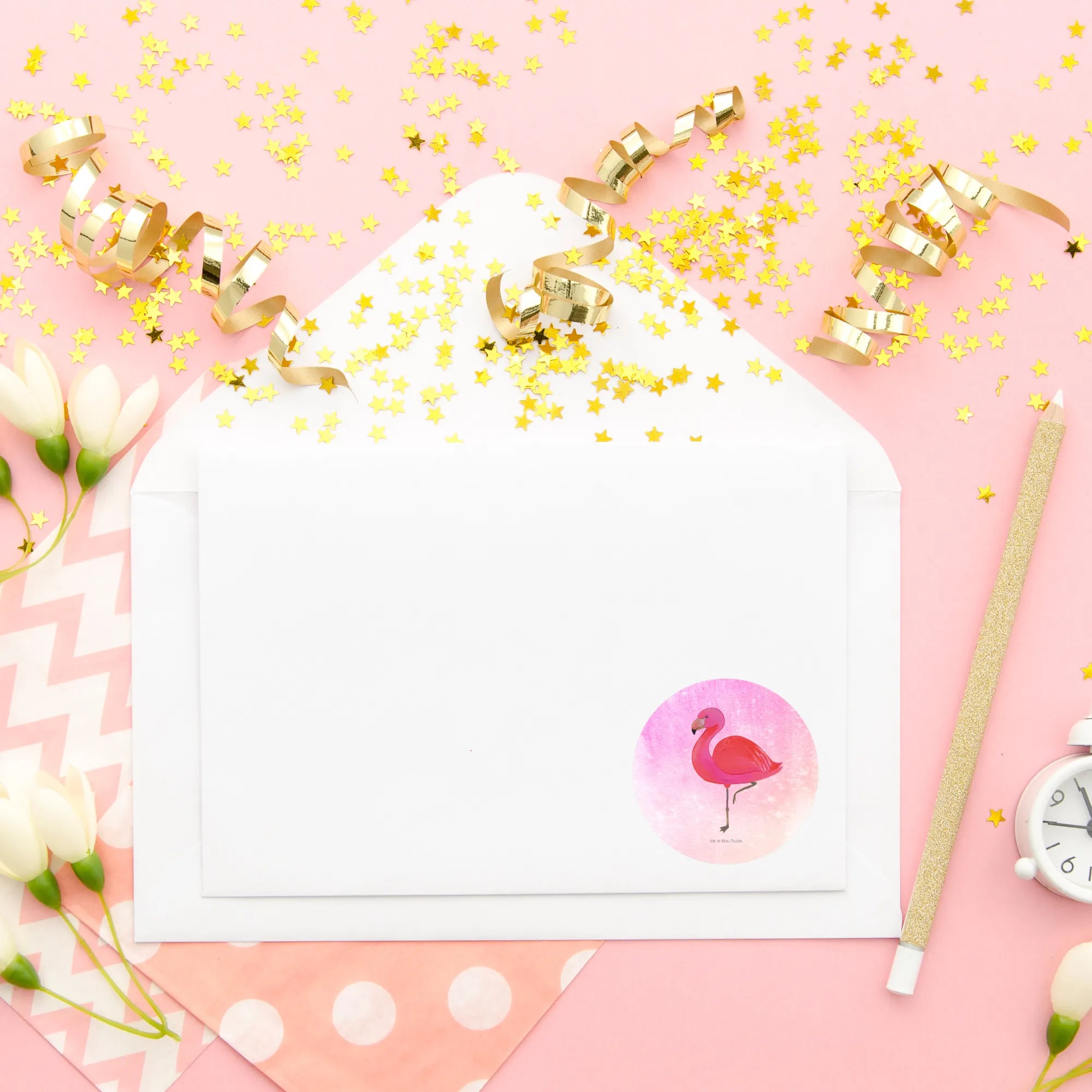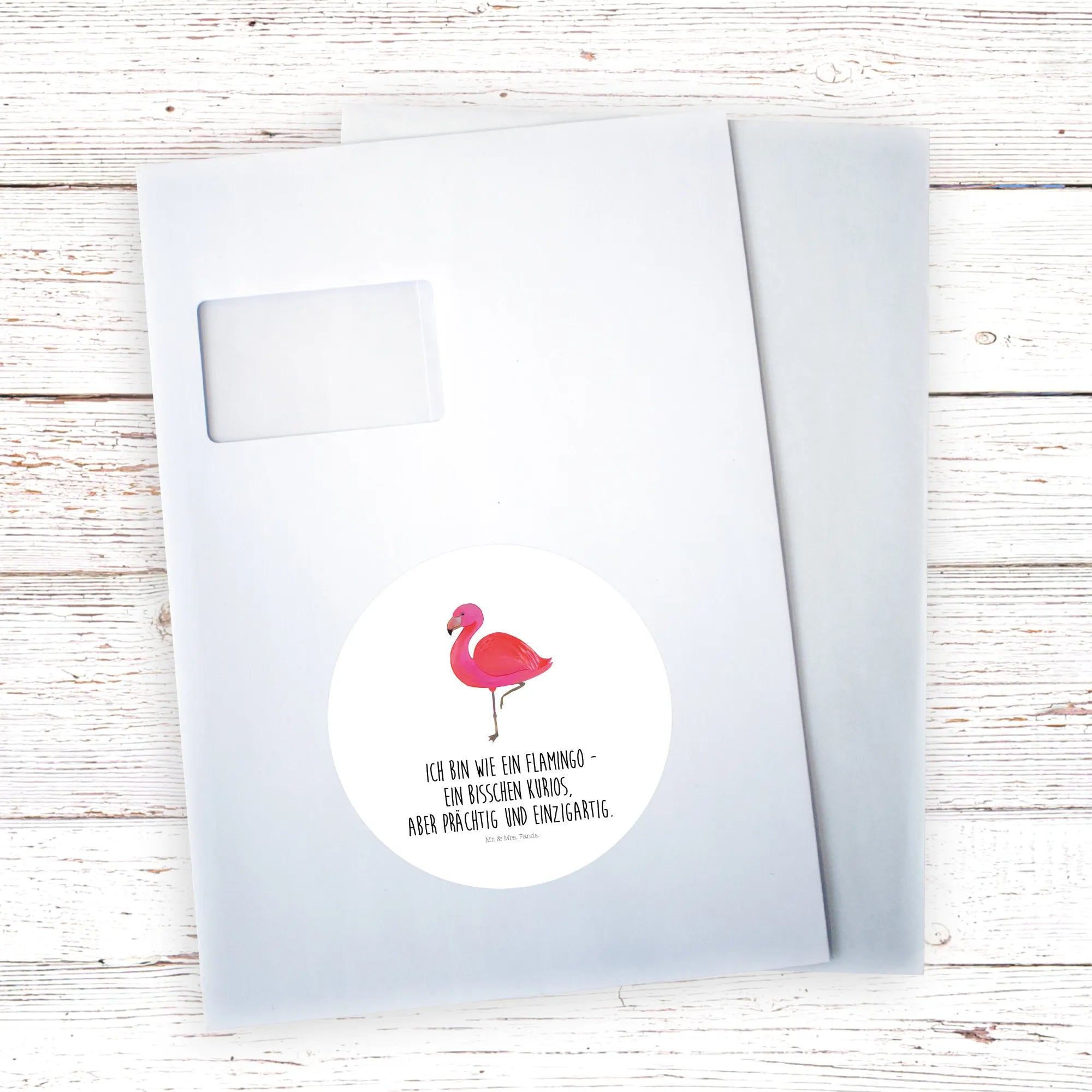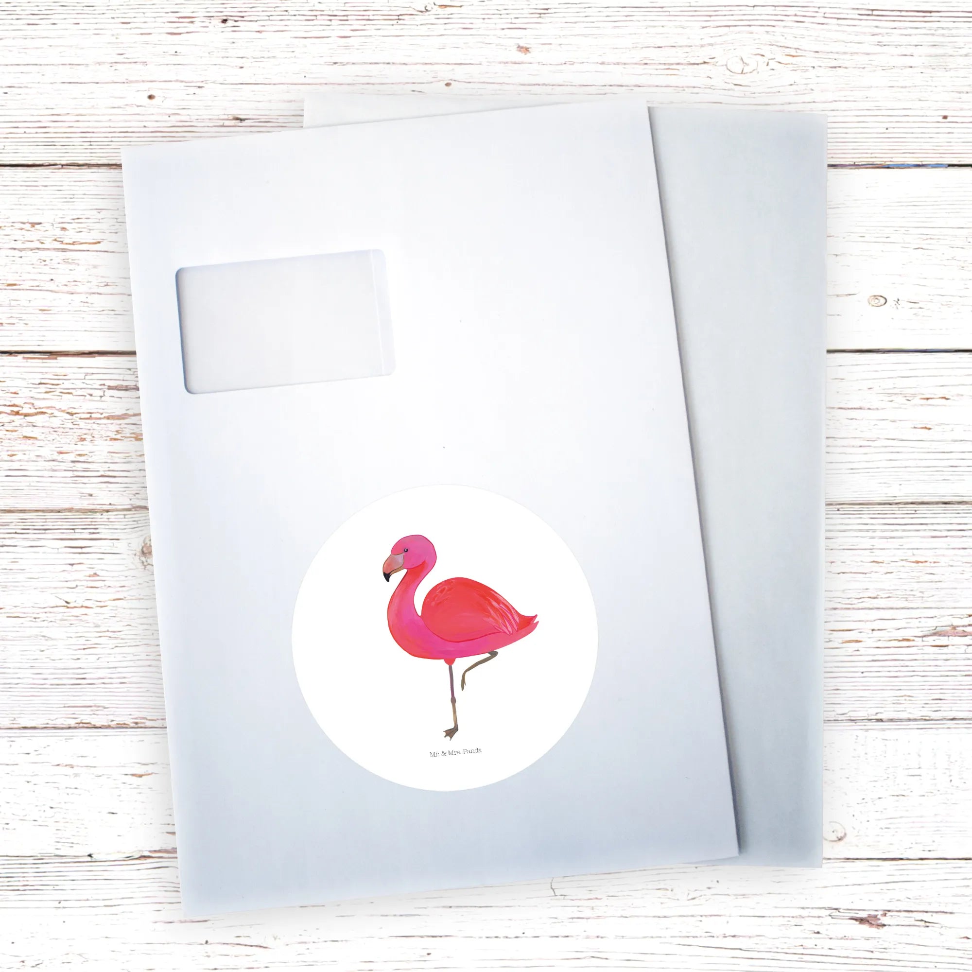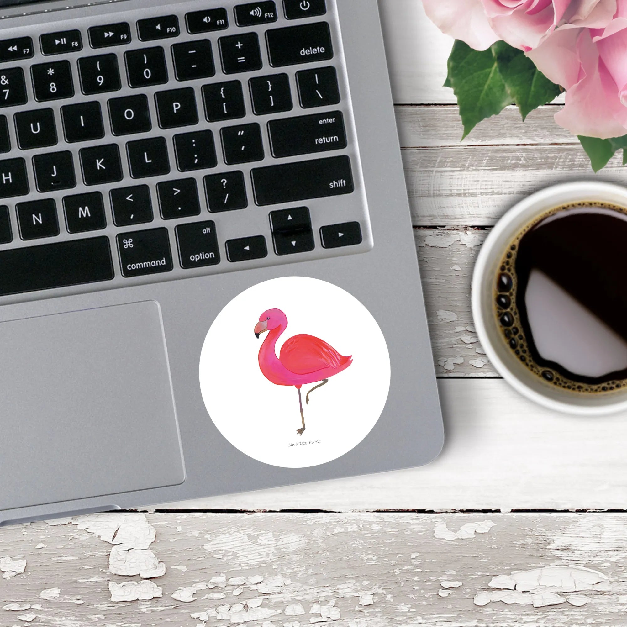 80mm okrągła naklejka Flamingo Klasyczny - 80mm Rund Aufkleber - z napisem - biały