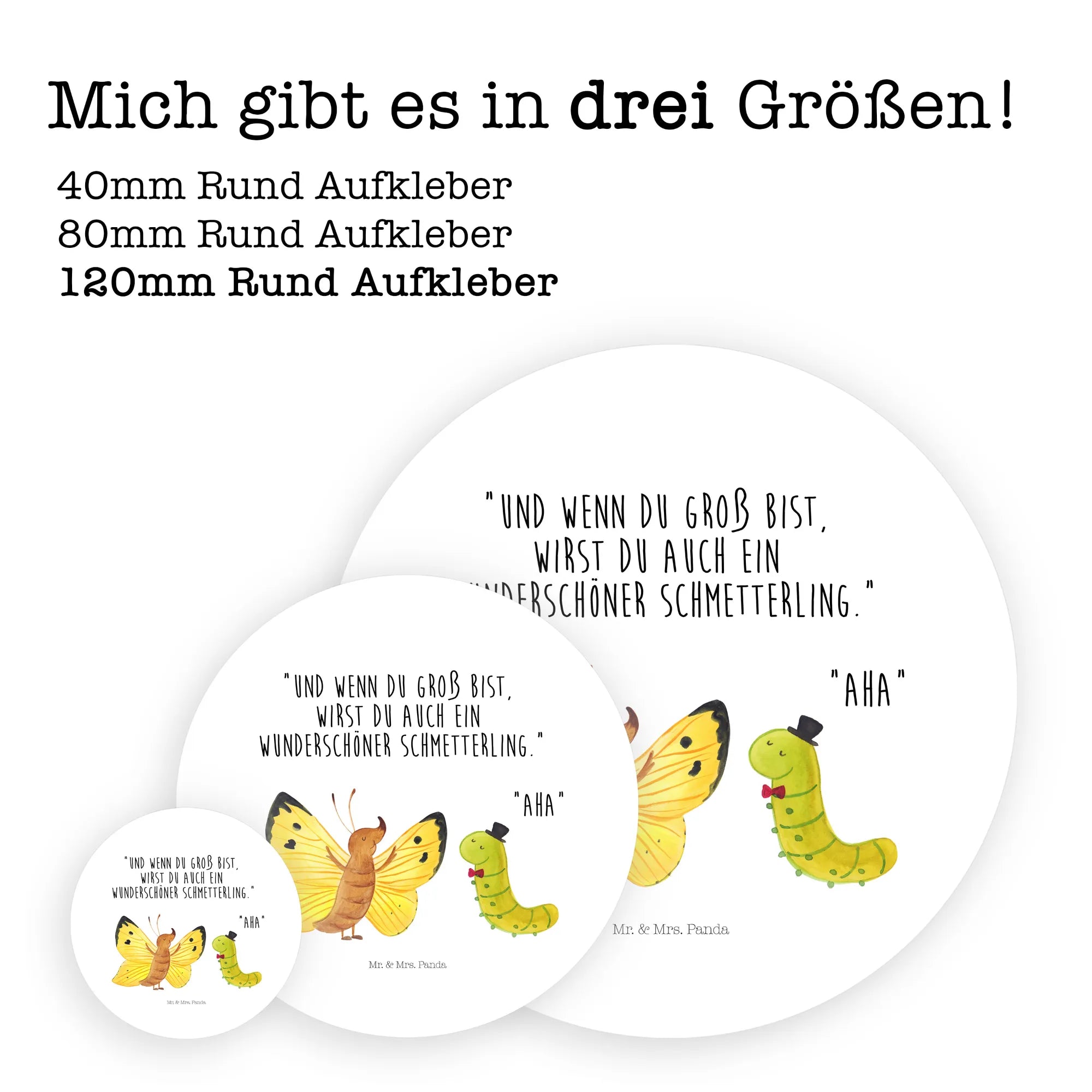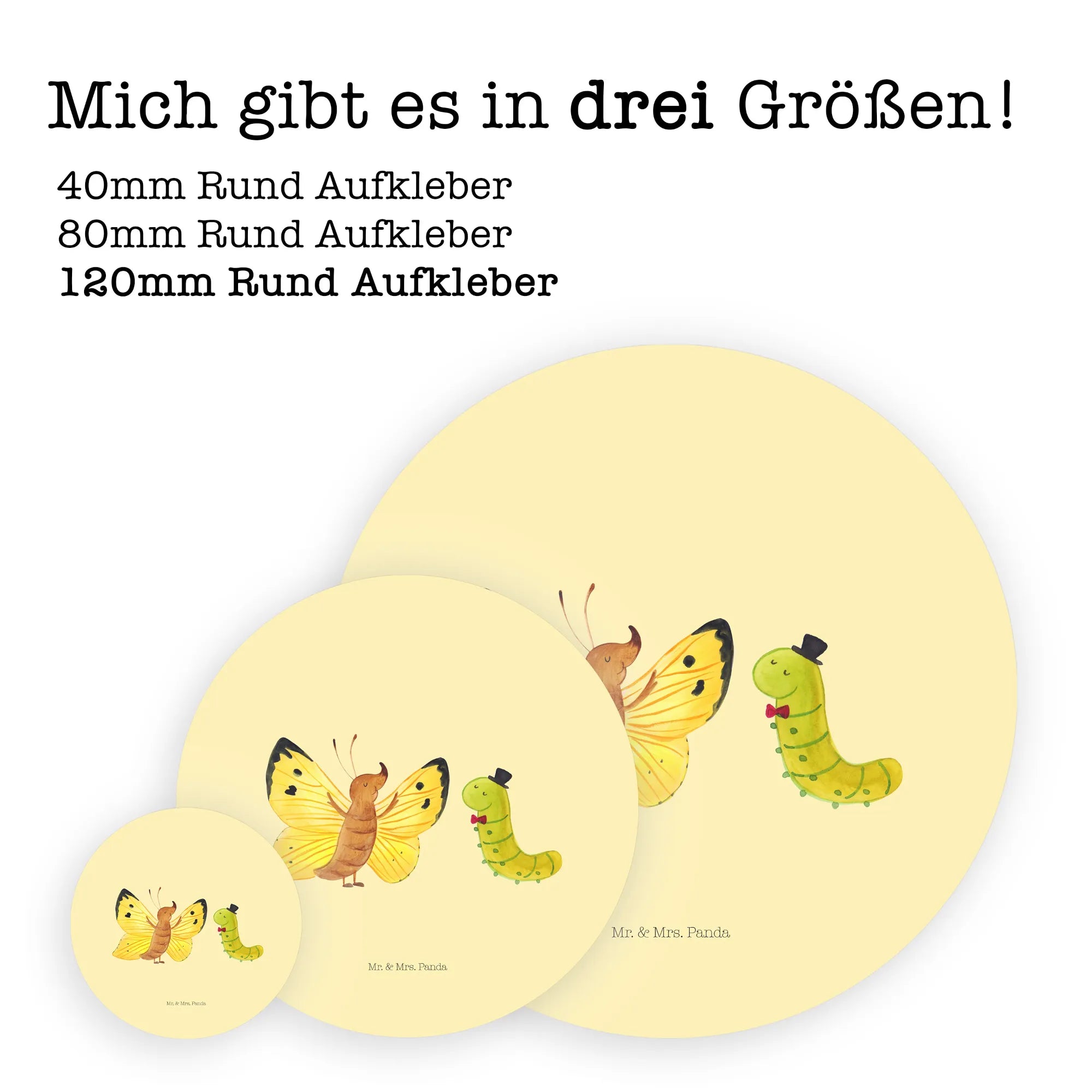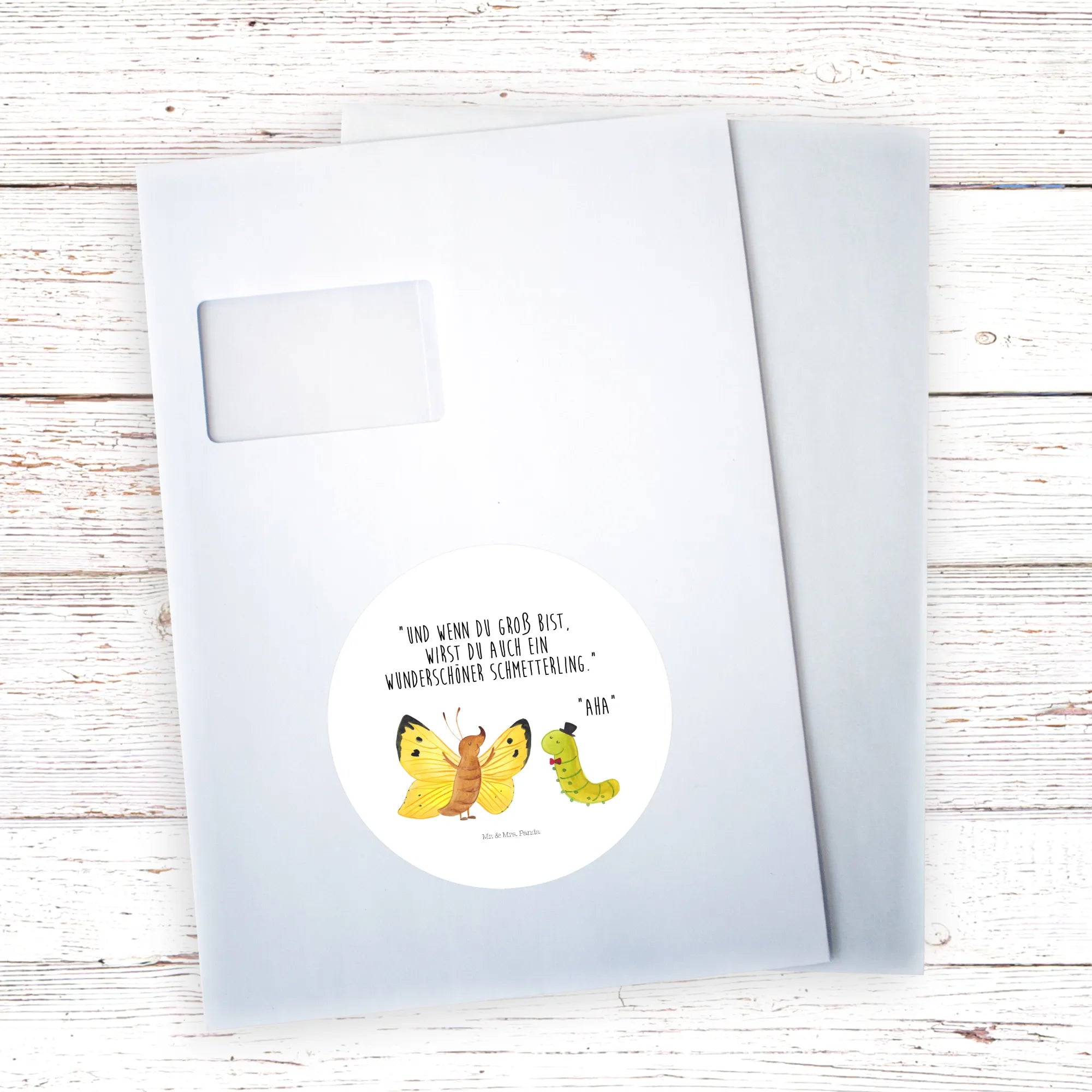 80mm okrągła naklejka gąsienica motyl - 80mm Rund Aufkleber - z napisem - biały