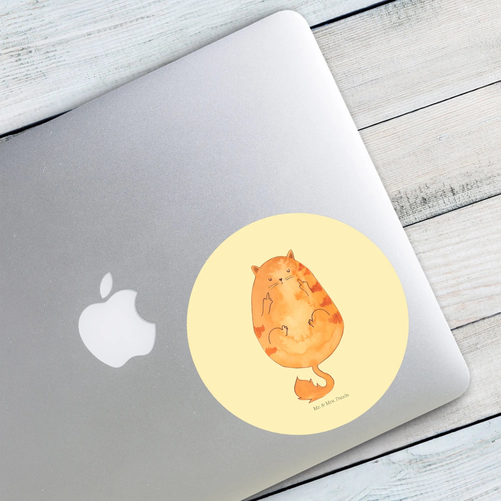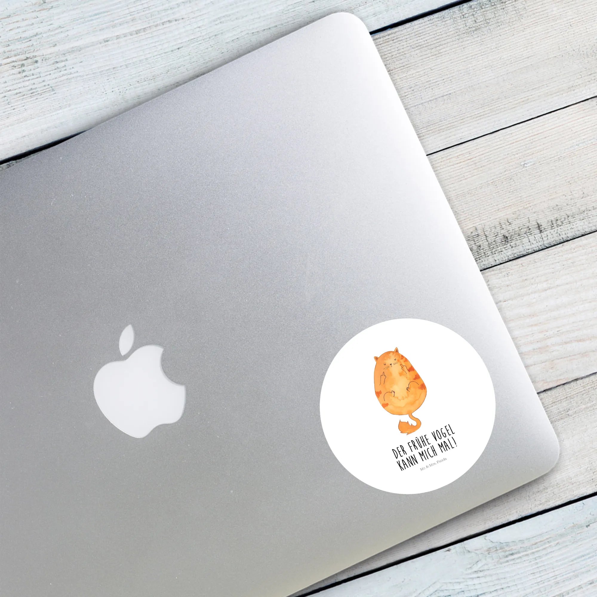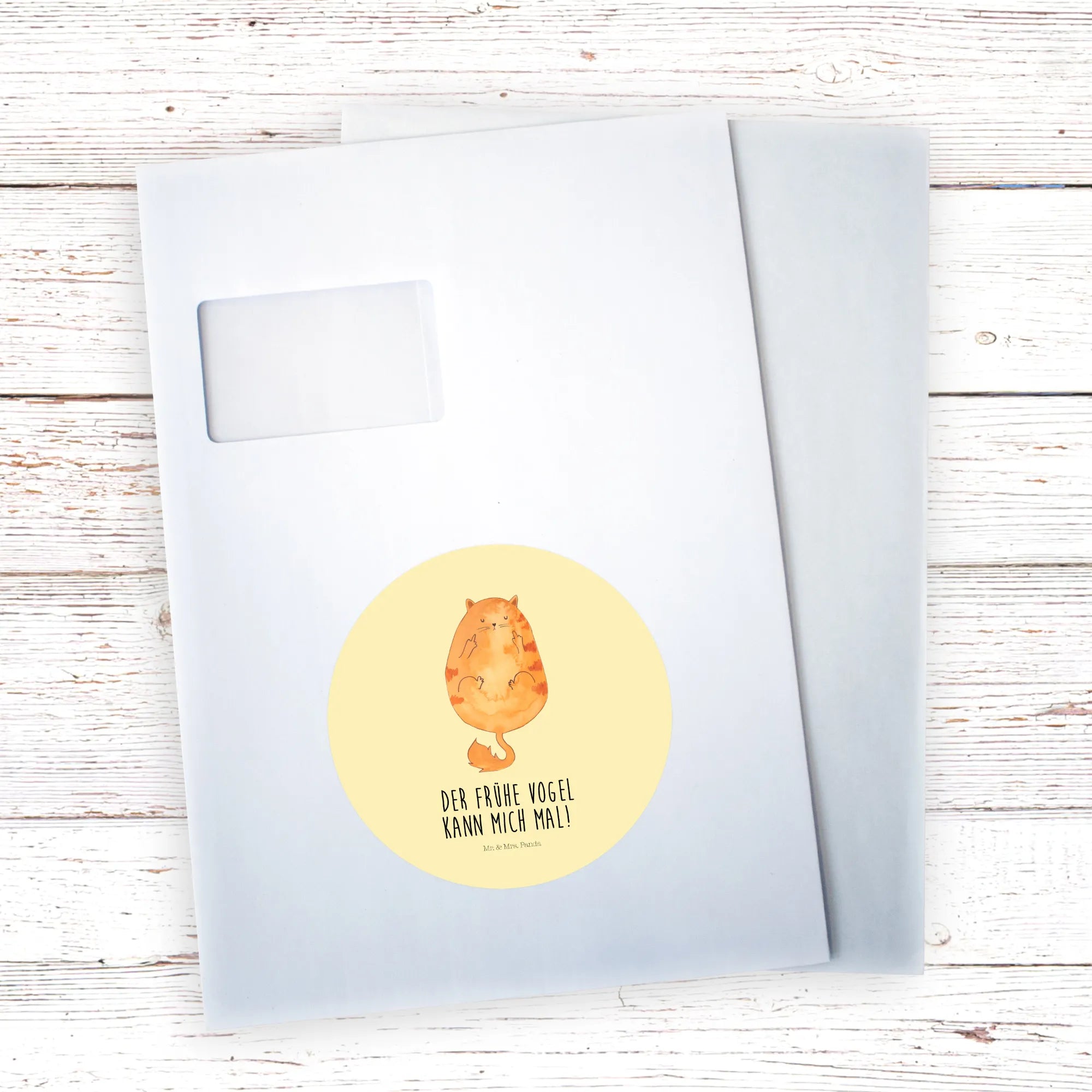 80mm okrągła naklejka Kot ranny ptaszek - 80mm Rund Aufkleber - z napisem - biały