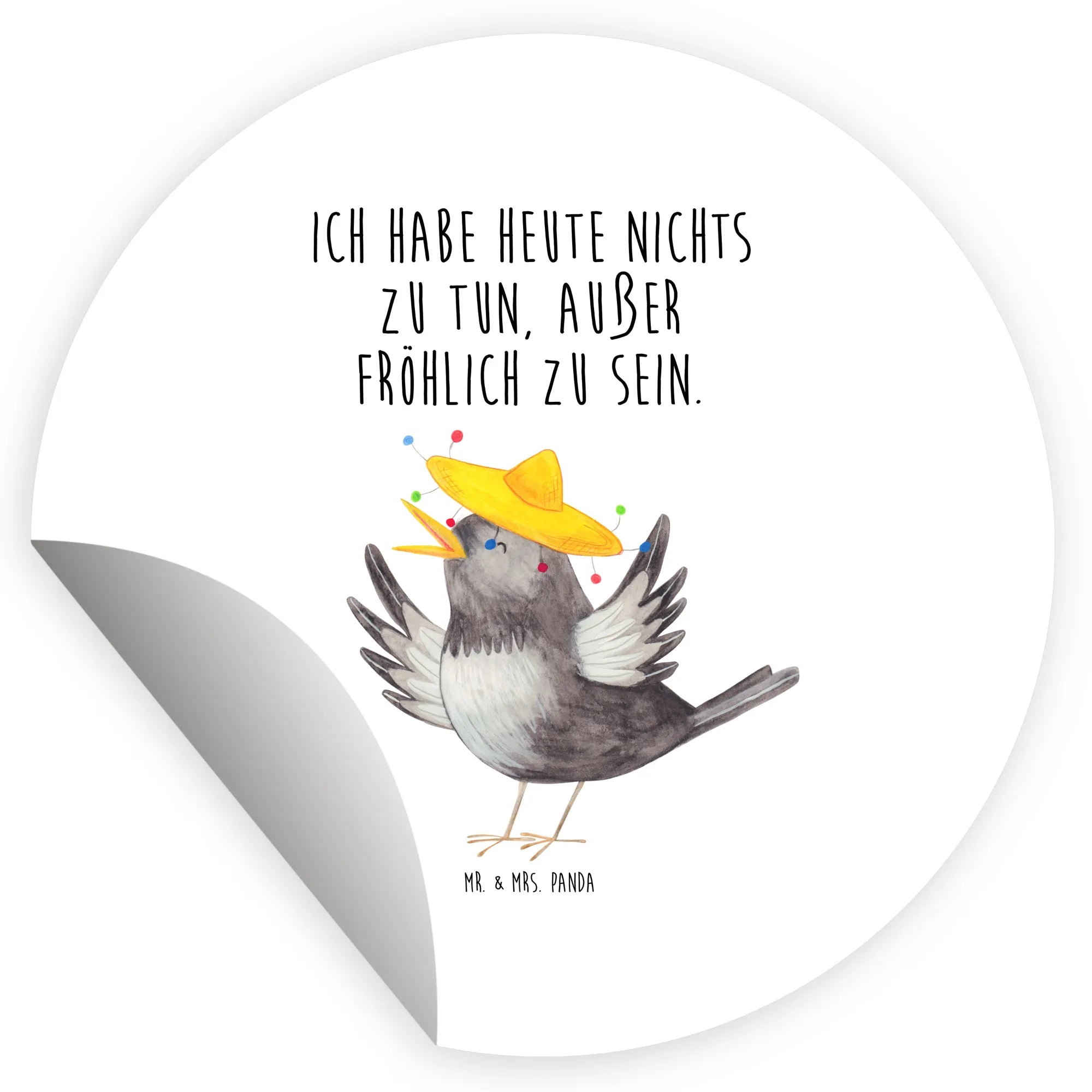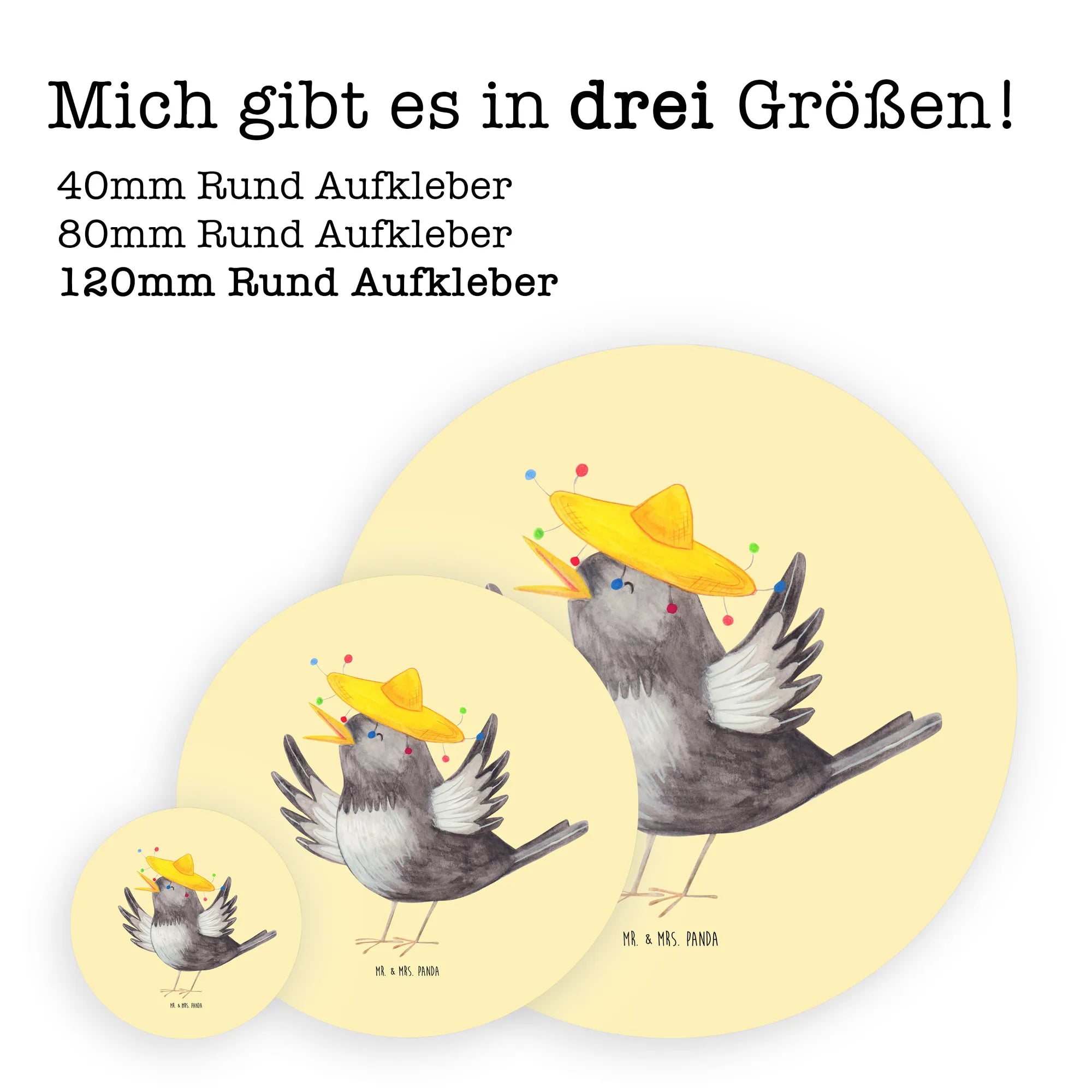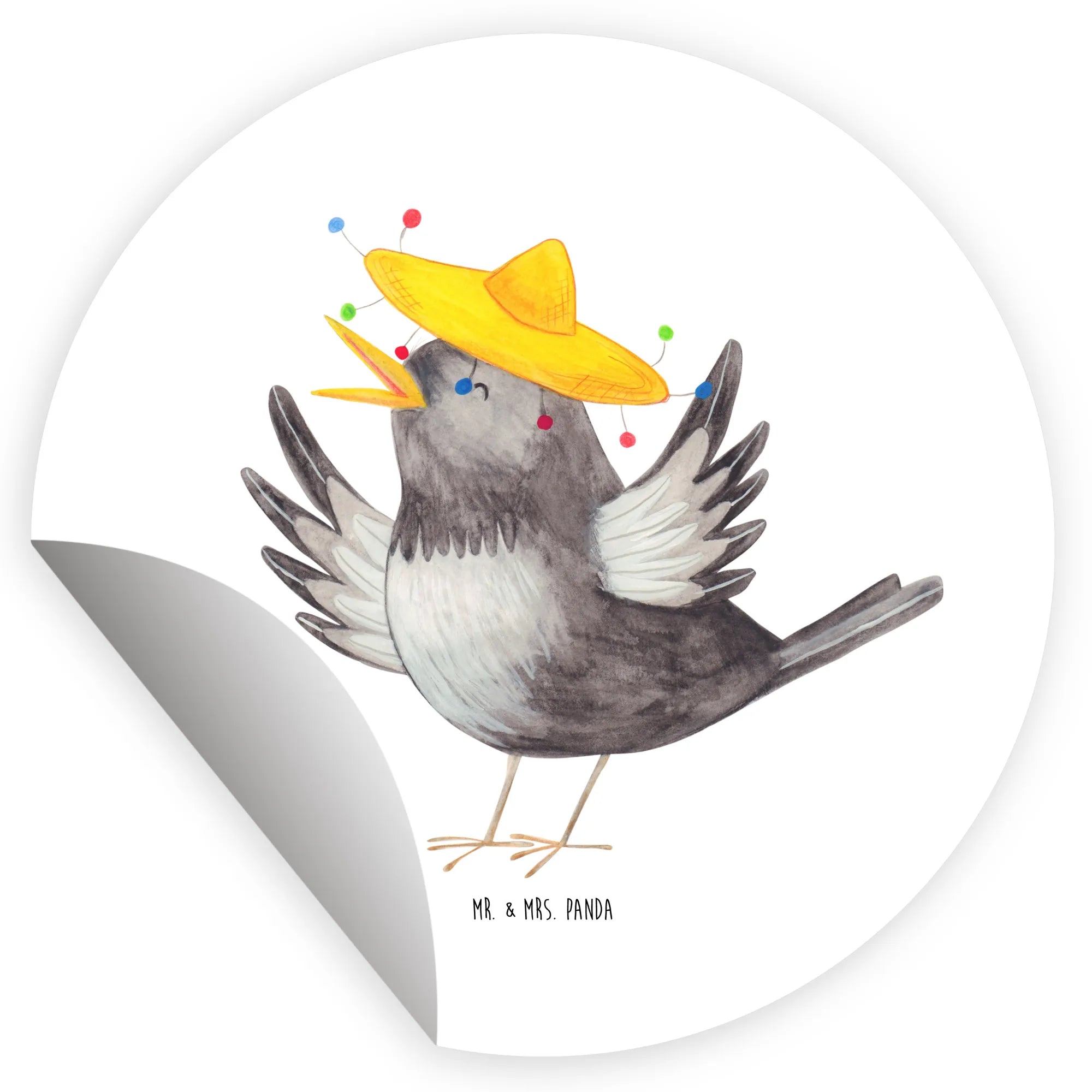 80mm okrągła naklejka kruk Sombrero - 80mm Rund Aufkleber - z napisem - biały