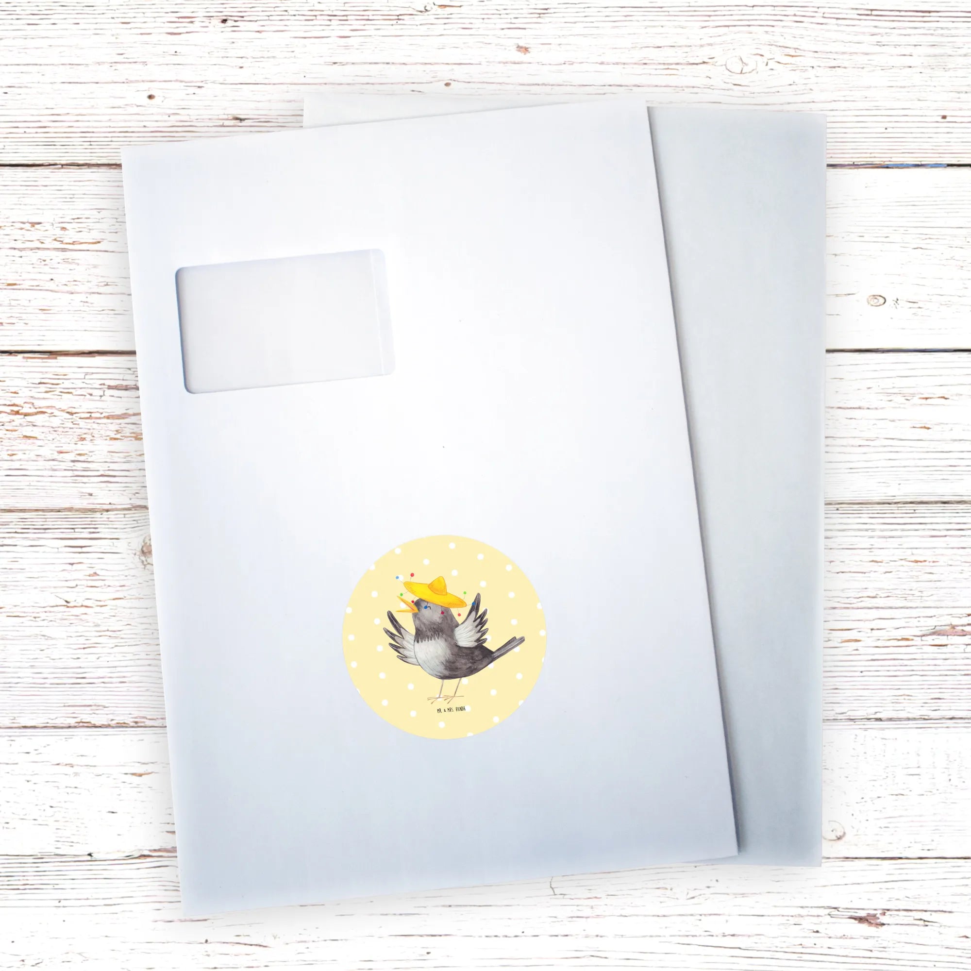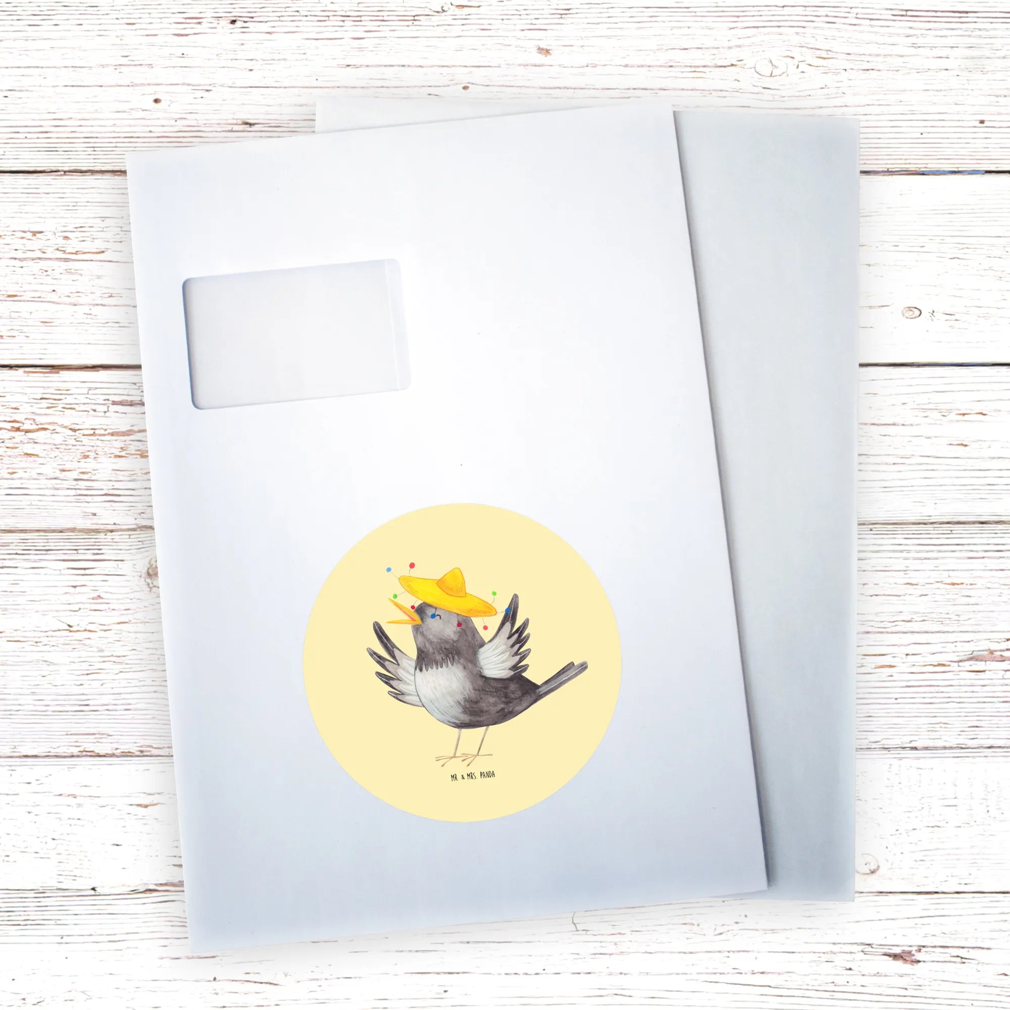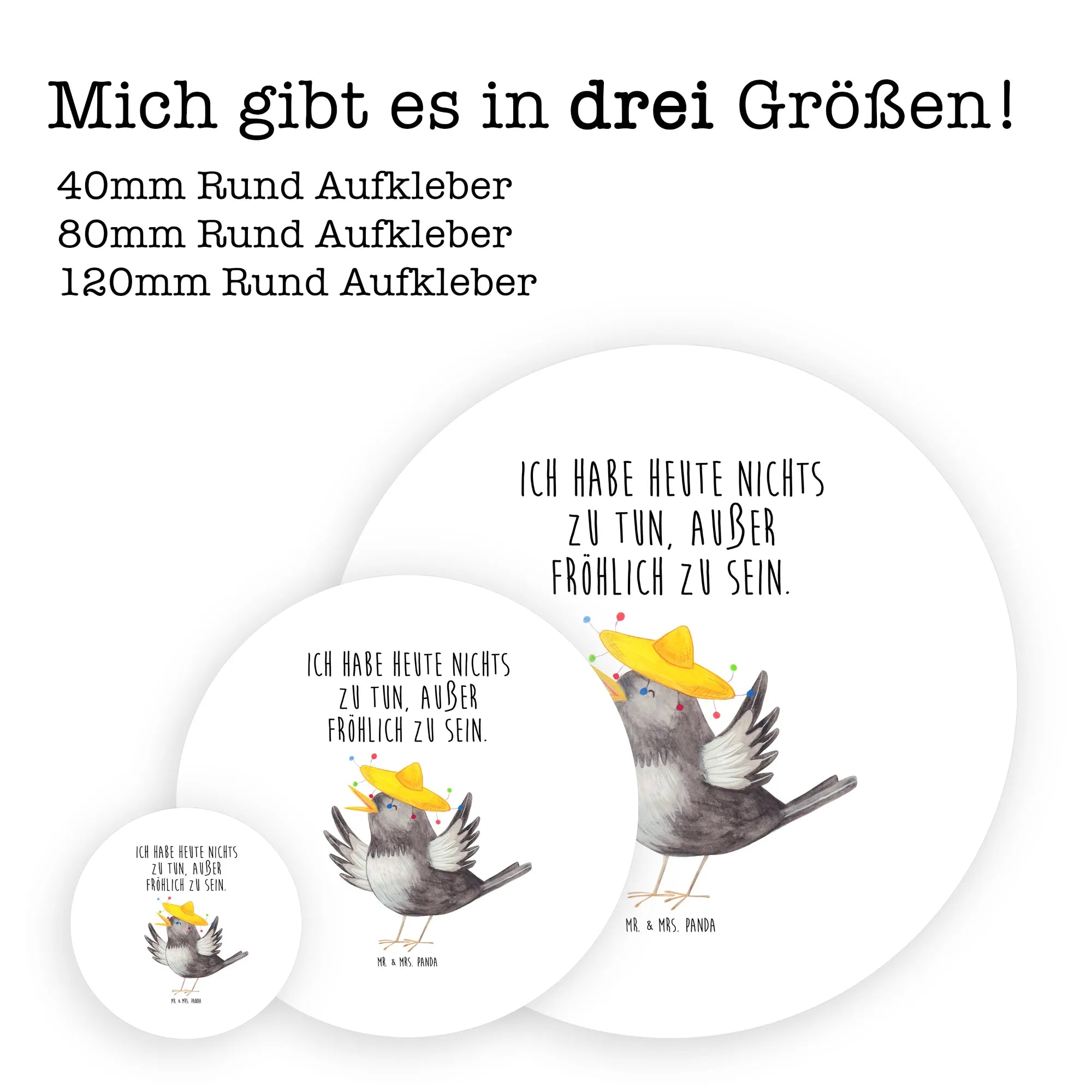 80mm okrągła naklejka kruk Sombrero - 80mm Rund Aufkleber - z napisem - biały