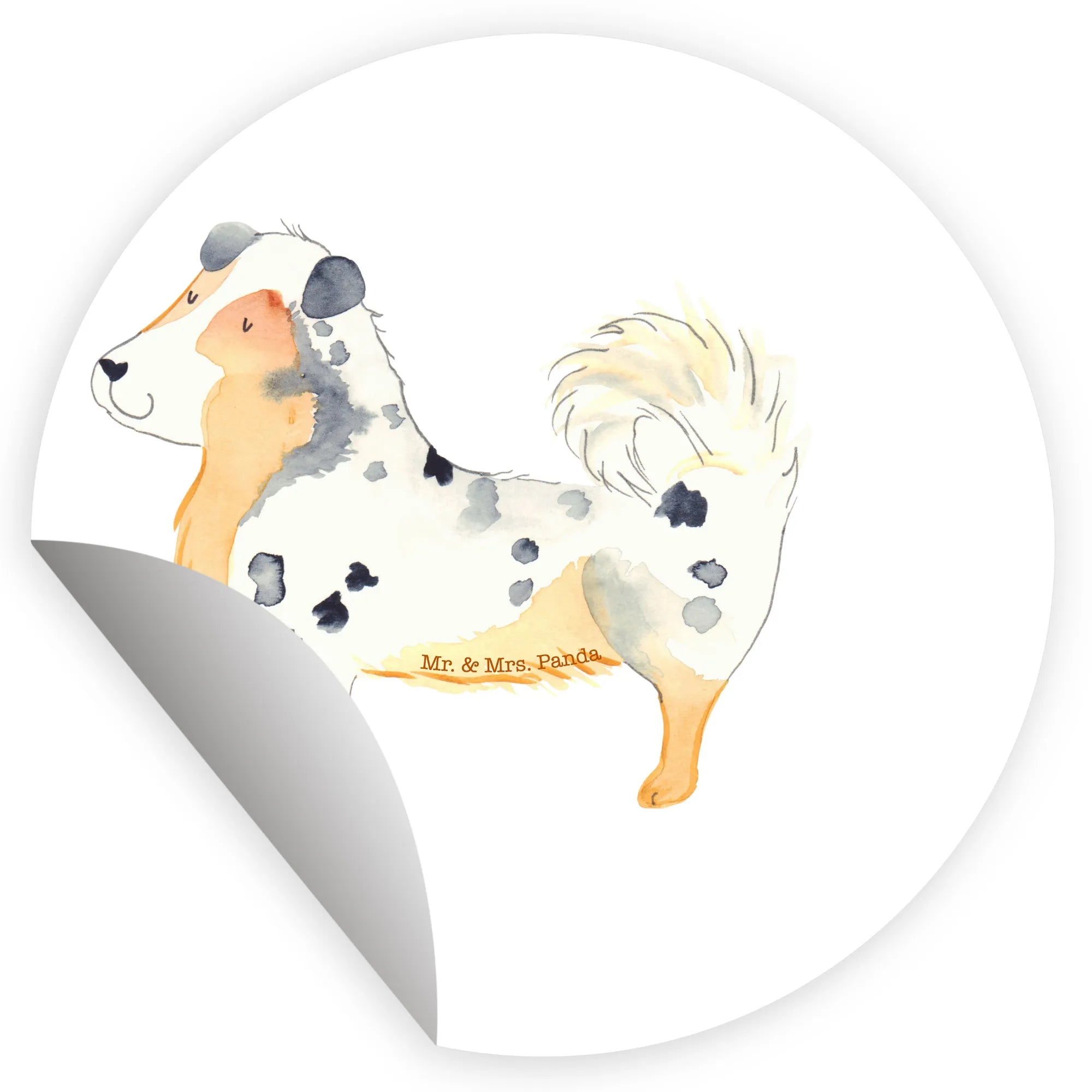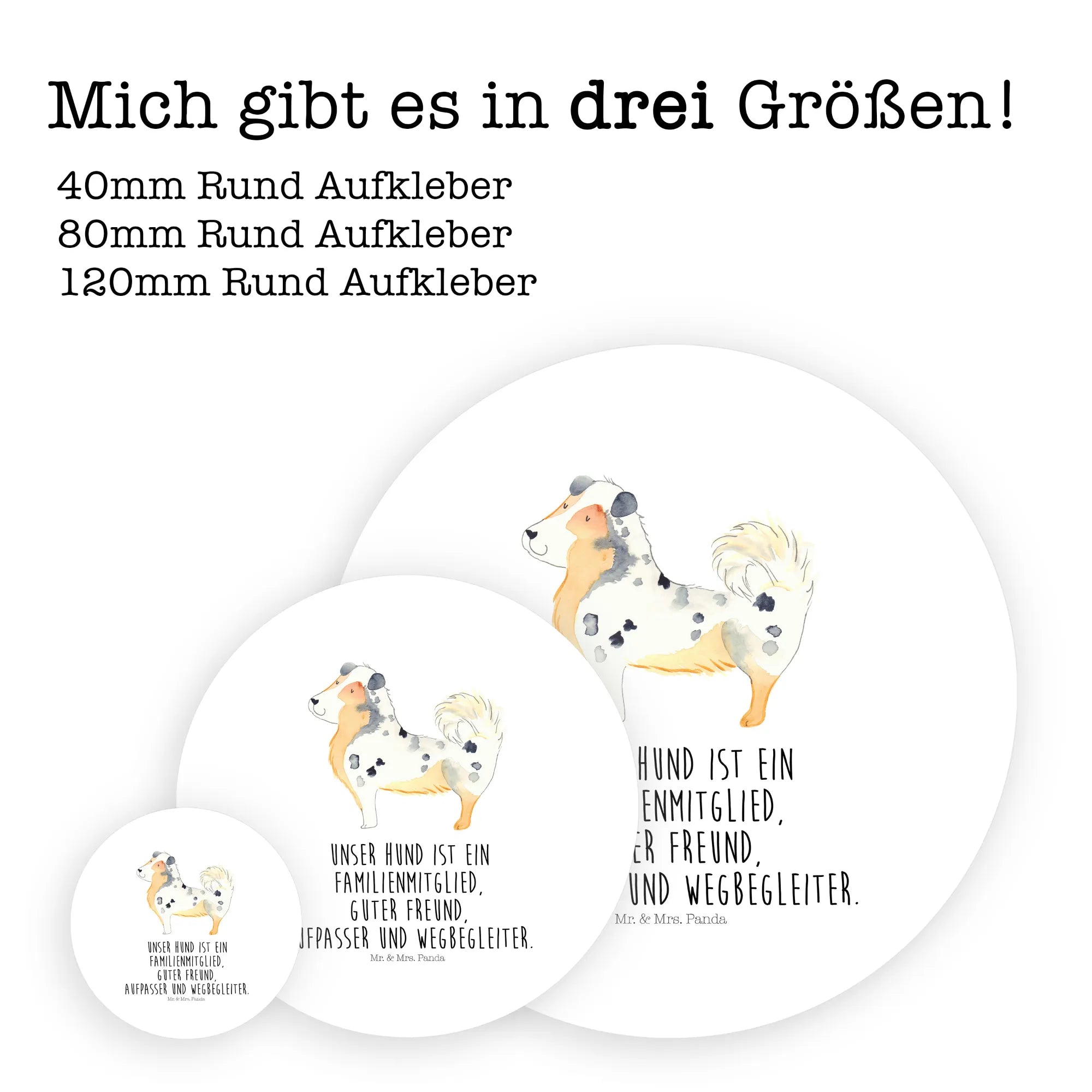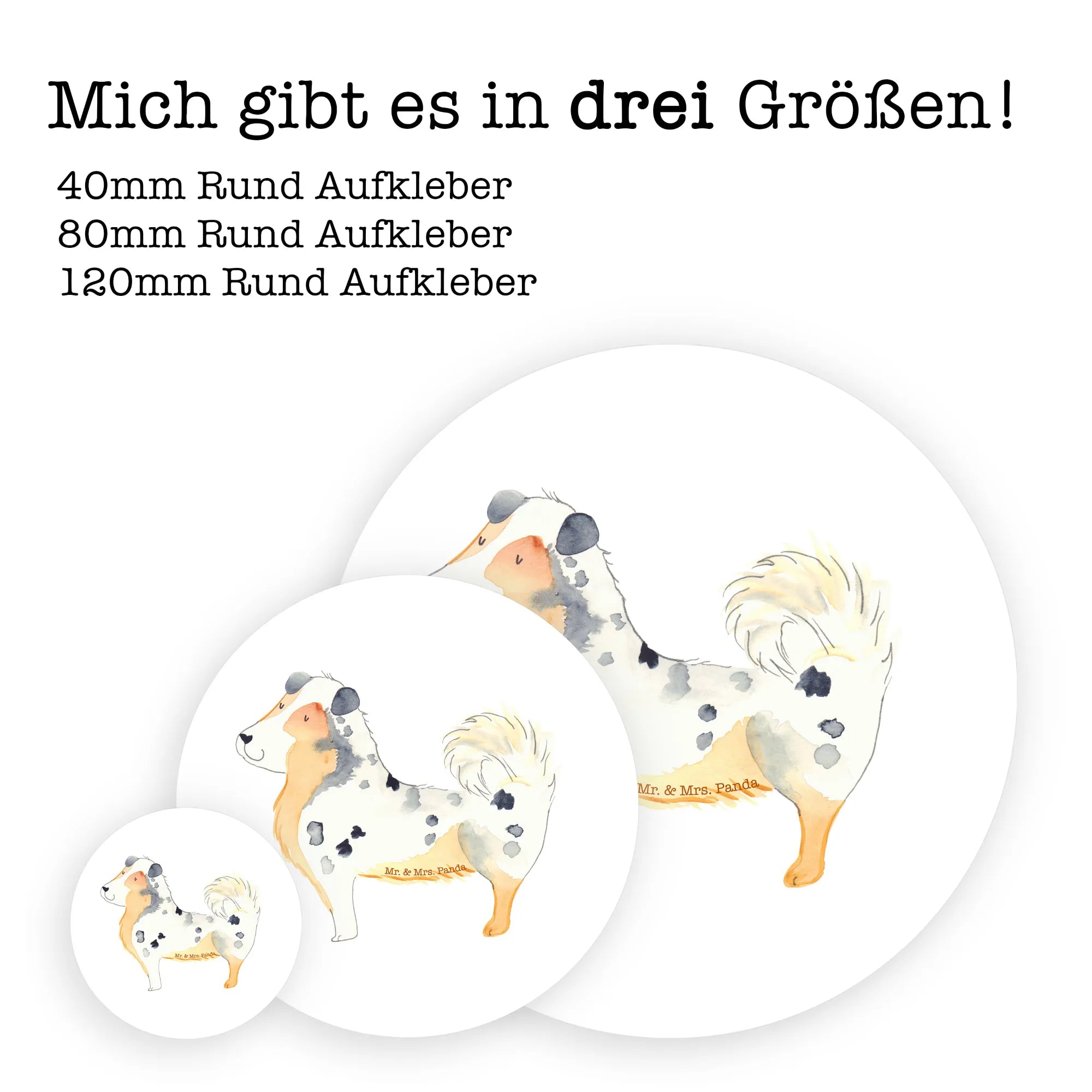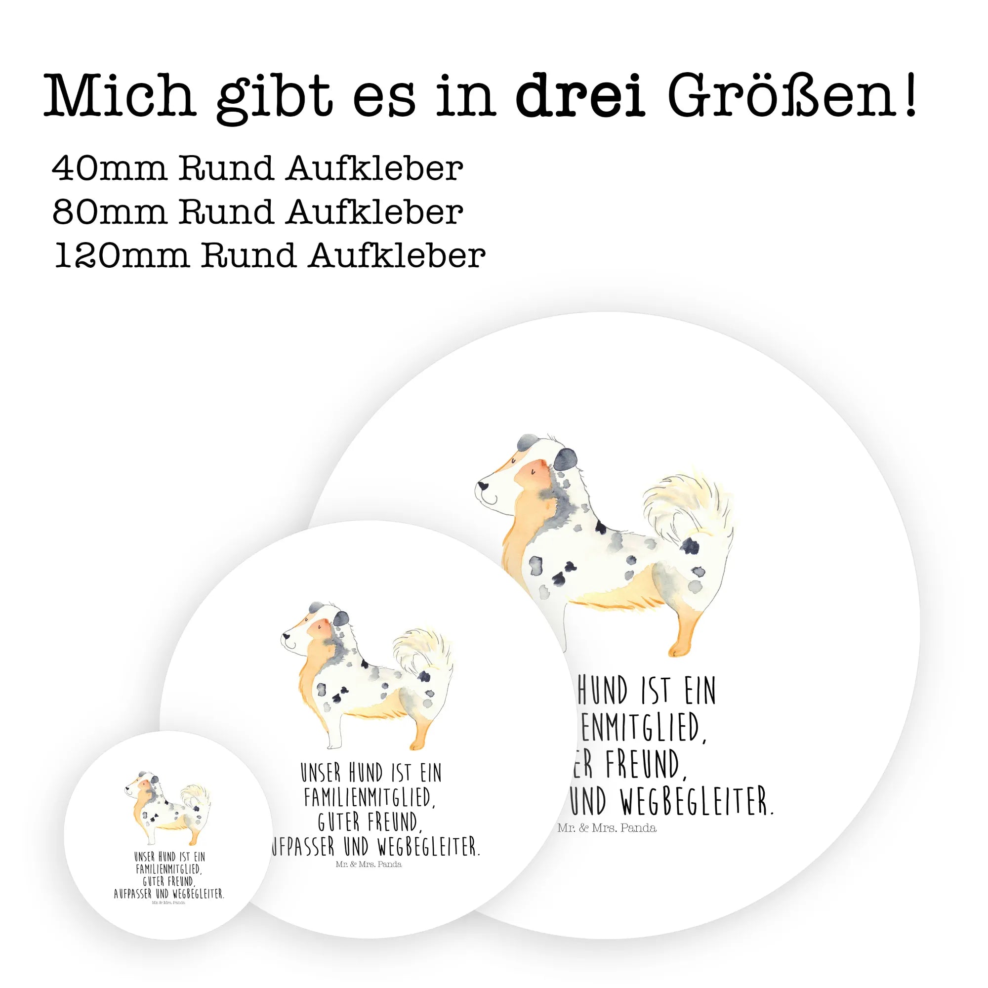 80mm okrągła naklejka Pies Owczarek australijski - 80mm Rund Aufkleber - z napisem - biały