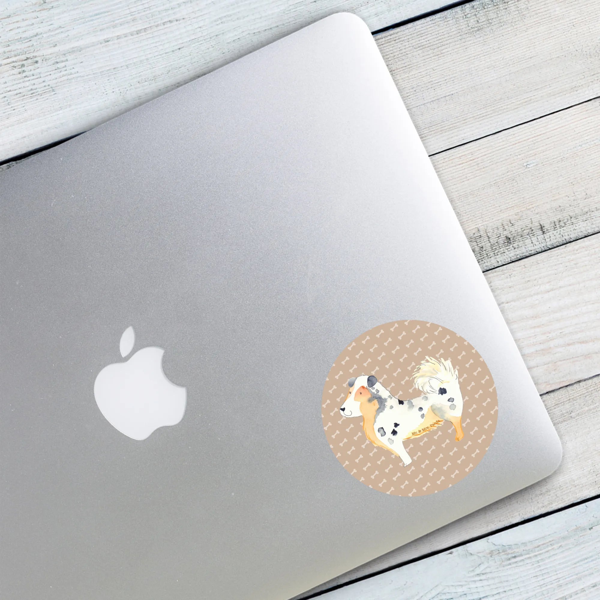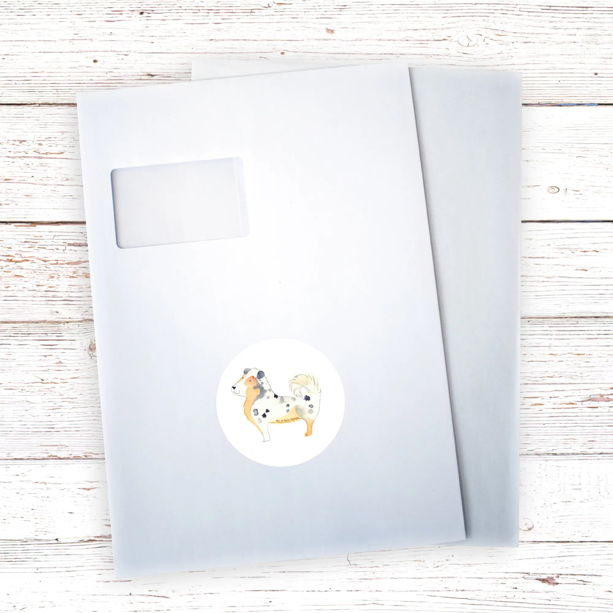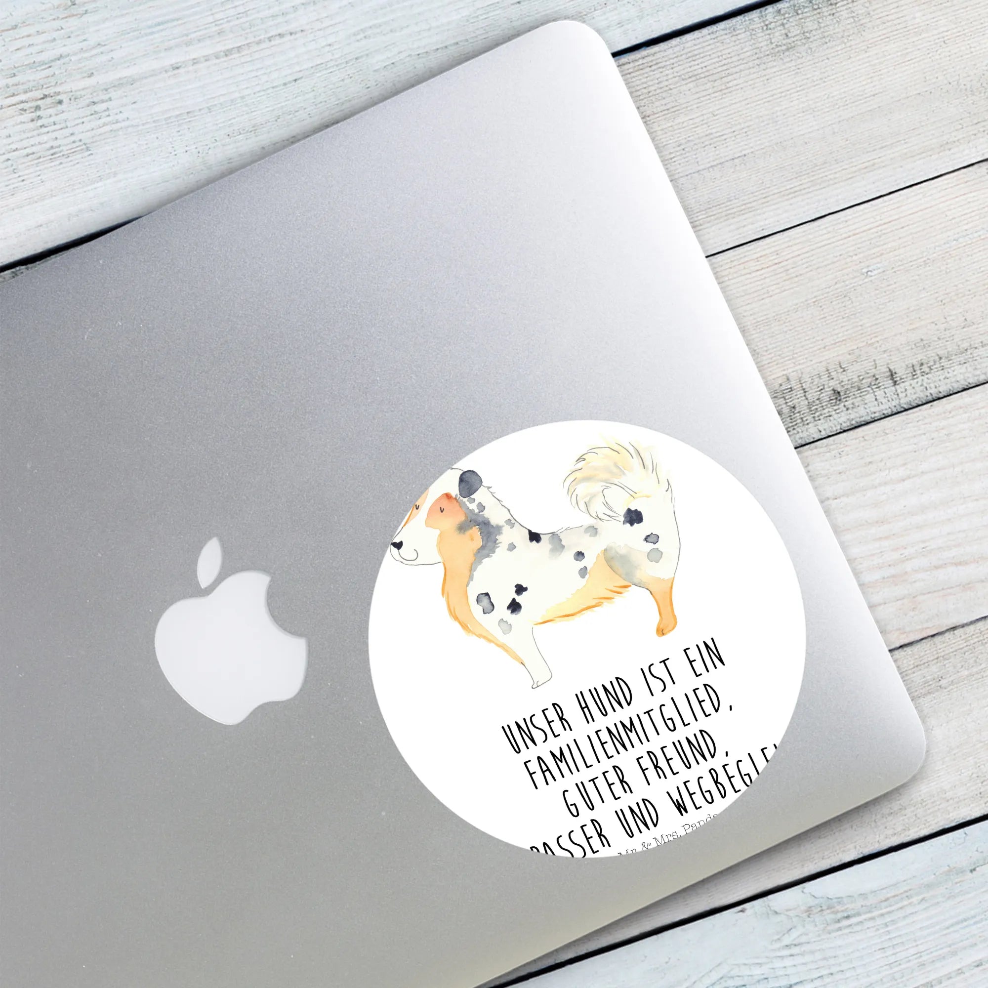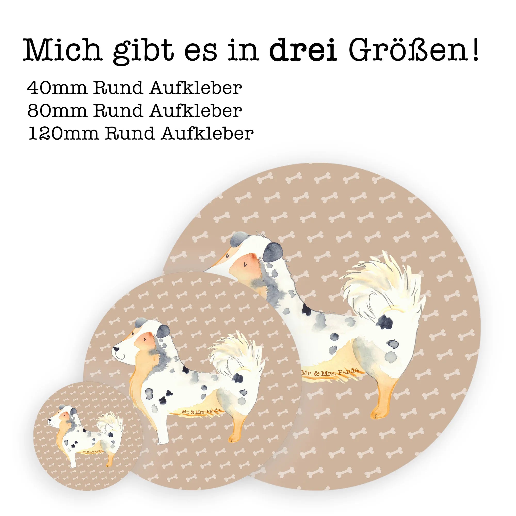 80mm okrągła naklejka Pies Owczarek australijski - 80mm Rund Aufkleber - z napisem - biały