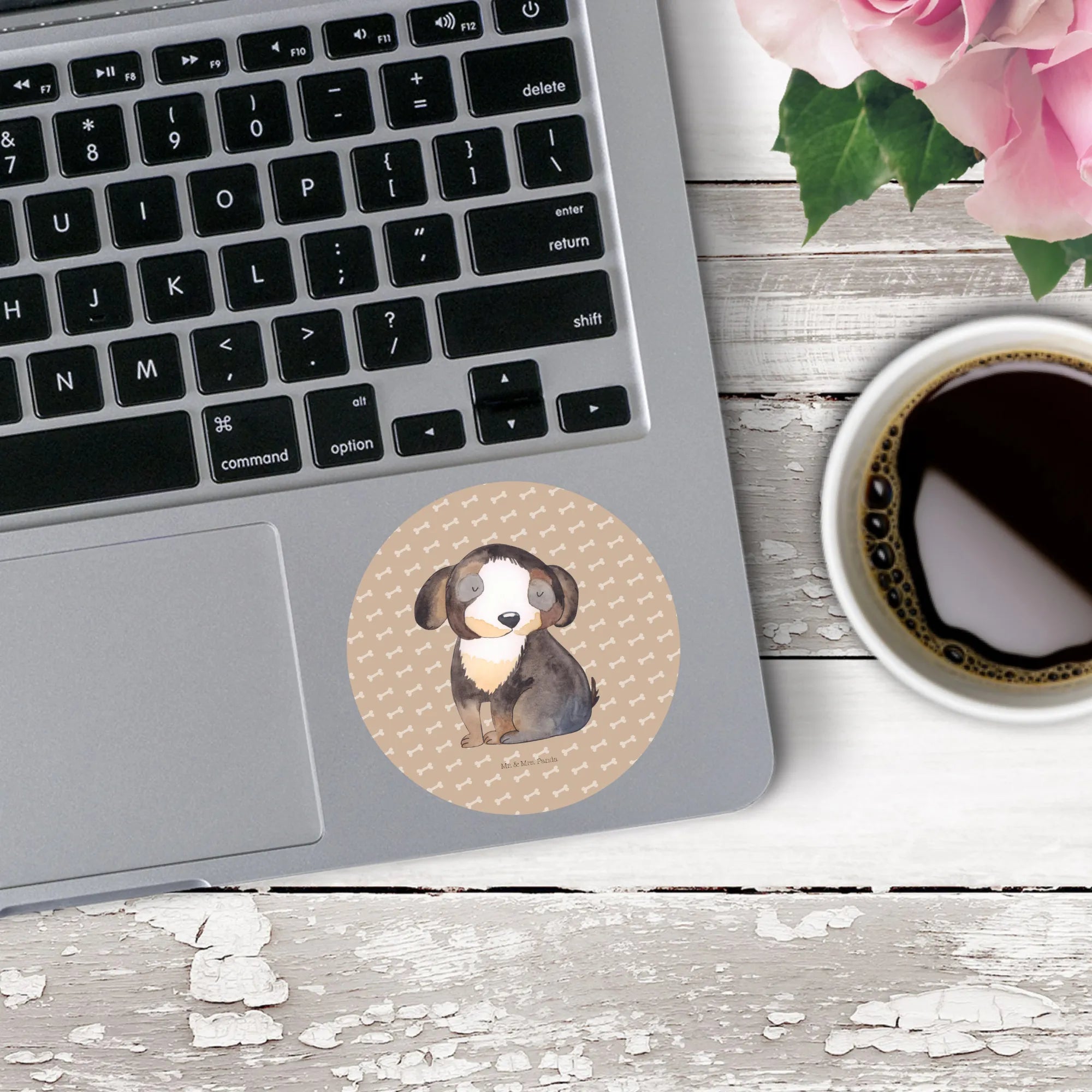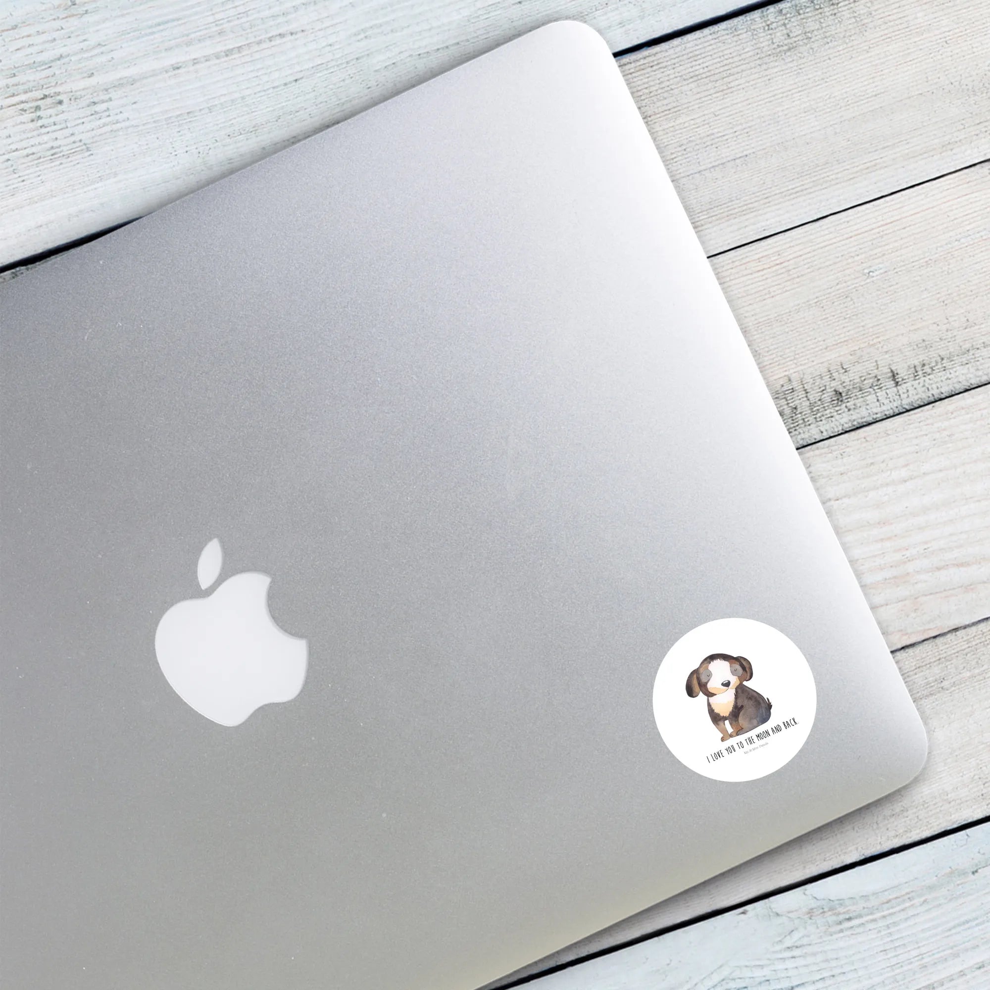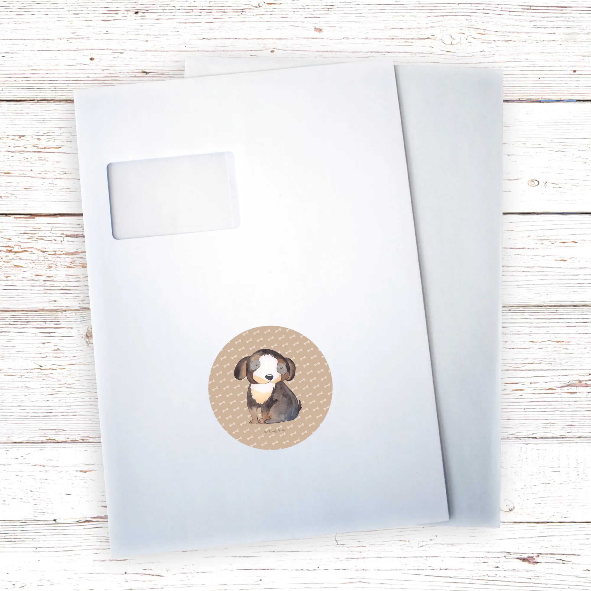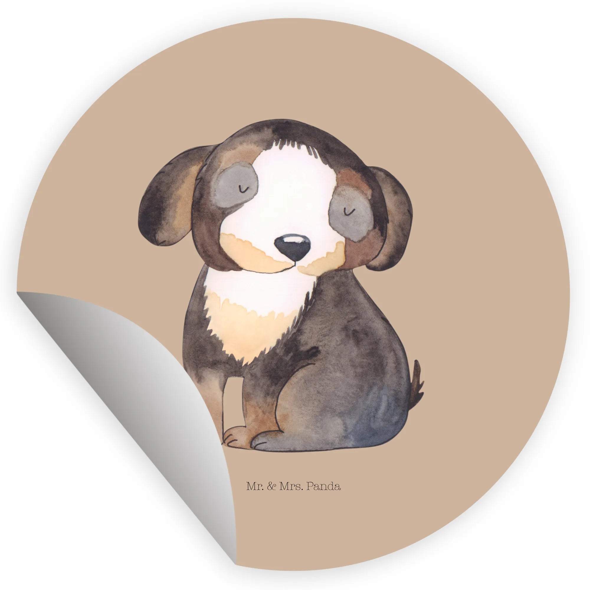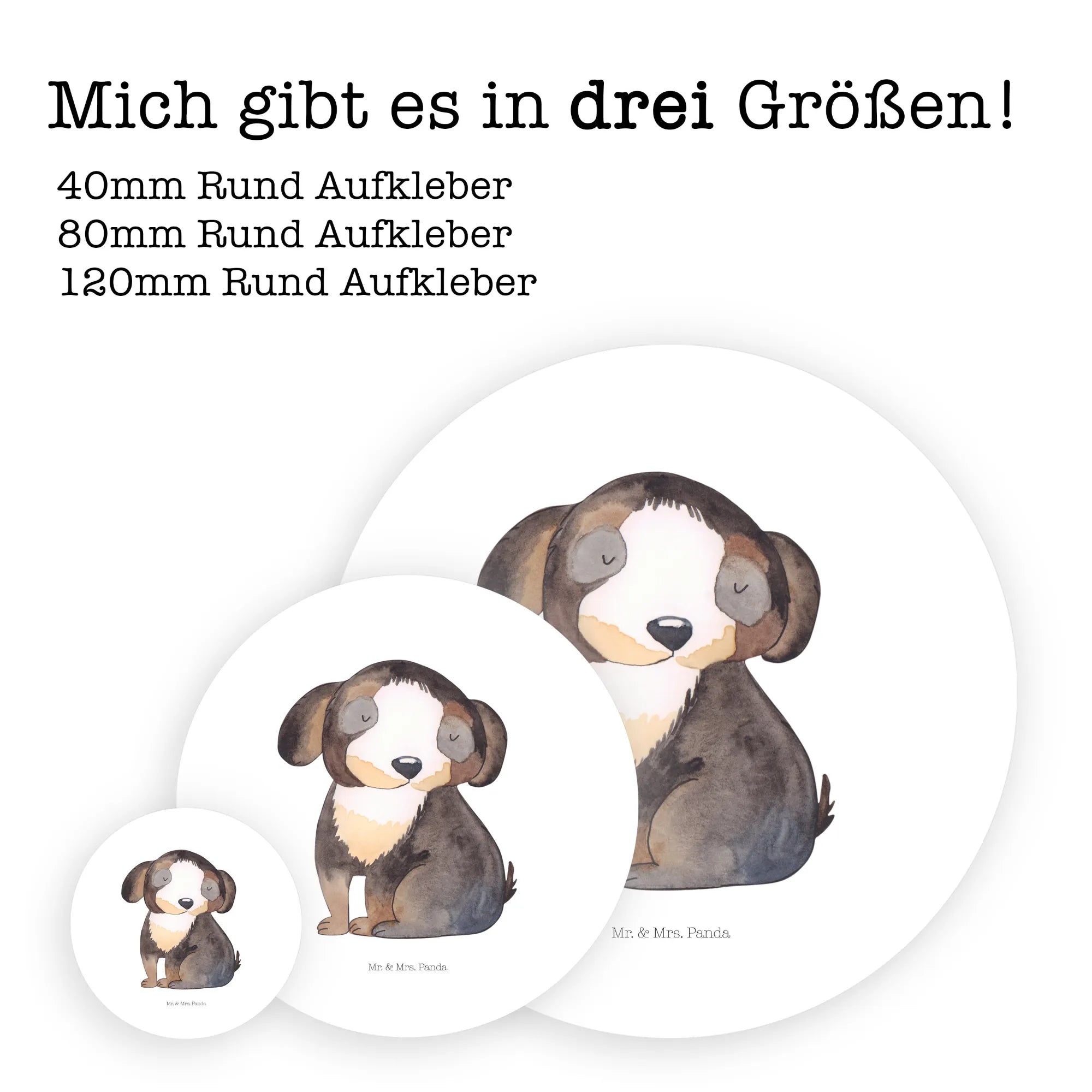 80mm okrągła naklejka pies relaks - 80mm Rund Aufkleber - z napisem - biały