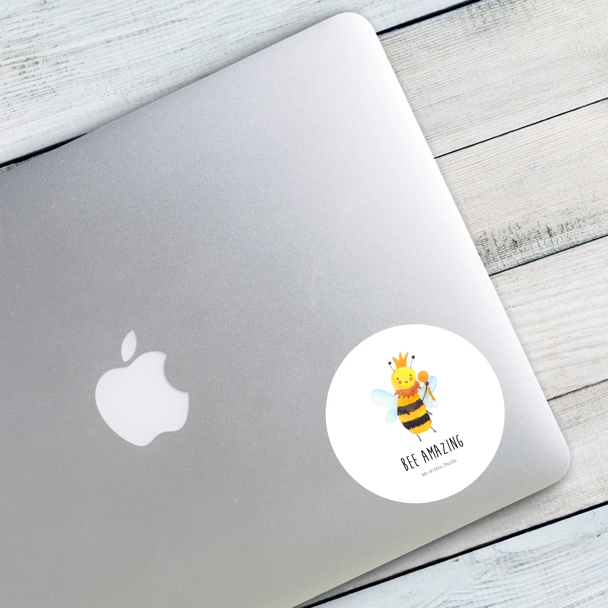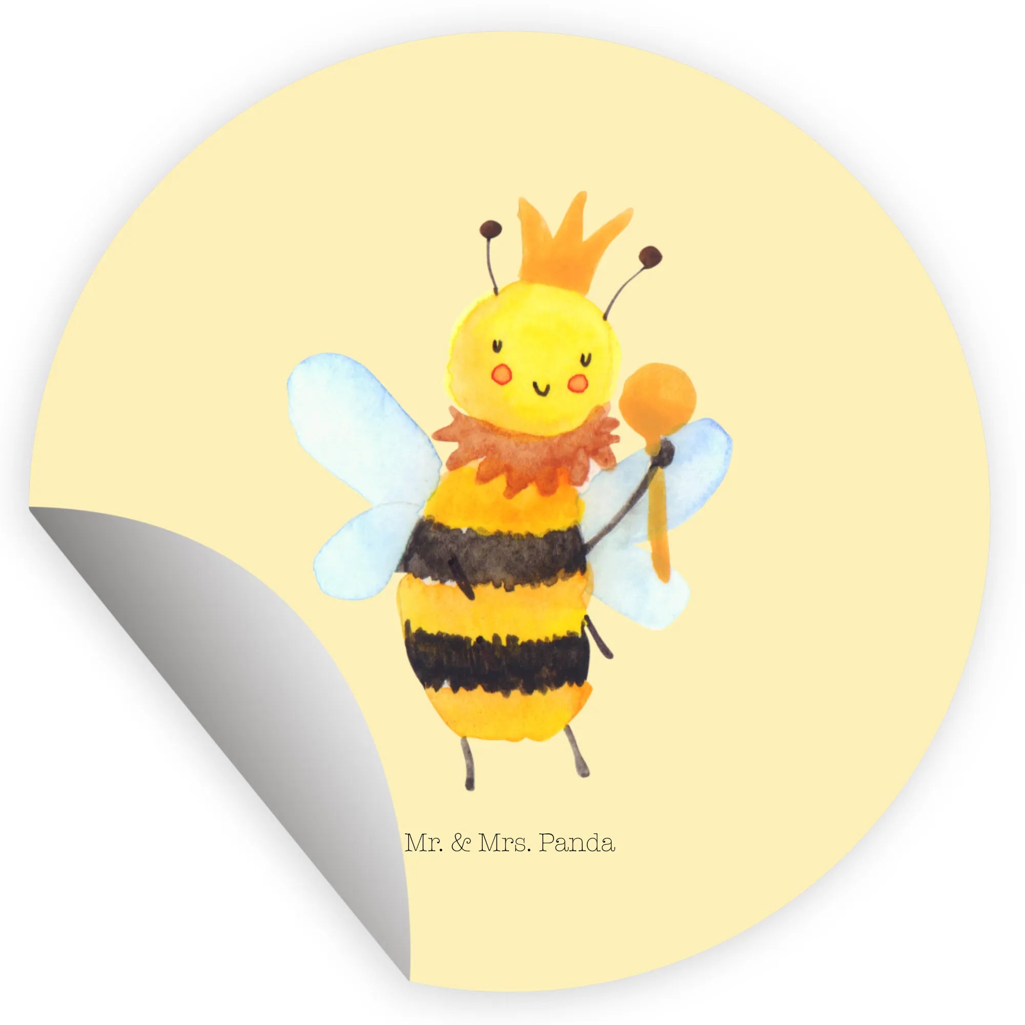 80mm okrągła naklejka pszczoła król - 80mm Rund Aufkleber - z napisem - biały