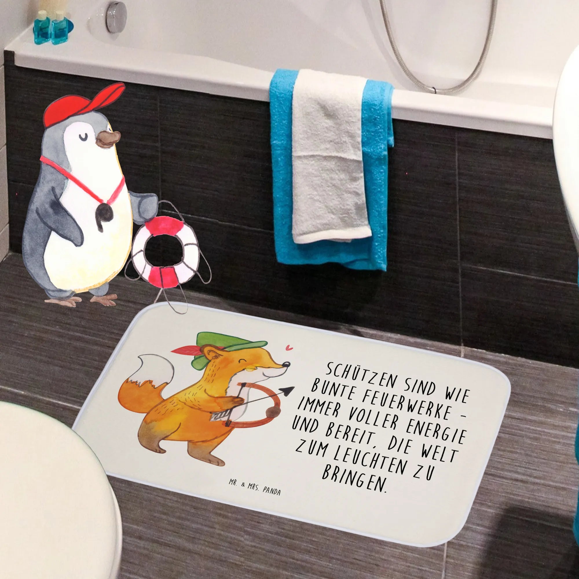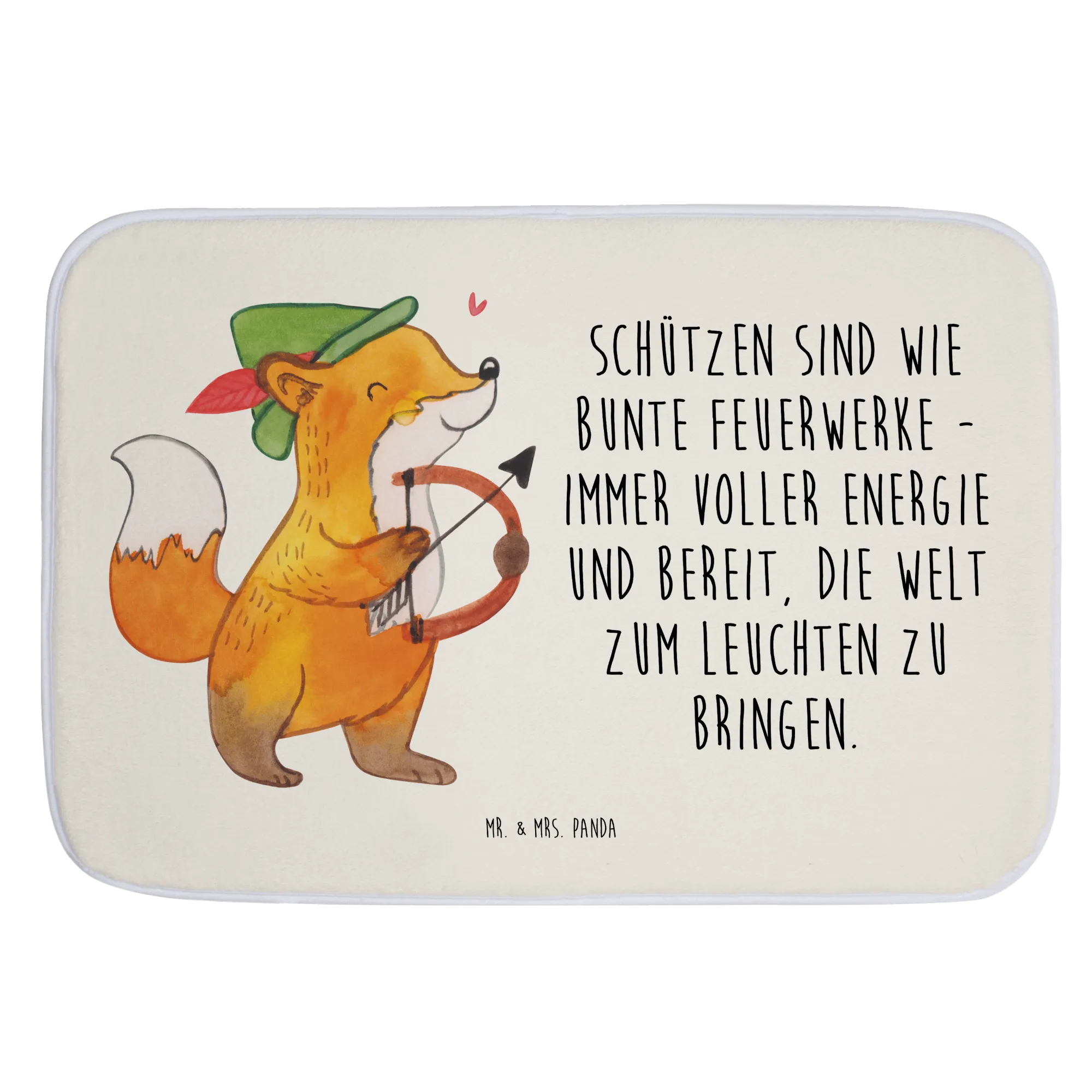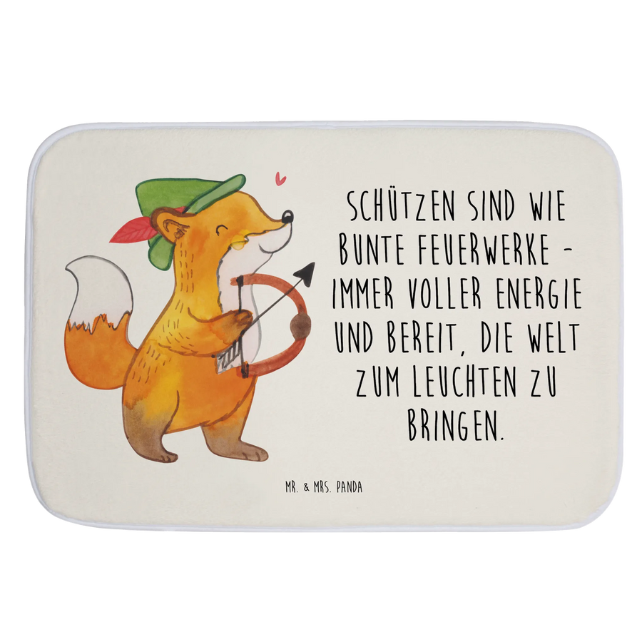 Unser bezaubernder Badvorleger mit dem einzigartigen Motiv des Schützen ist das perfekte Geschenk für alle, die sich für Astrologie und Sternzeichen begeistern! Handgezeichnet von Mrs. Panda bringt dieser Badematte die lebendige Energie des Schützen in dein Badezimmer. Mit dem charmanten Fuchs, der bereitsteht, seinen Bogen zu spannen, wird jeder Schritt auf diesem flauschigen Badteppich zum Erlebnis.