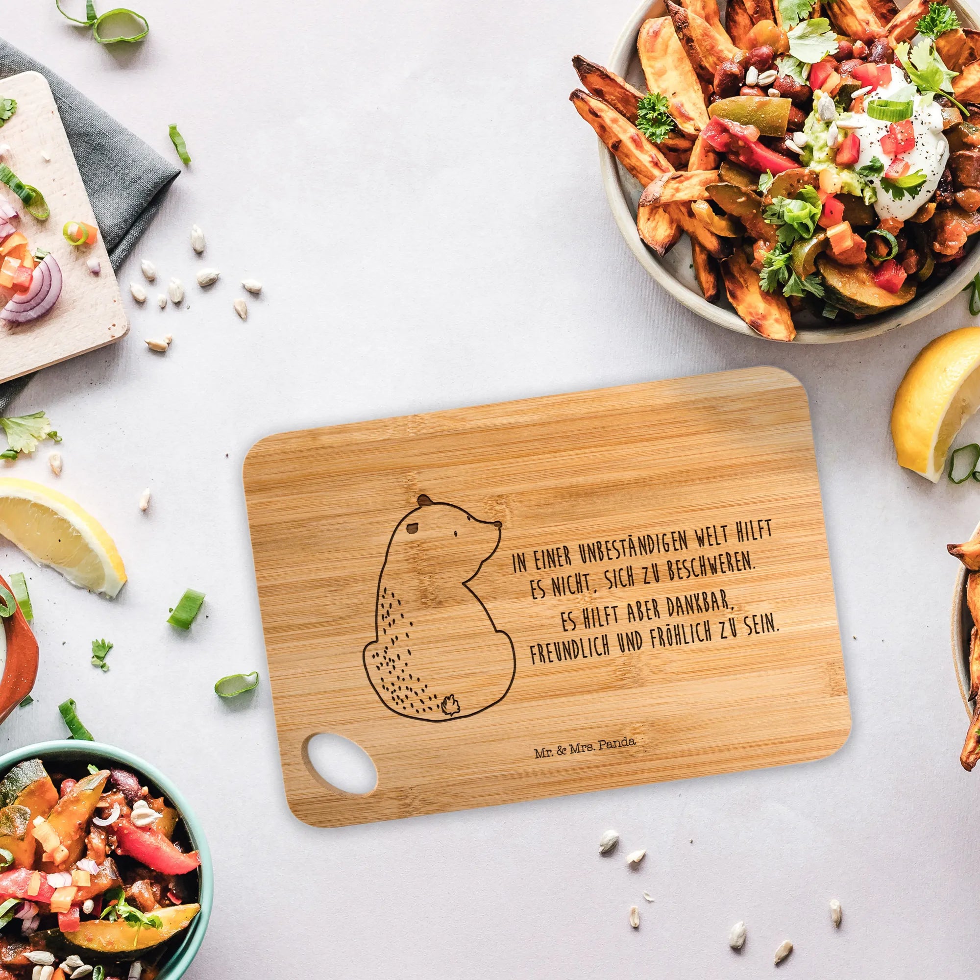 Dieses liebevoll designte Frühstücksbrett aus der Bär-Kollektion von Mr. & Mrs. Panda vereint Funktion und Gefühl. Das süße Motiv „Bär Schulterblick“ und der lebensbejahende Spruch „In einer unbeständigen Welt hilft es nicht, sich zu beschweren. Es hilft aber dankbar, freundlich und fröhlich zu sein.“ sind sorgfältig lasergraviert und schenken Deinem Alltag einen freundlichen Akzent.