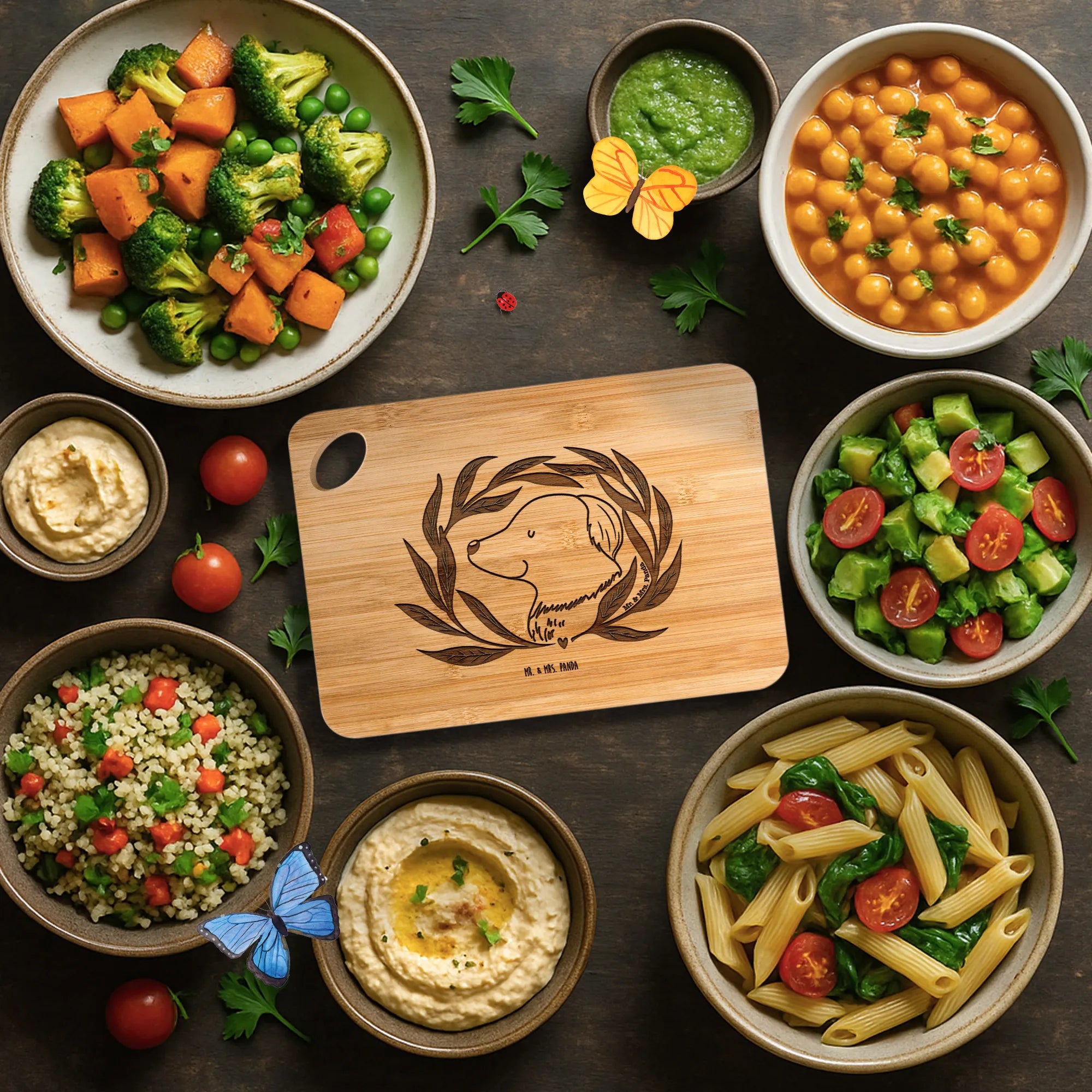 Bambus - deska do krojenia pies kwiaty - z napisem