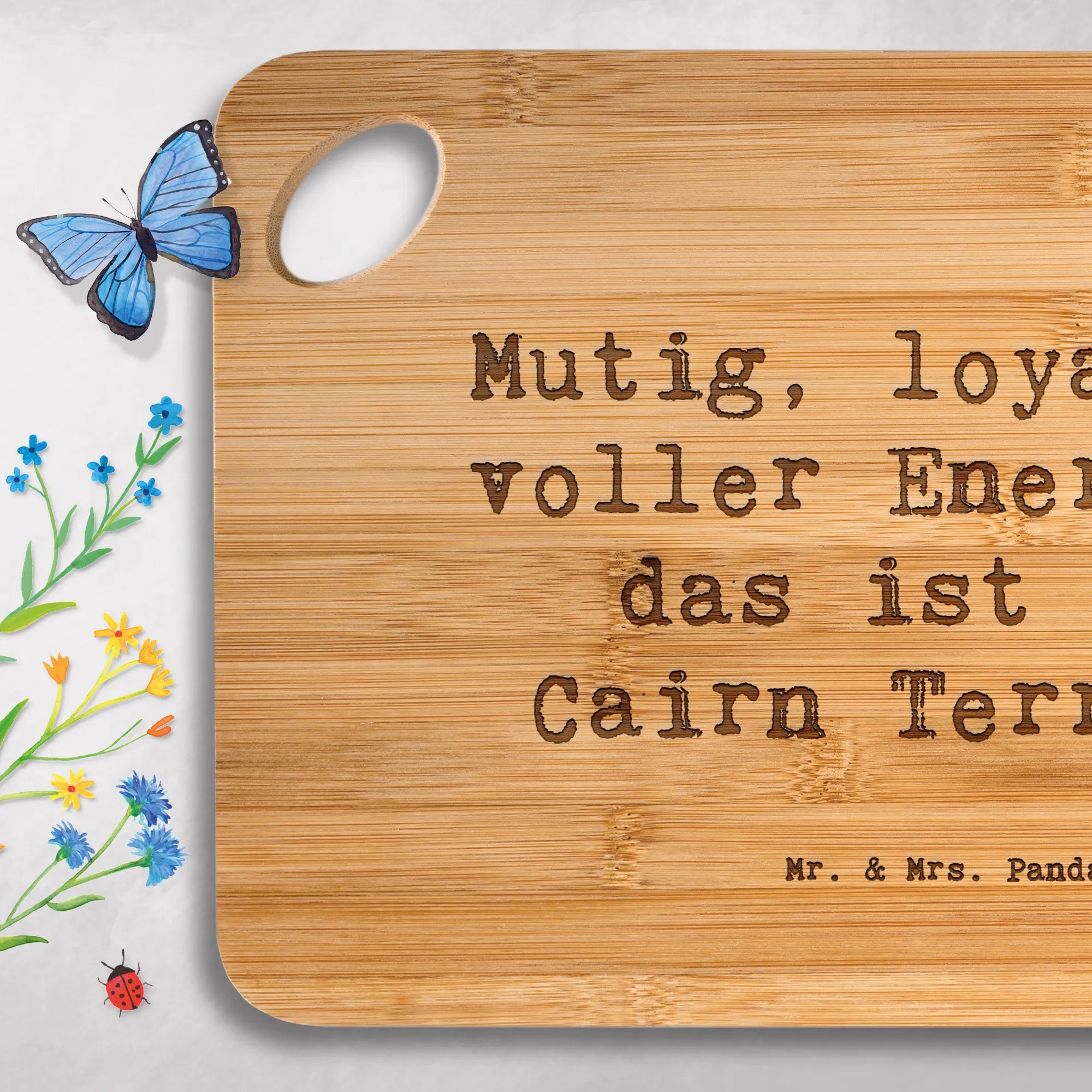 Bambus - deska do krojenia Przysłowie Mutig, loyal und voller Energie - das ist der Cairn Terrier!