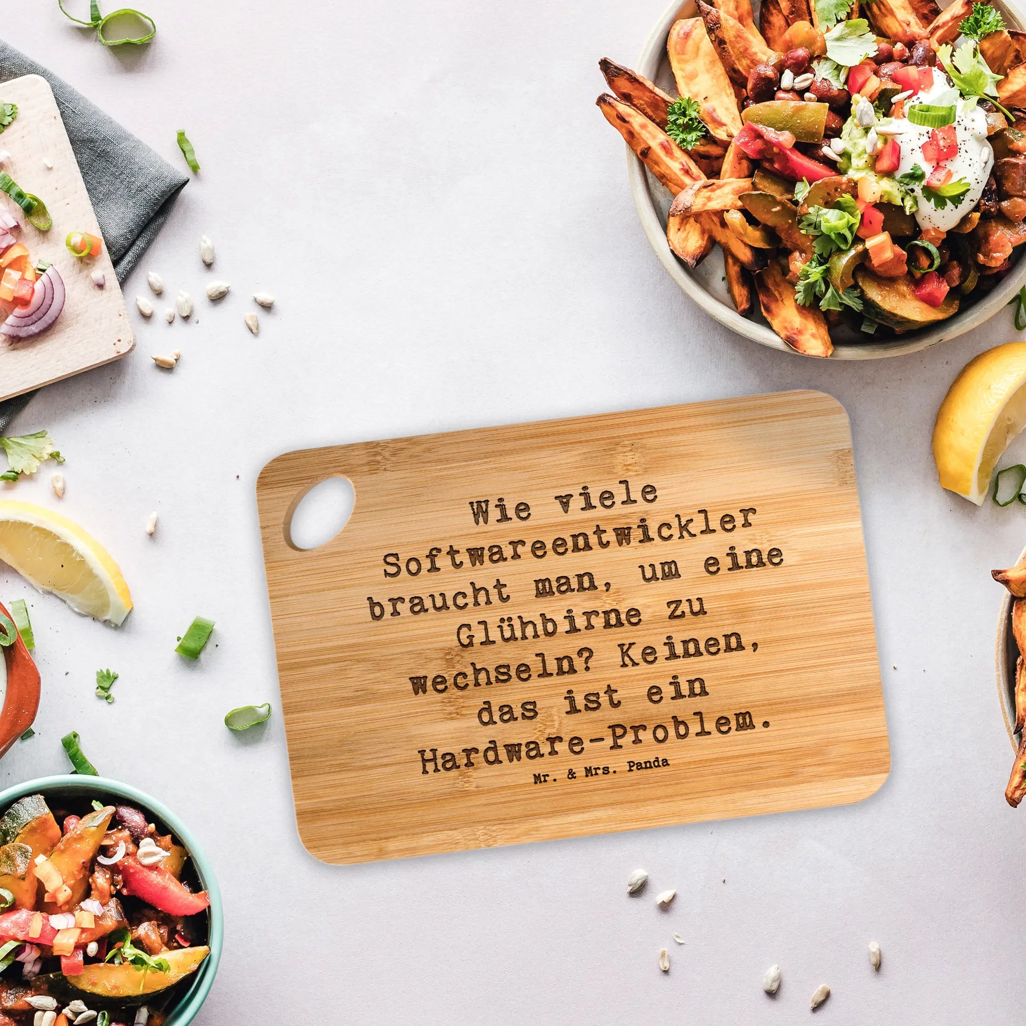 - Angielski (Bamboo Chopping Board Saying Wie Viele Softwareentwickler Braucht Man Um Eine Gluehbirne Zu Wechseln? Keinen Das Ist Ein Hardware Problem)