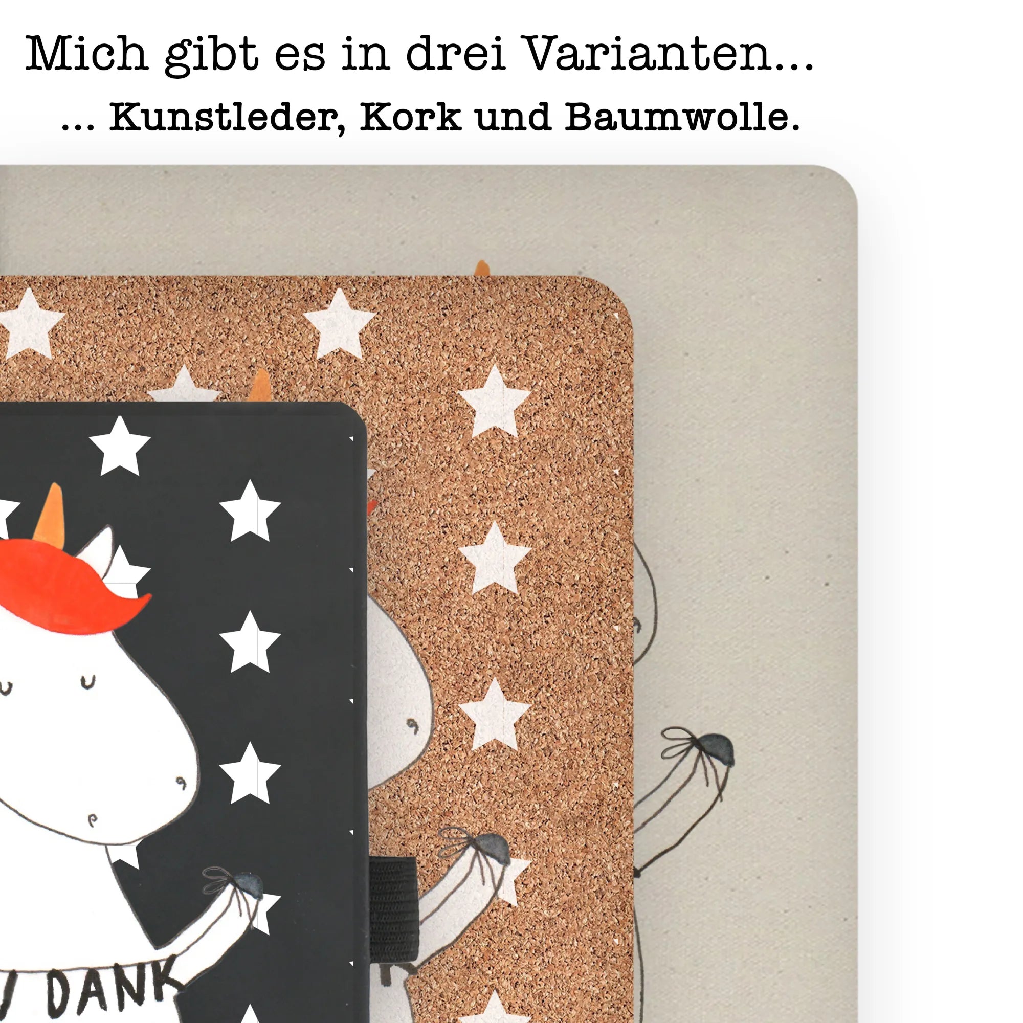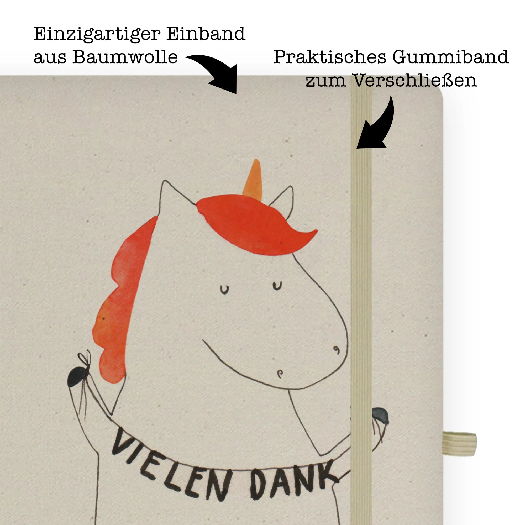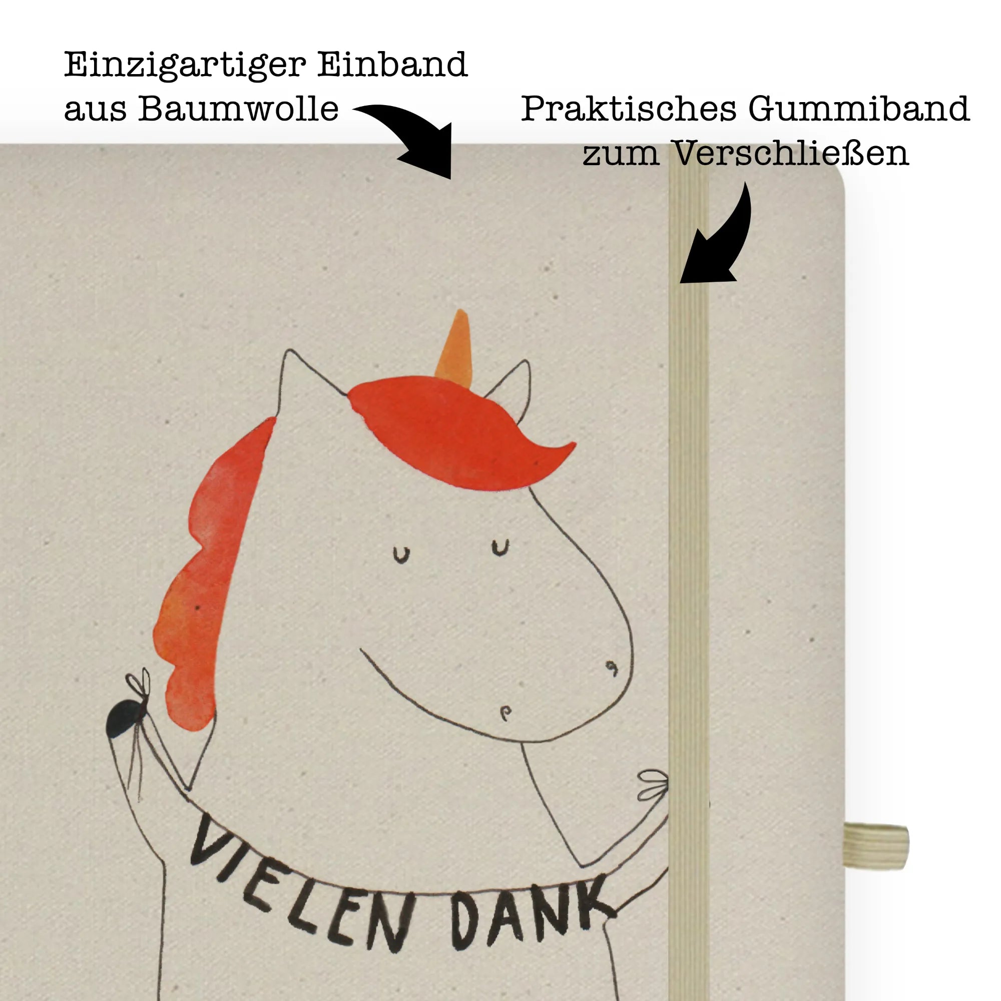 Bawełniany notatnik DIN A4 Jednorożec Dziękuję - DIN A5 Baumwoll Notizbuch - z napisem