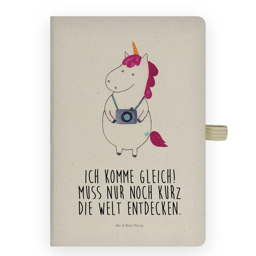 Bawełniany notatnik DIN A4 Jednorożec fotograf - DIN A4 Baumwoll Notizbuch - z napisem