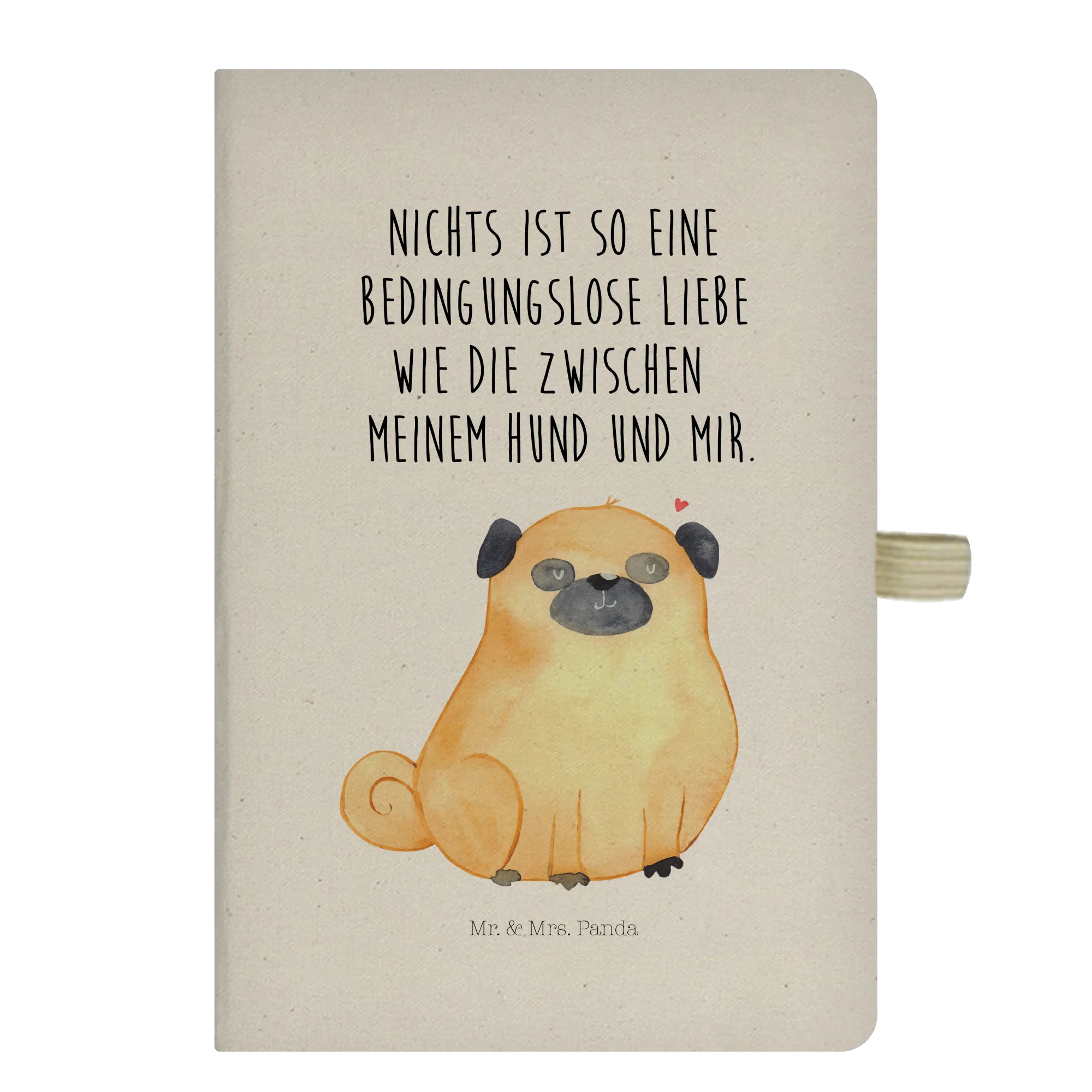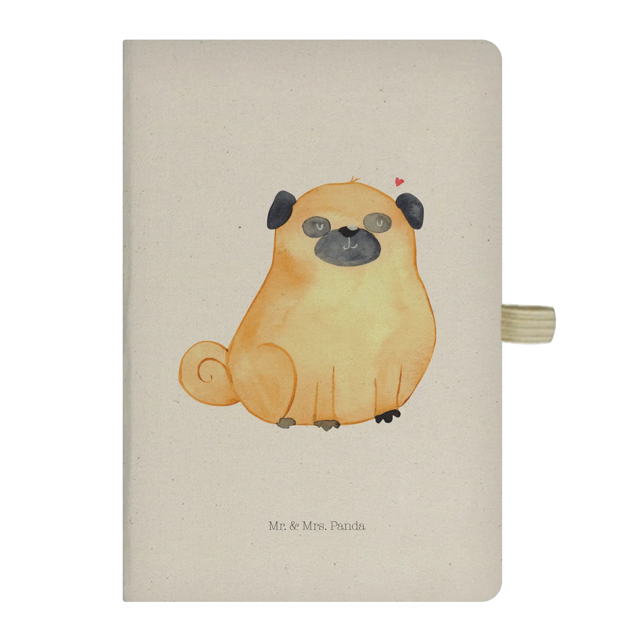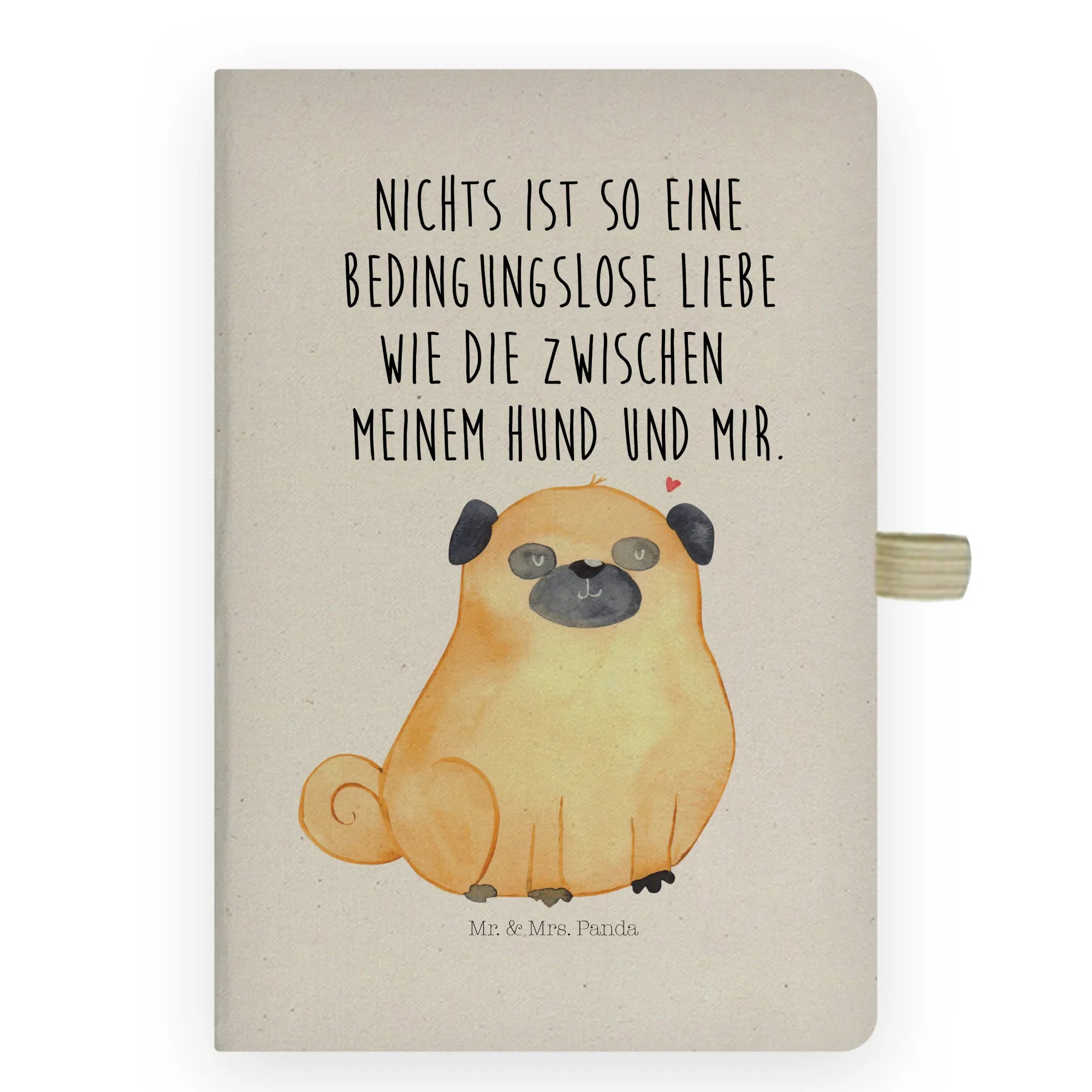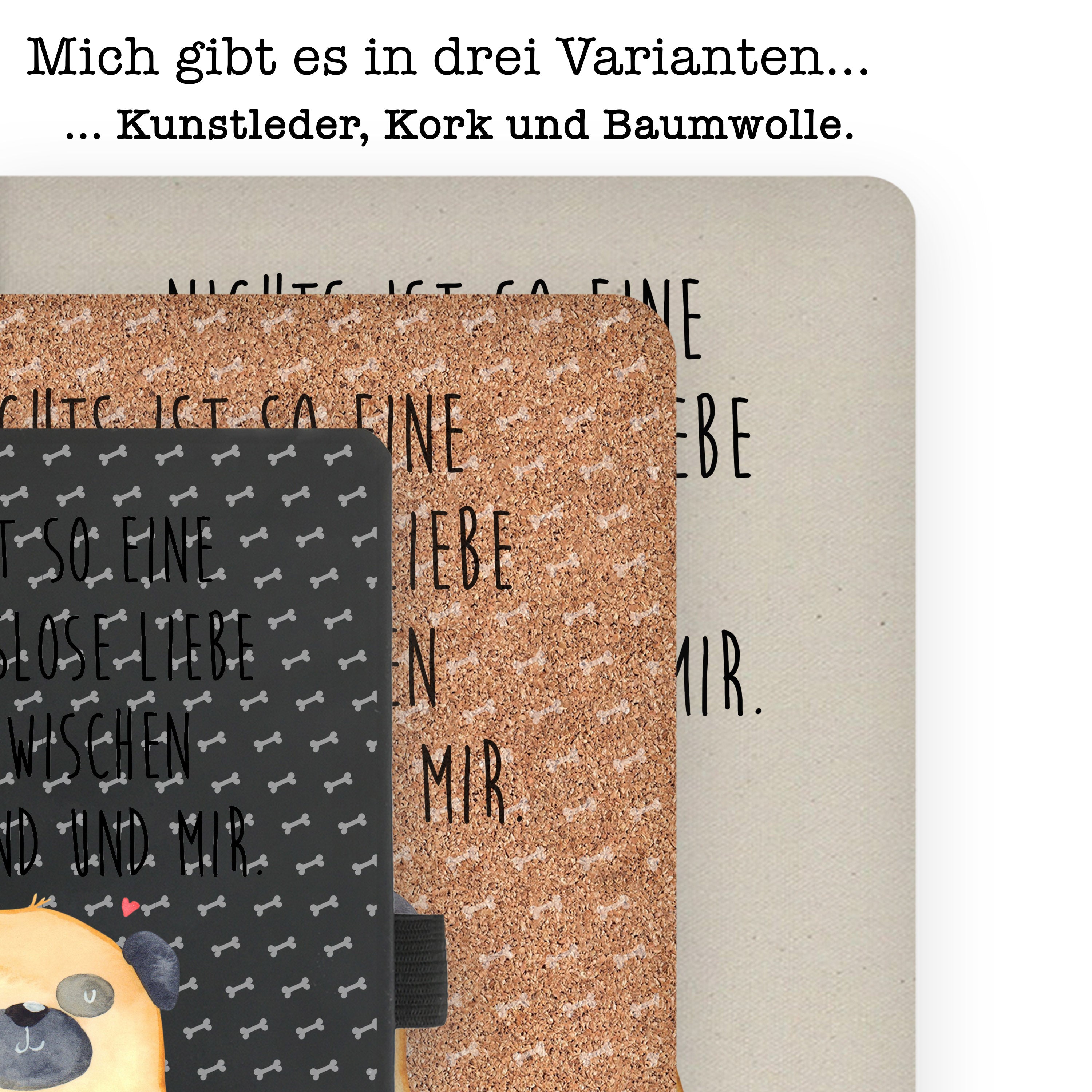 Bawełniany notatnik DIN A4 Mops - DIN A4 Baumwoll Notizbuch - z napisem