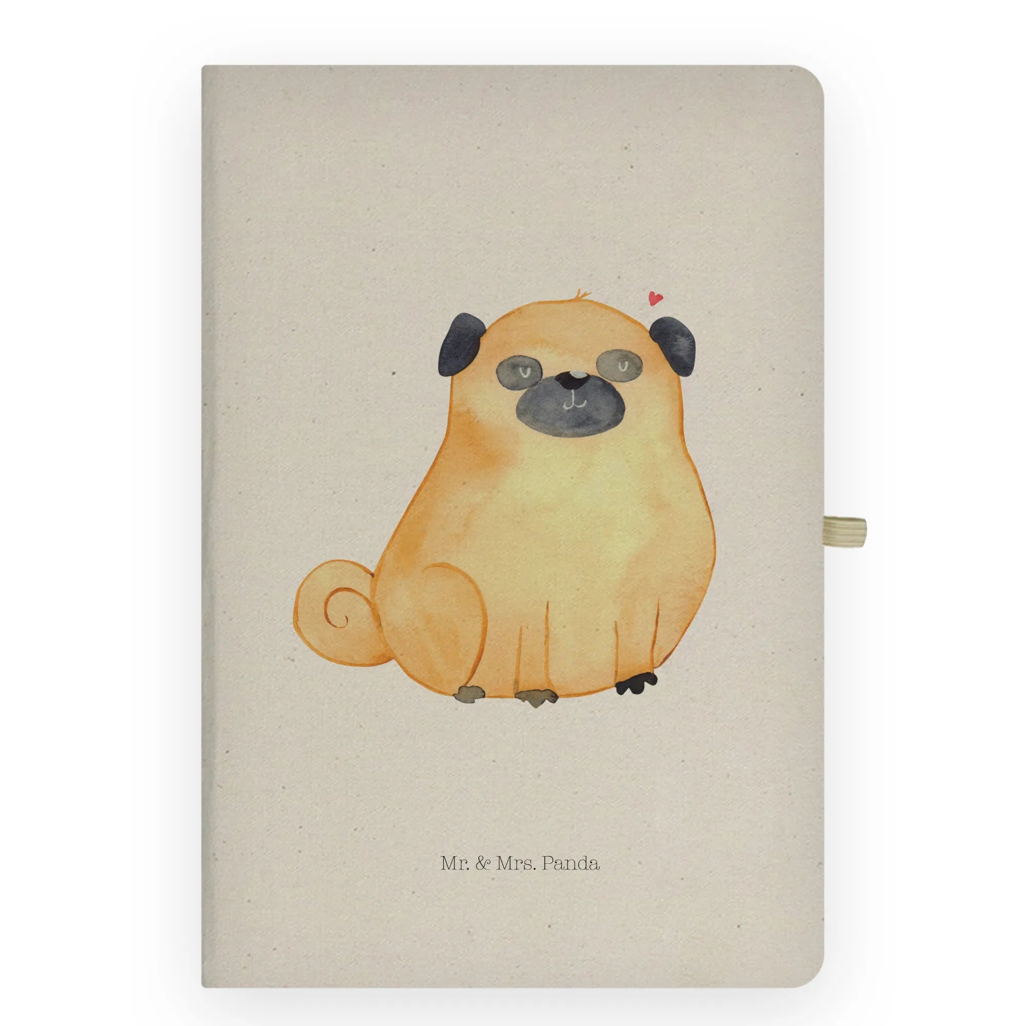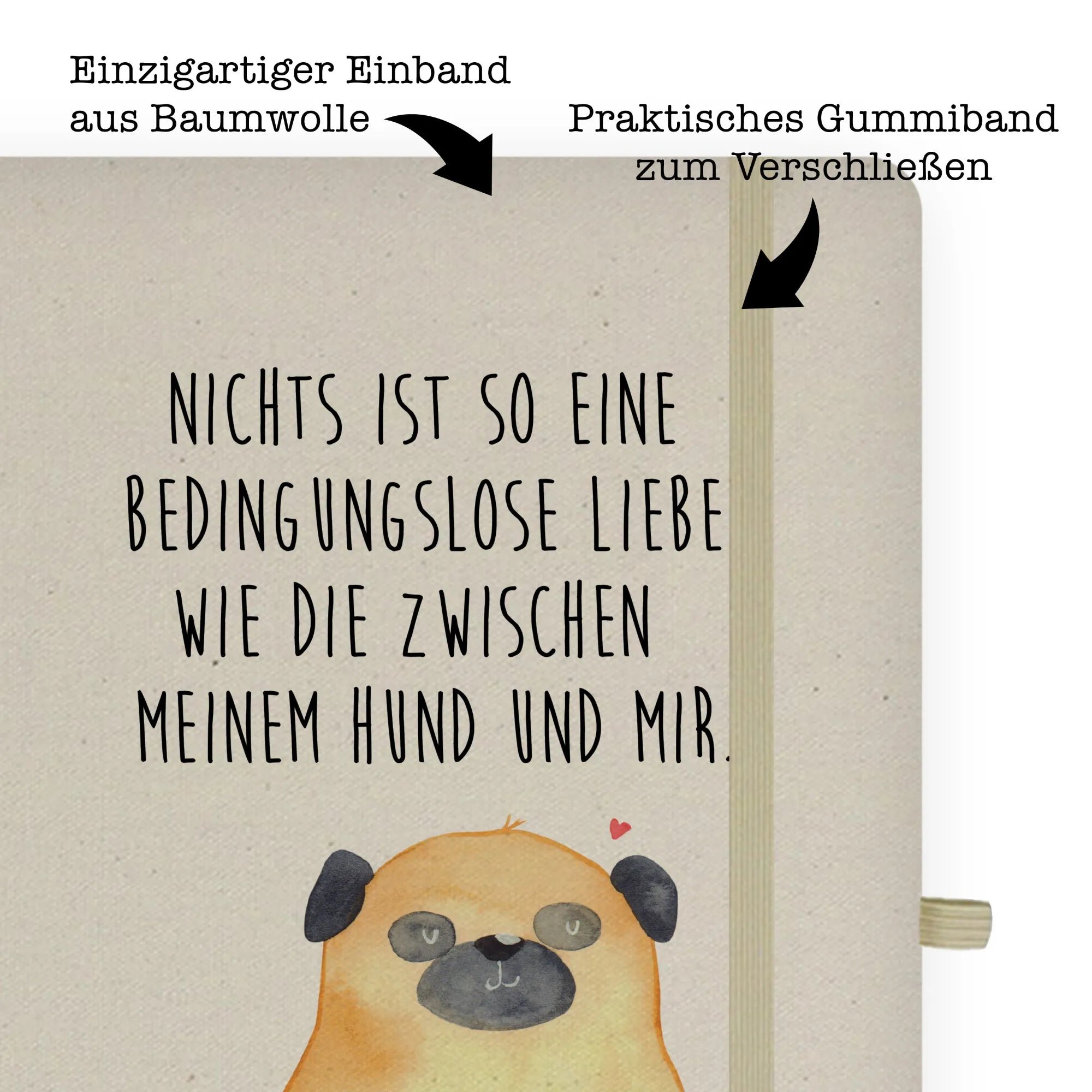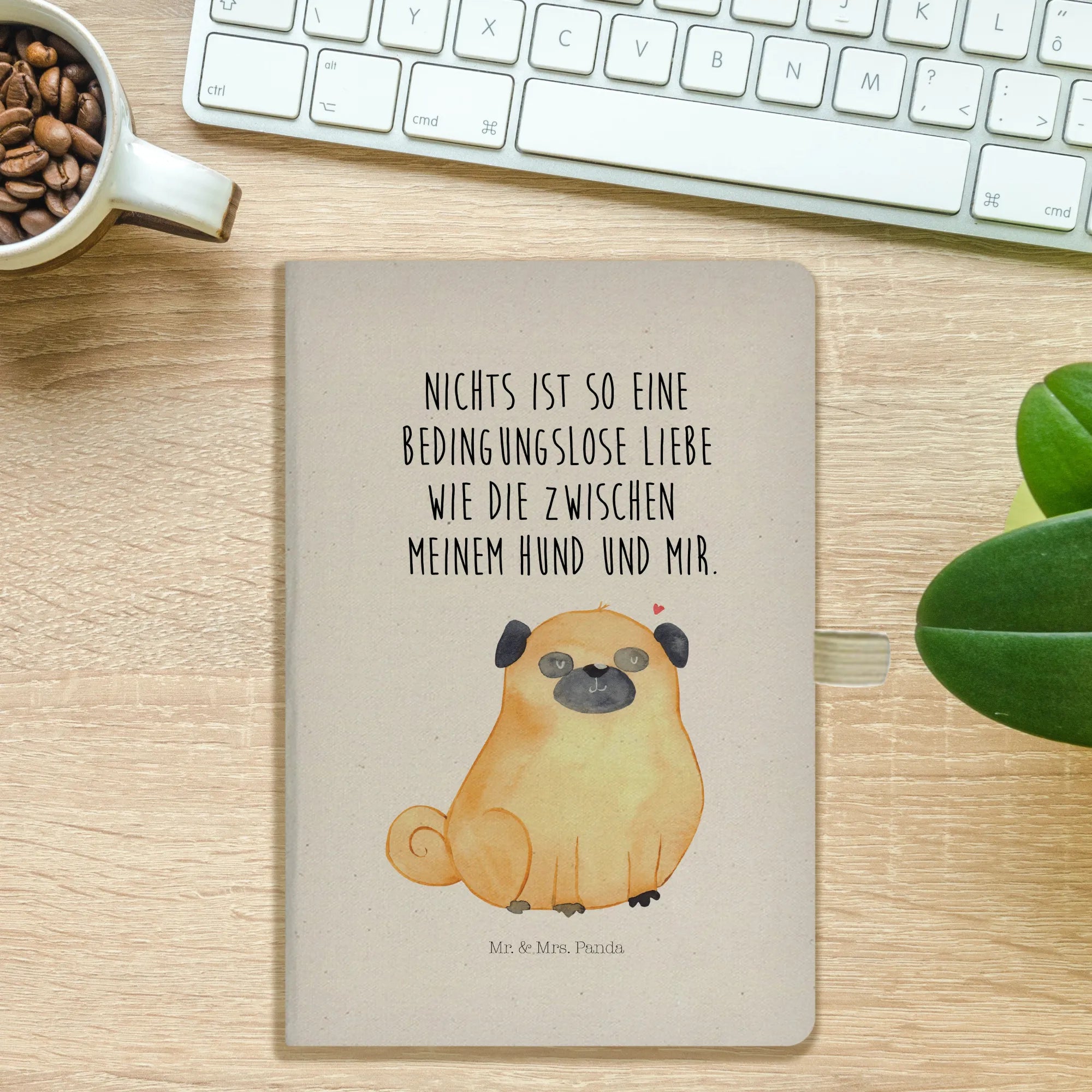 Bawełniany notatnik DIN A4 Mops - DIN A4 Baumwoll Notizbuch - z napisem