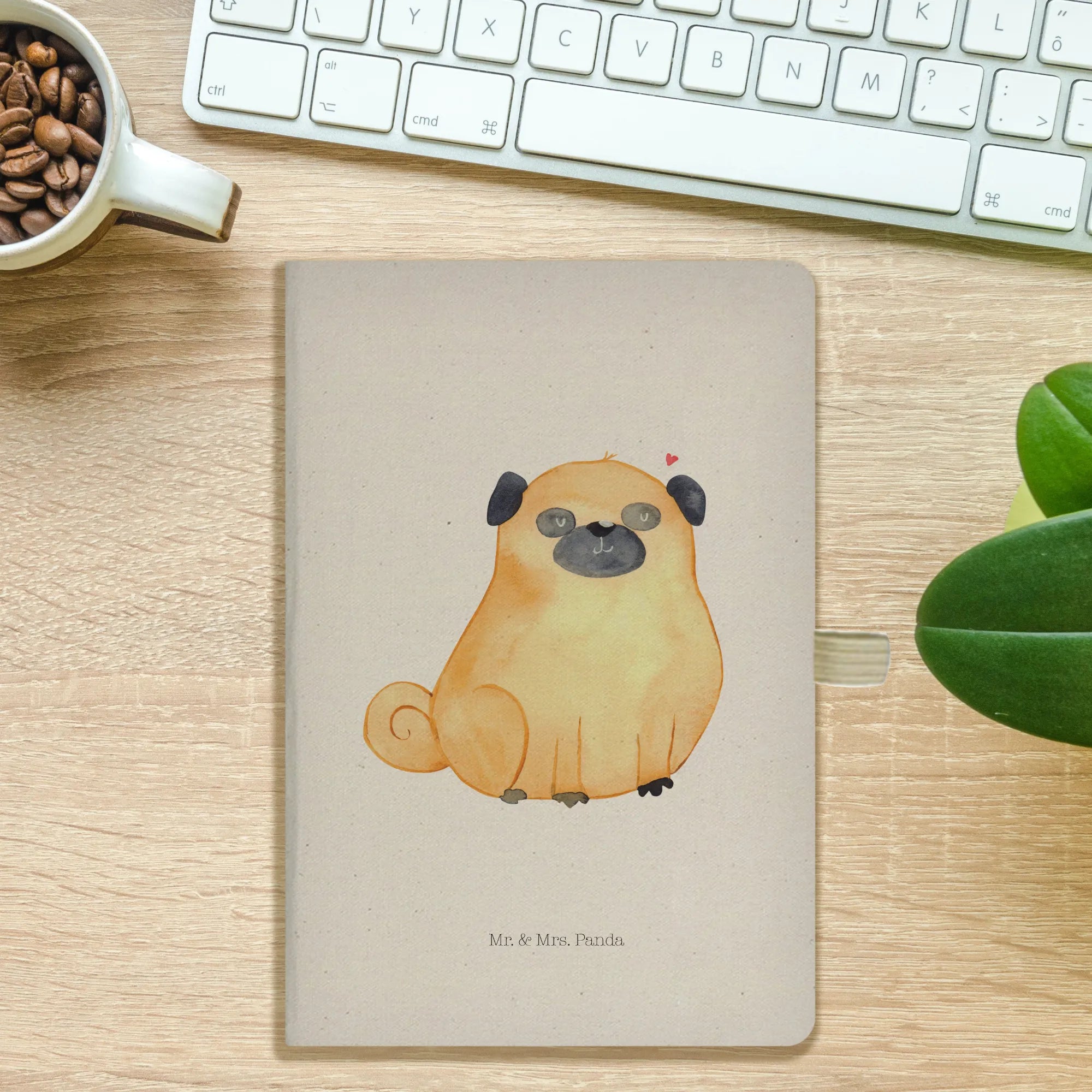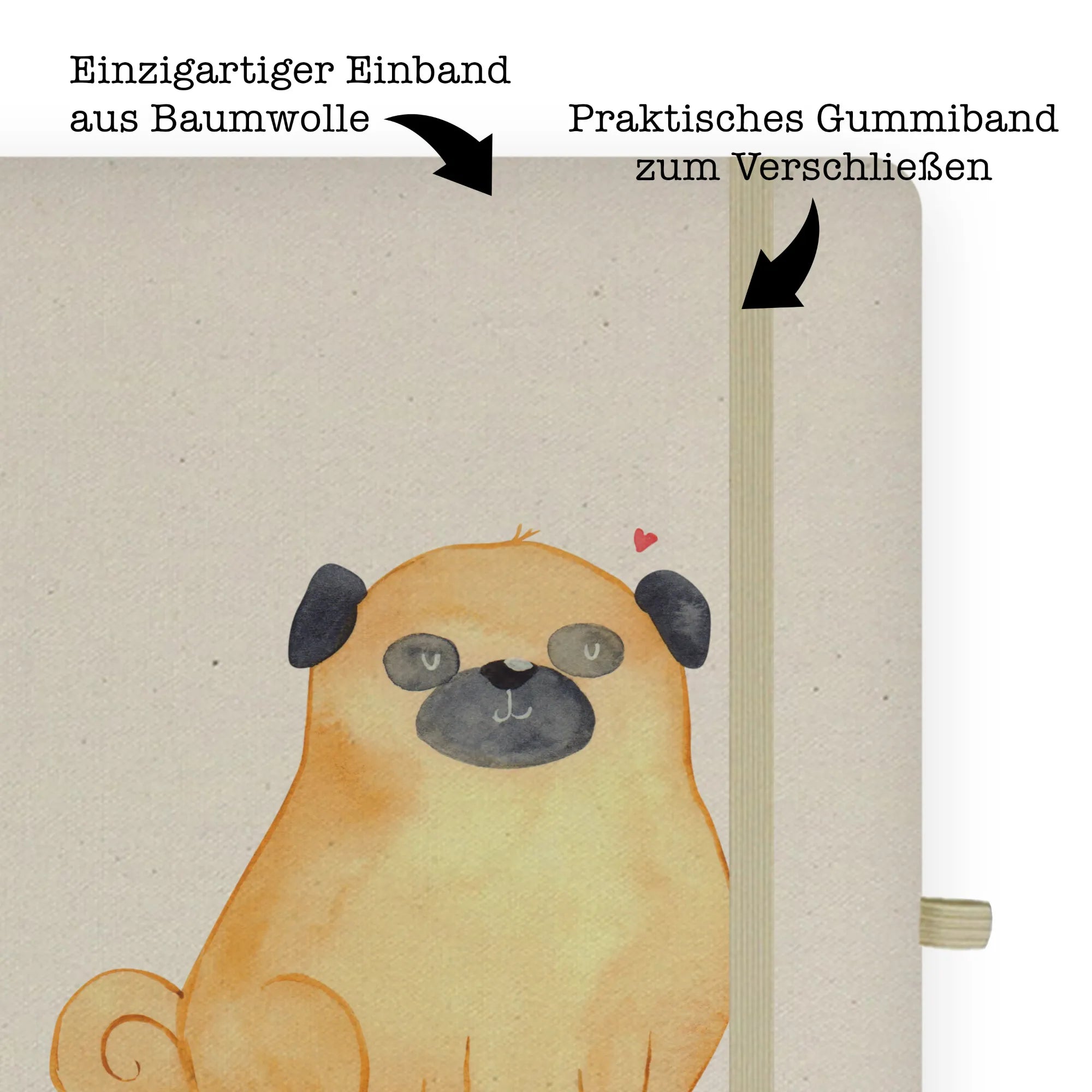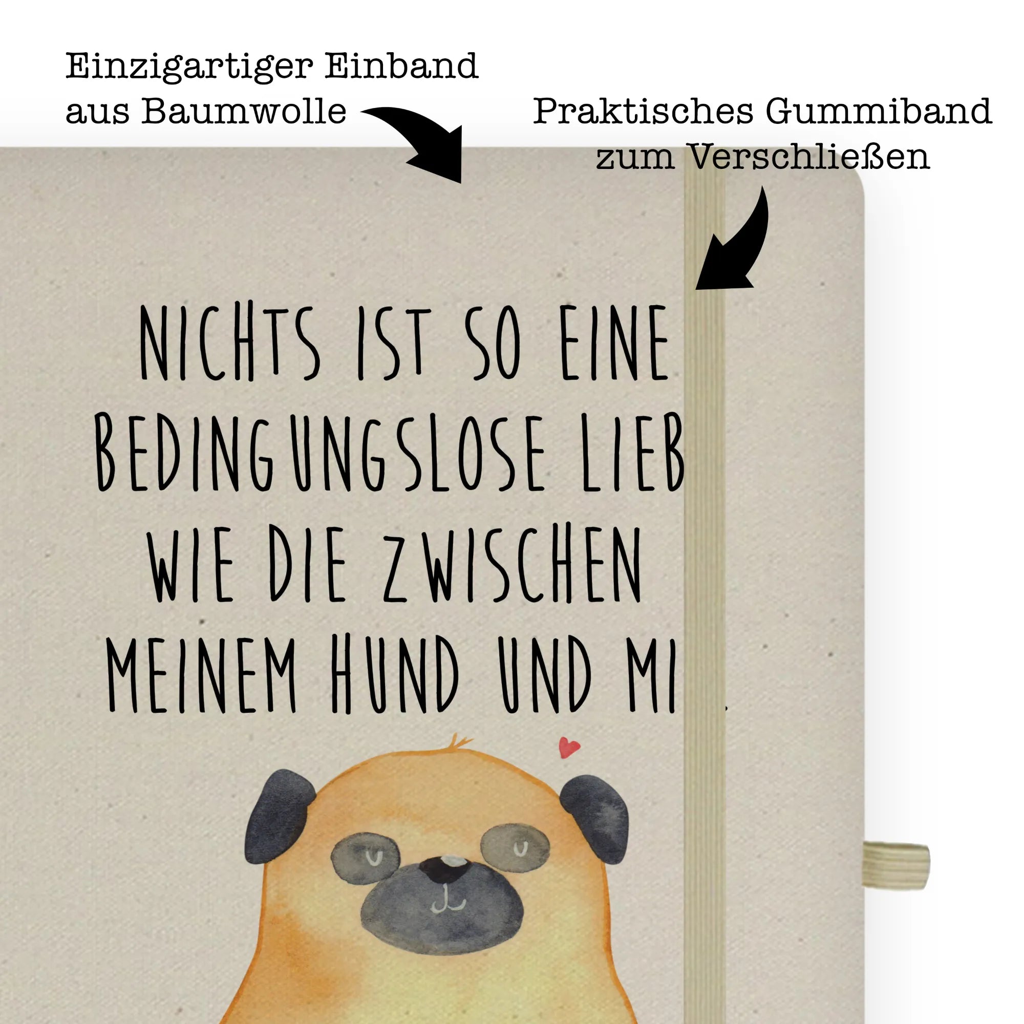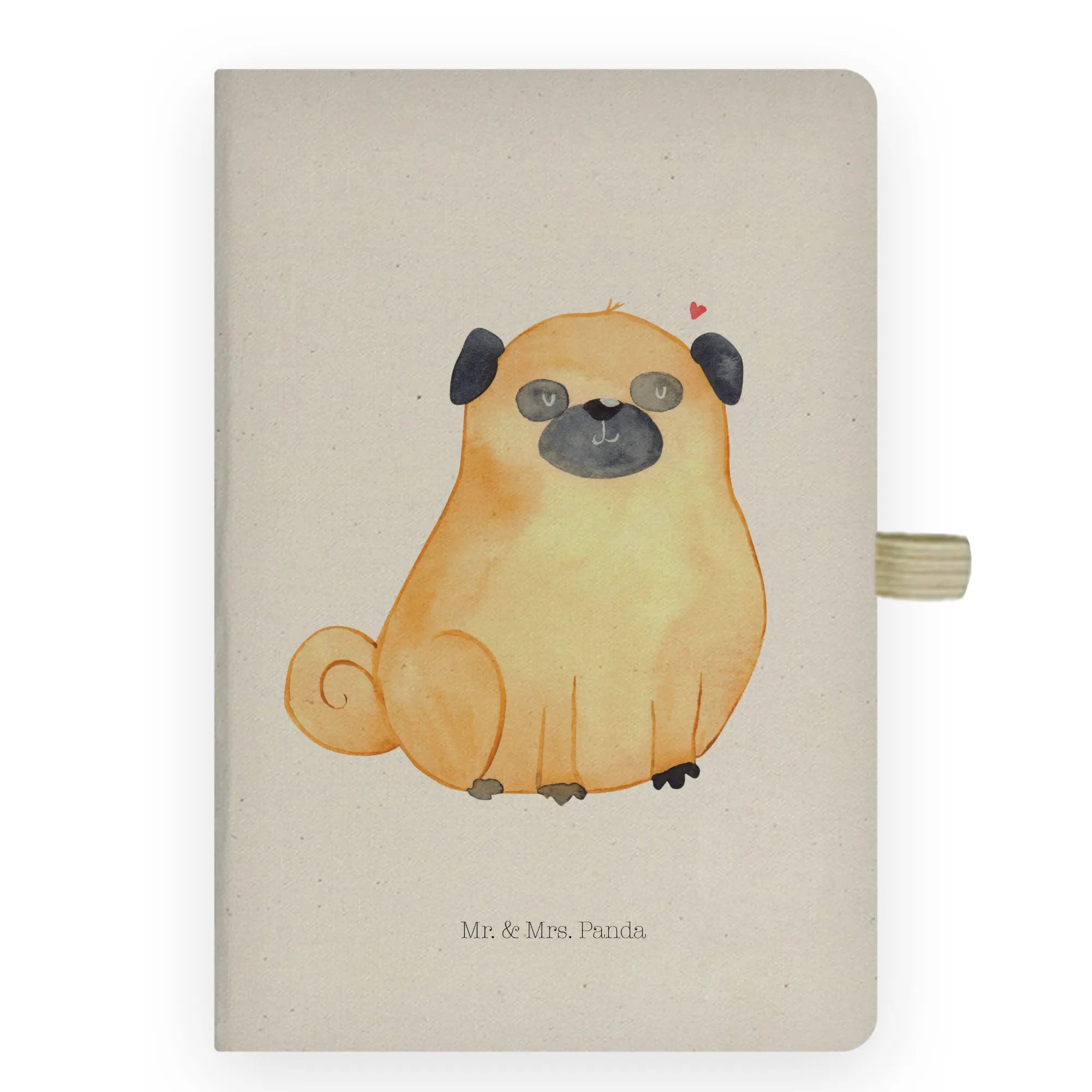 Bawełniany notatnik DIN A4 Mops - DIN A4 Baumwoll Notizbuch - z napisem