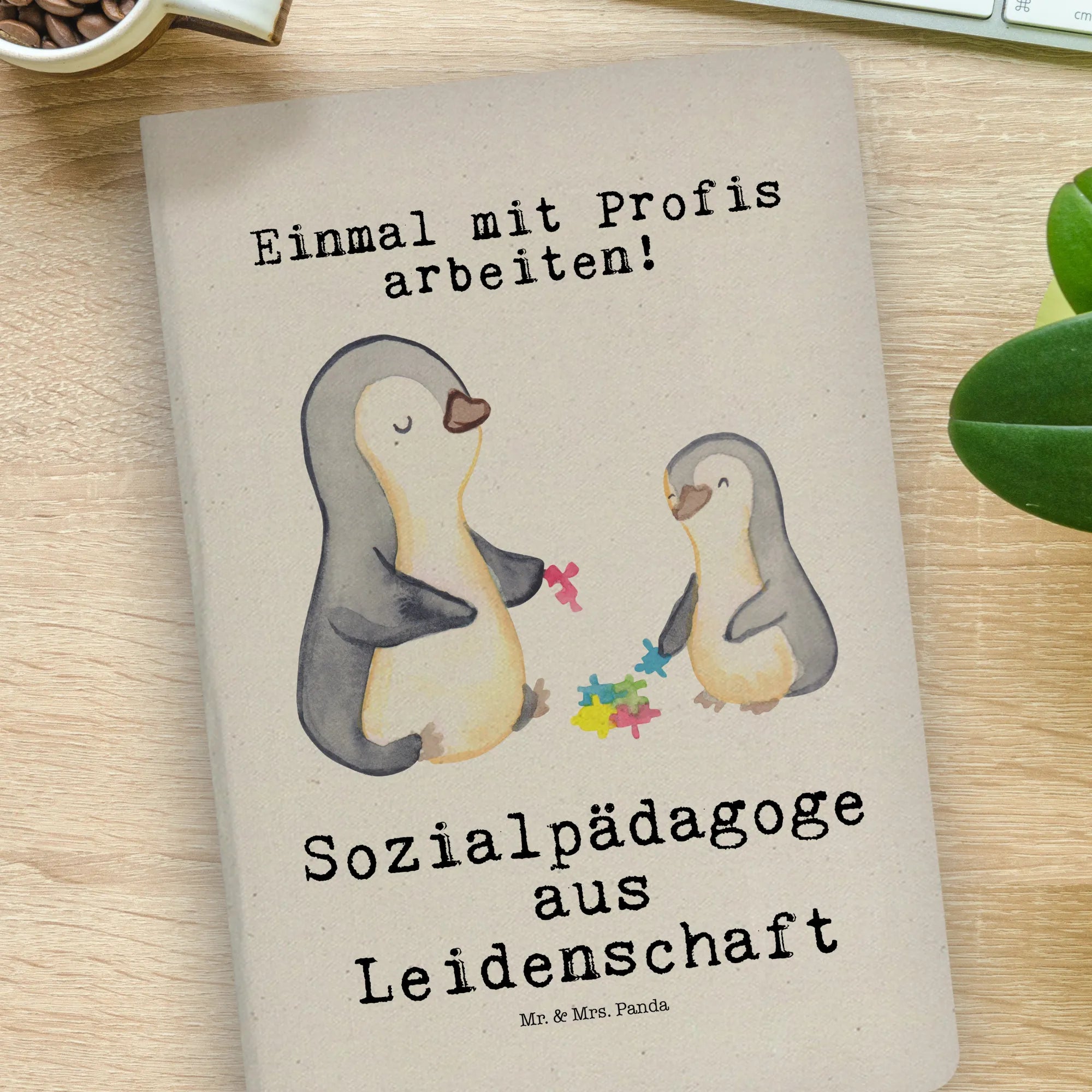 Mr. & Mrs. Panda DIN A4 Baumwoll Notizbuch „Sozialpädagoge aus Leidenschaft“ – ein liebevoll gestaltetes Notizbuch, das Wertschätzung und Alltagstauglichkeit wunderbar vereint. Das niedliche Motiv zeigt einen kleinen Pinguin, der spielerisch mit einem anderen Pinguin arbeitet – eine herzliche Erinnerung an Empathie, Teamgeist und die Freude am Begleiten. 💙
