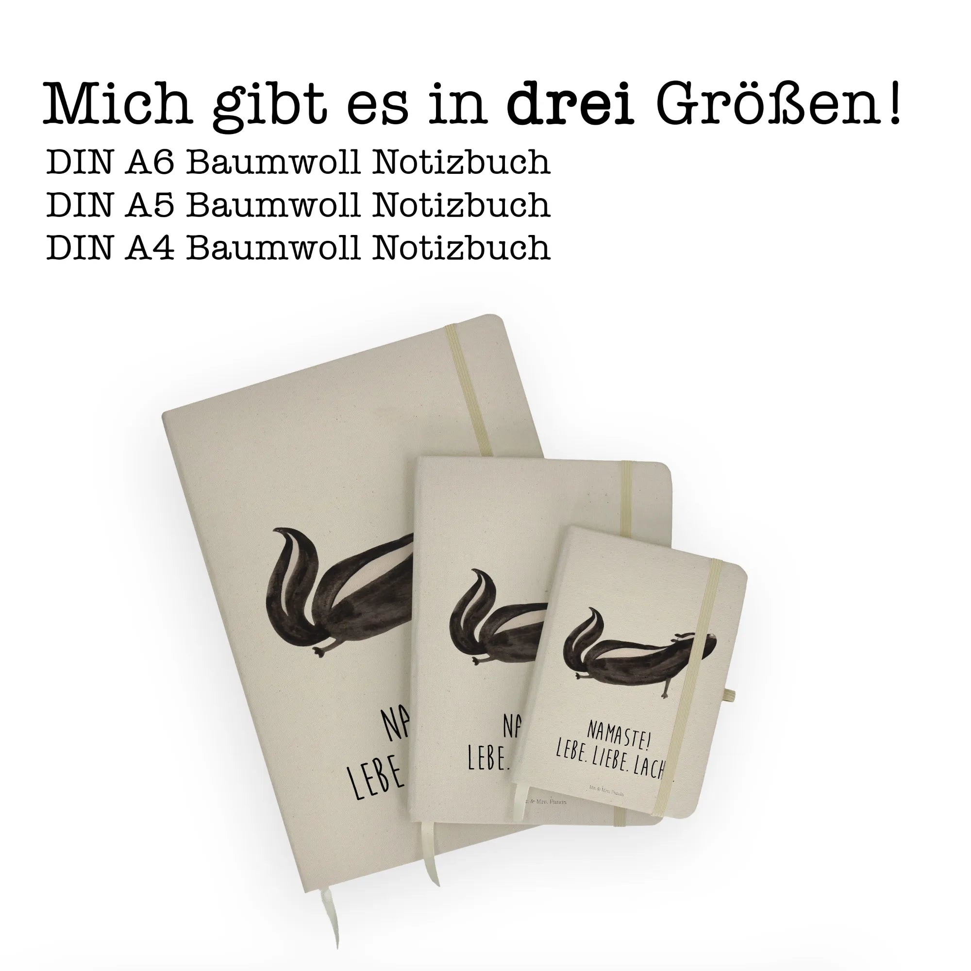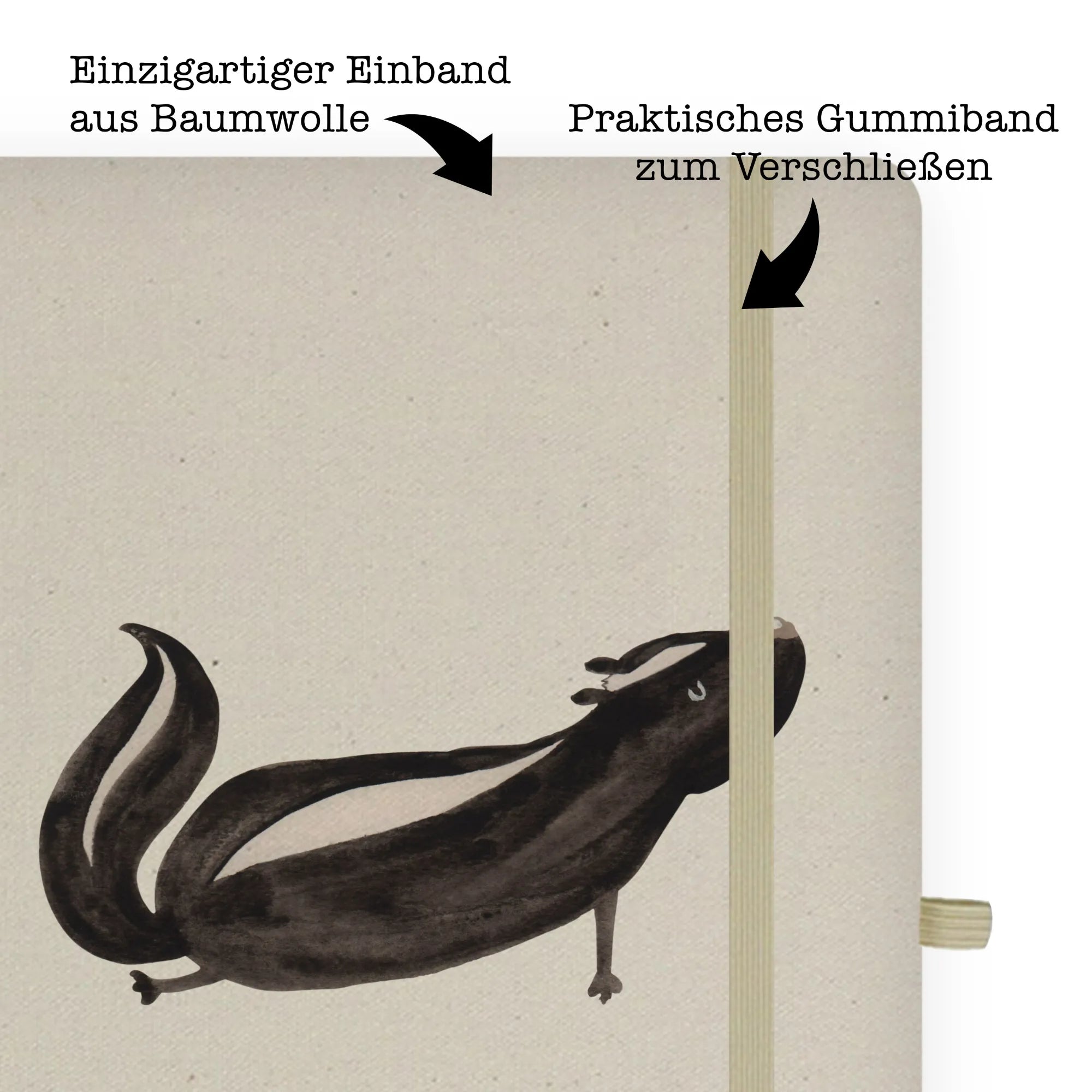Bawełniany notatnik DIN A4 skunks Joga - DIN A4 Baumwoll Notizbuch - z napisem