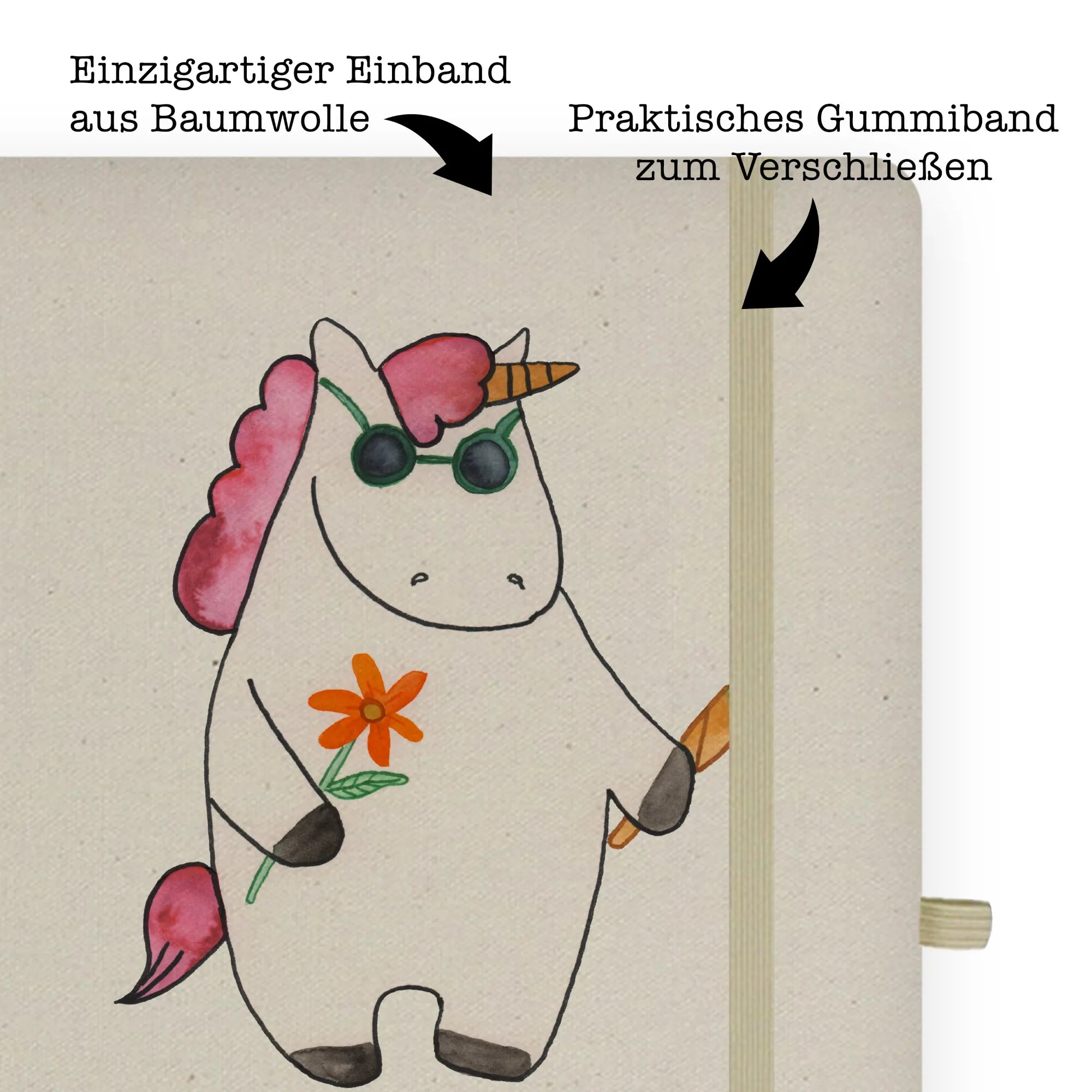 Bawełniany notes DIN A5 Jednorożec Woodstock - DIN A4 Baumwoll Notizbuch - z napisem