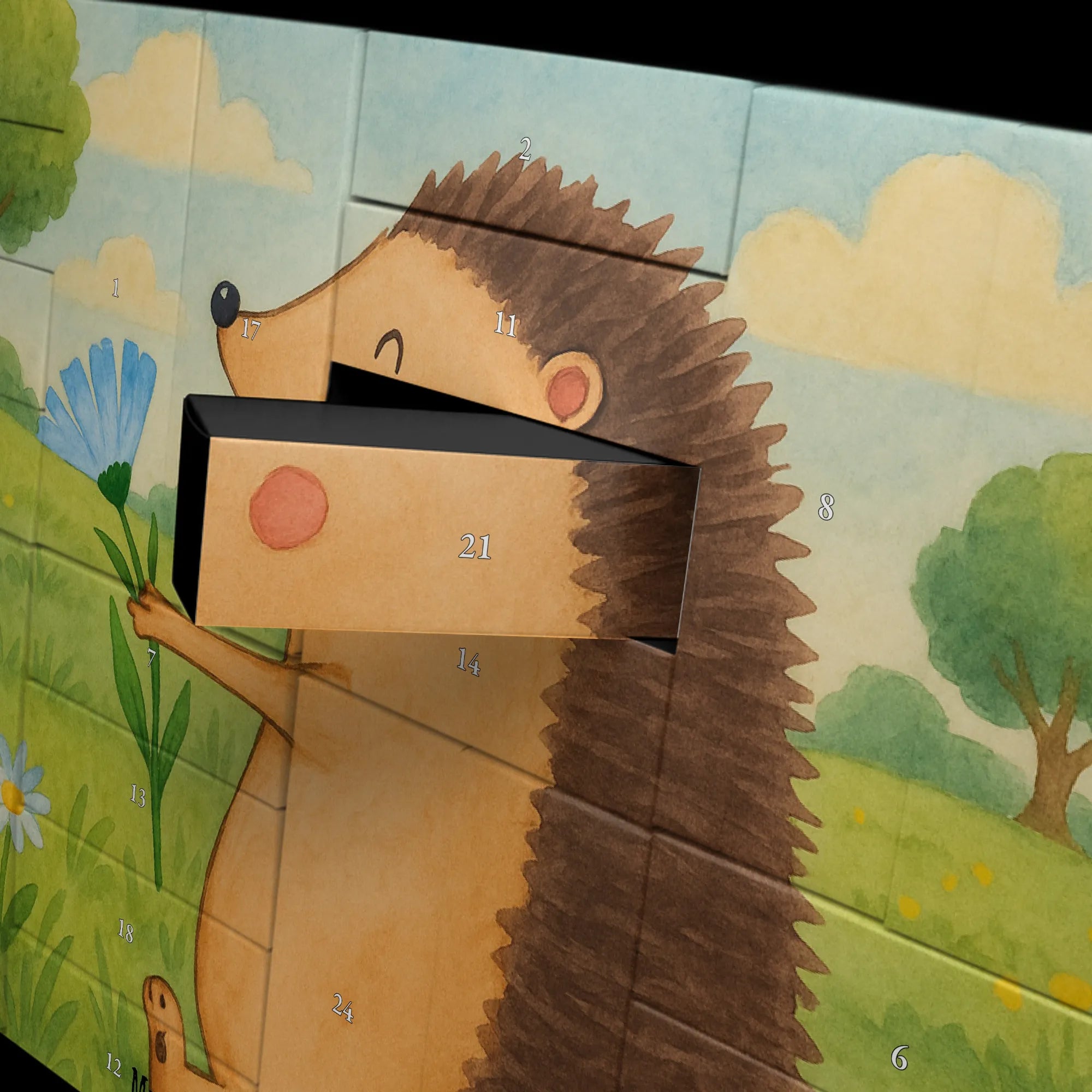 Wundervoller Befüllbarer Adventskalender „Igel mit Blume“ – Gute Besserung